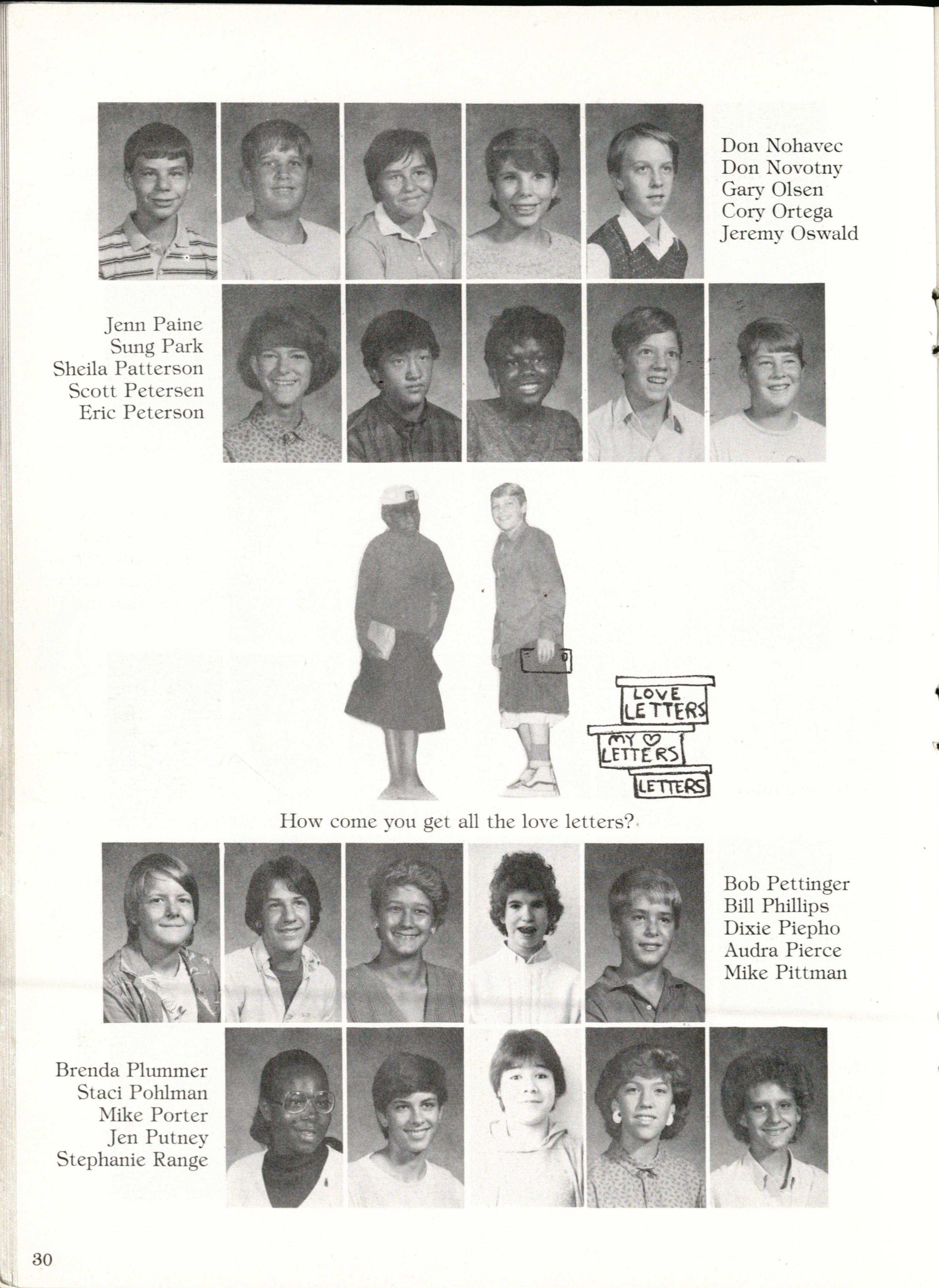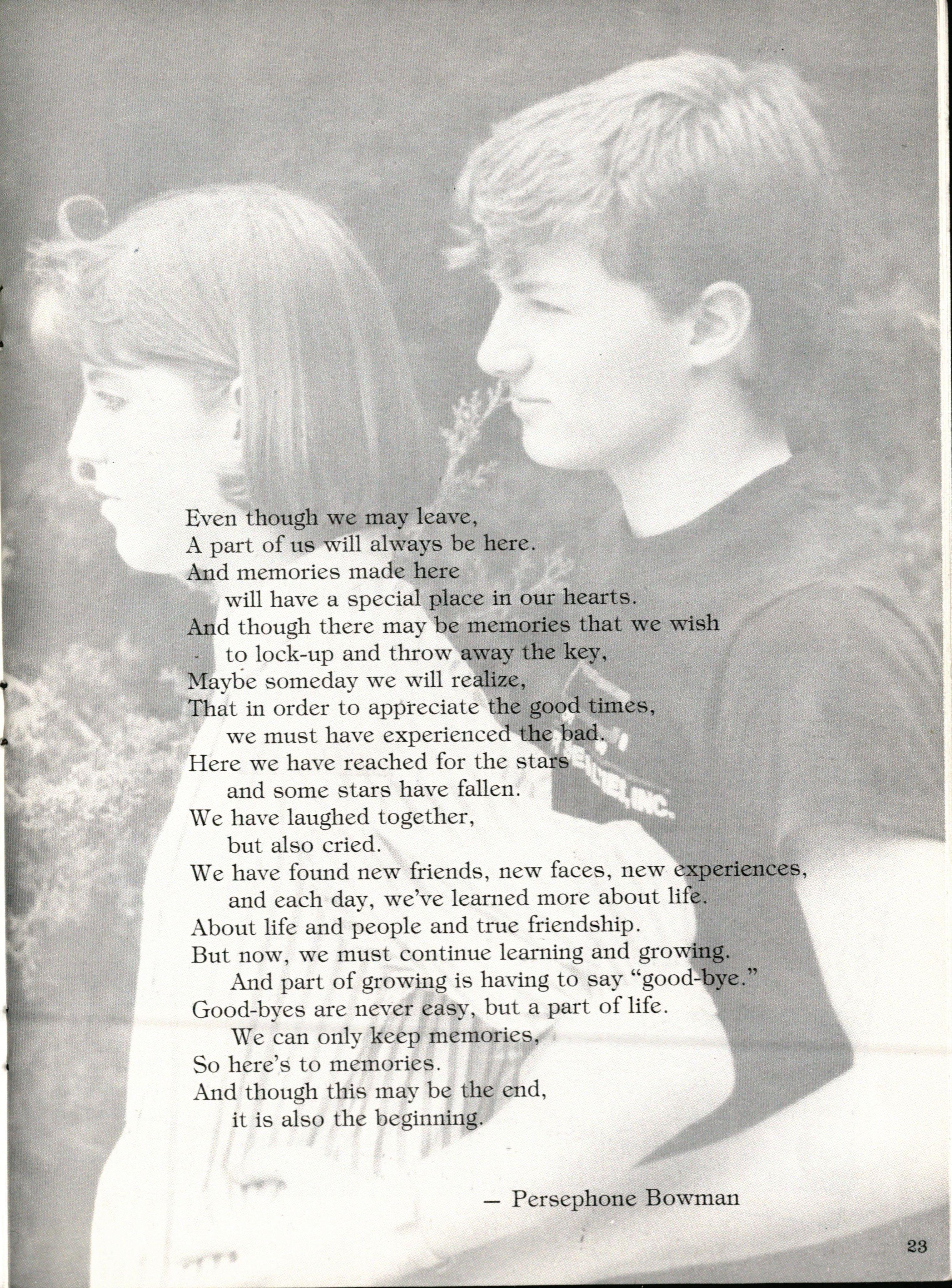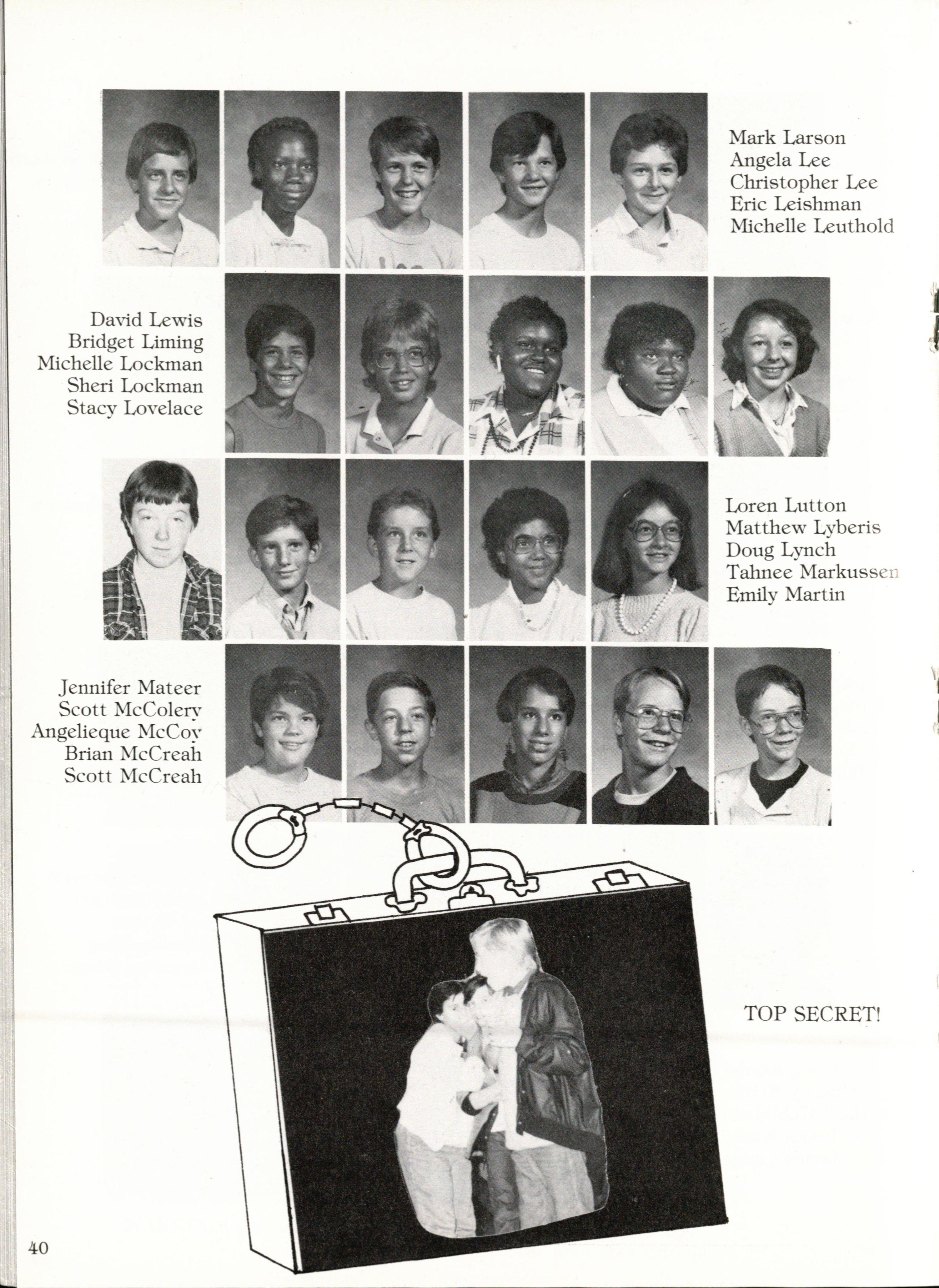 Lefler defmitely experienced an excellent ear. The begin- ning of the year started out a little hectic a u ual, getting all of the new tu dent u ed to their surroundings. Fortunatel thing ettled do n a bit. tudent and facult began to feel the re u1 ts of the lon~ r chool da . School pirit ran high second seme ter a the tudent bod worked together elling magazine in order to earn enough money for a ne fitne trail. However, January 28 marked a da of traged no on1 for Lefler but the whol country. The pac huttle Challenger exploded 72 econd after liftoff. In addition to the ix a tronaut on board, there wa al o a chool teacher from Connecticut. Lefler recognized thi event by rai ing the flag half mast in their memory. As chool pirit dropped toward the end of the ear, tudent Council picked it up during pirit Week. The whole school was involved with Silver creen Day, a -Talent Show, and Field Da . All in all thi a a Red Letter Year.