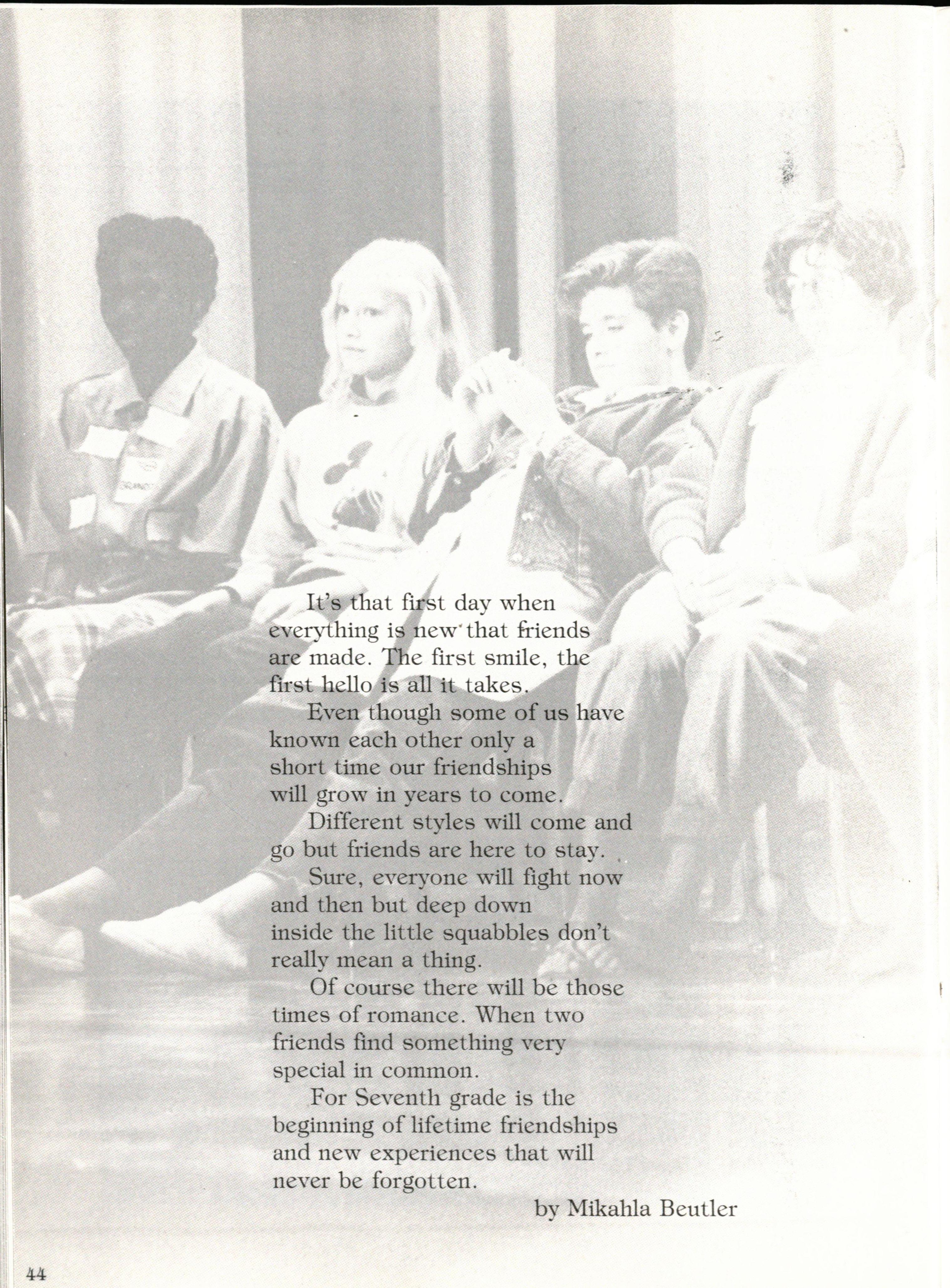 For Seventh grade is the beginning of lifetime friend hips and new experiences that will never be forgotten.