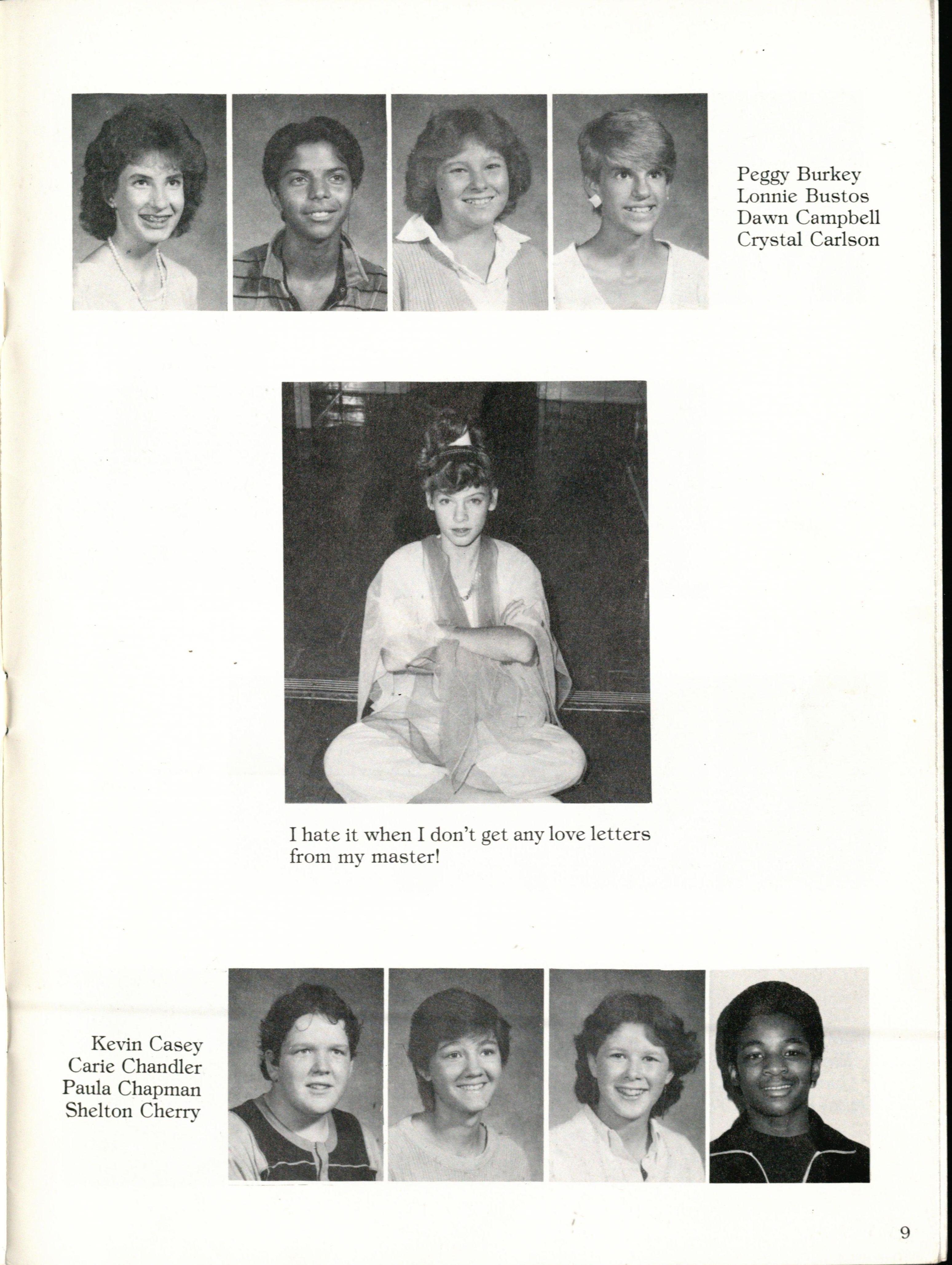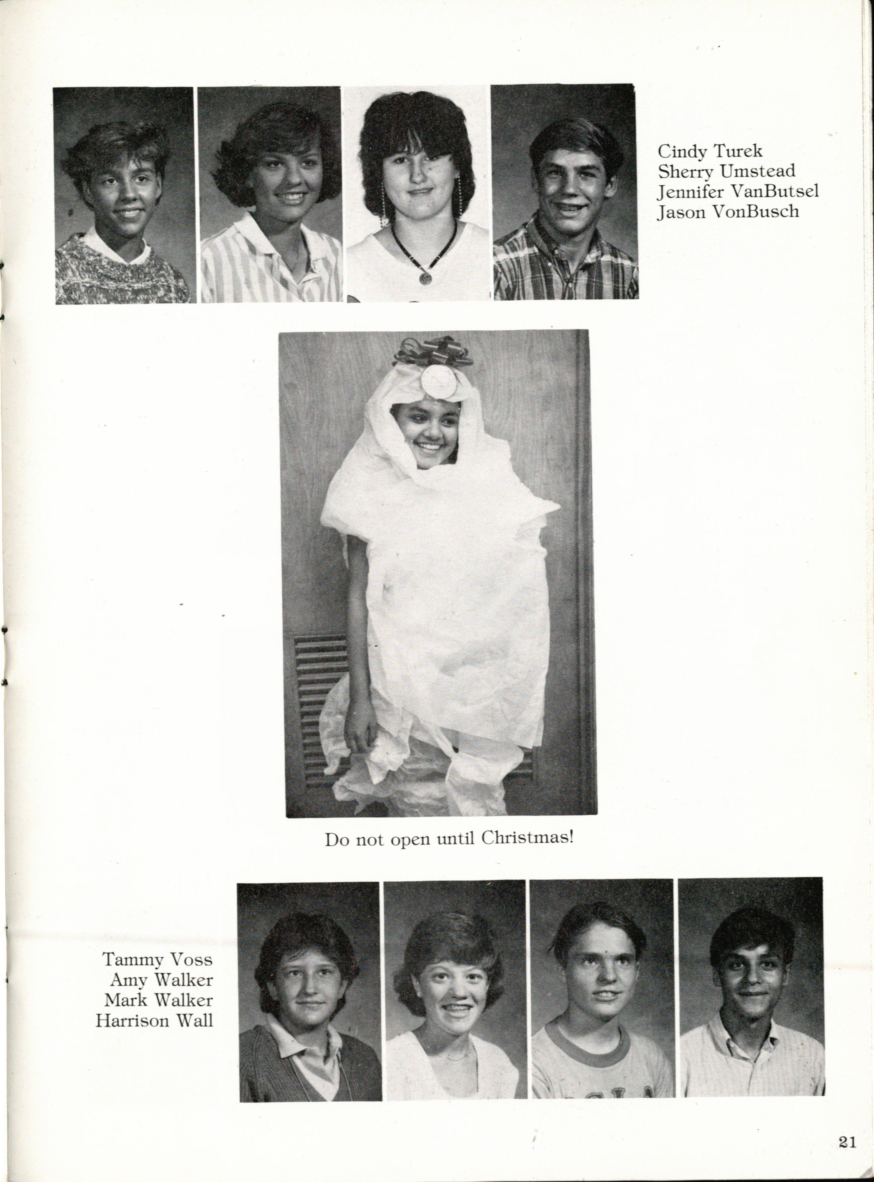 Caroling , giving flowers, and delivering holiday treats are just a few thing that Student Council did for the community this year. In September, Student Council cosponsored the seventh grade party. For Thanksgiving, S tude nt Council held a studentteacher volleyball game and the proceeds went to the Malone Center. During December, holiday '" treats were given to the Lefler staff and T-shirts were purchased for the Special Olympi cs contestants. Also Student Council organized a pajama day and a "Jama Jam" in January. With spring approaching, Student Council had a good time delivering leadership to the other students and was considered a 10 on a scale of 1 to 10 in 1986.