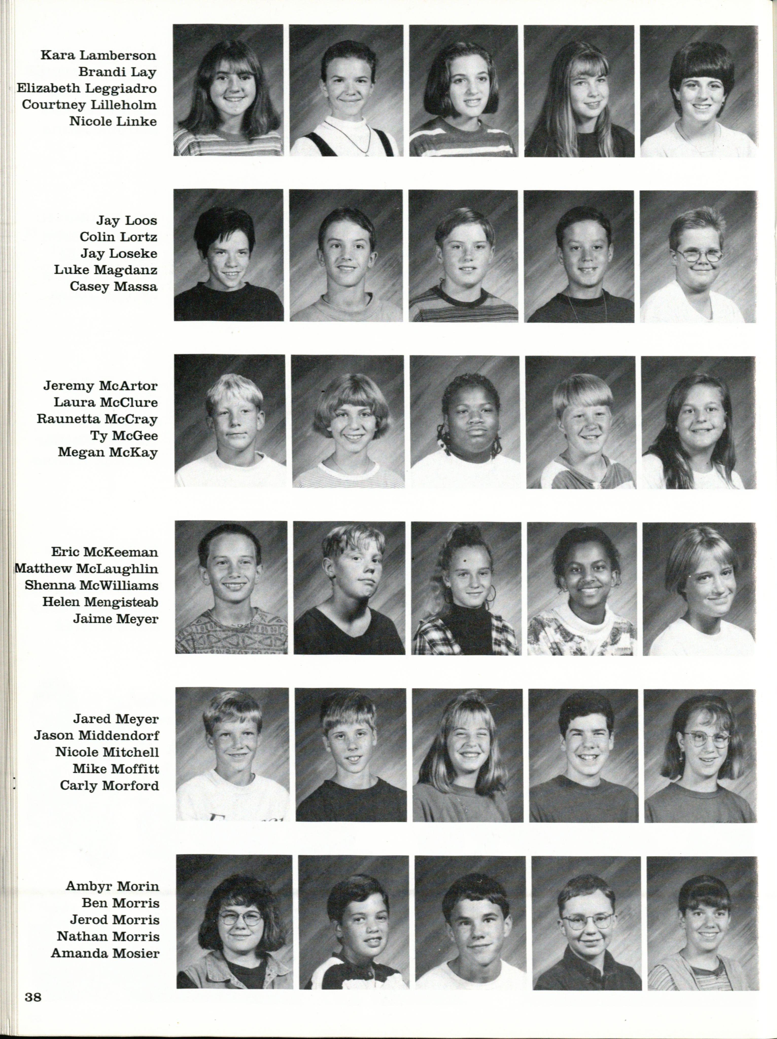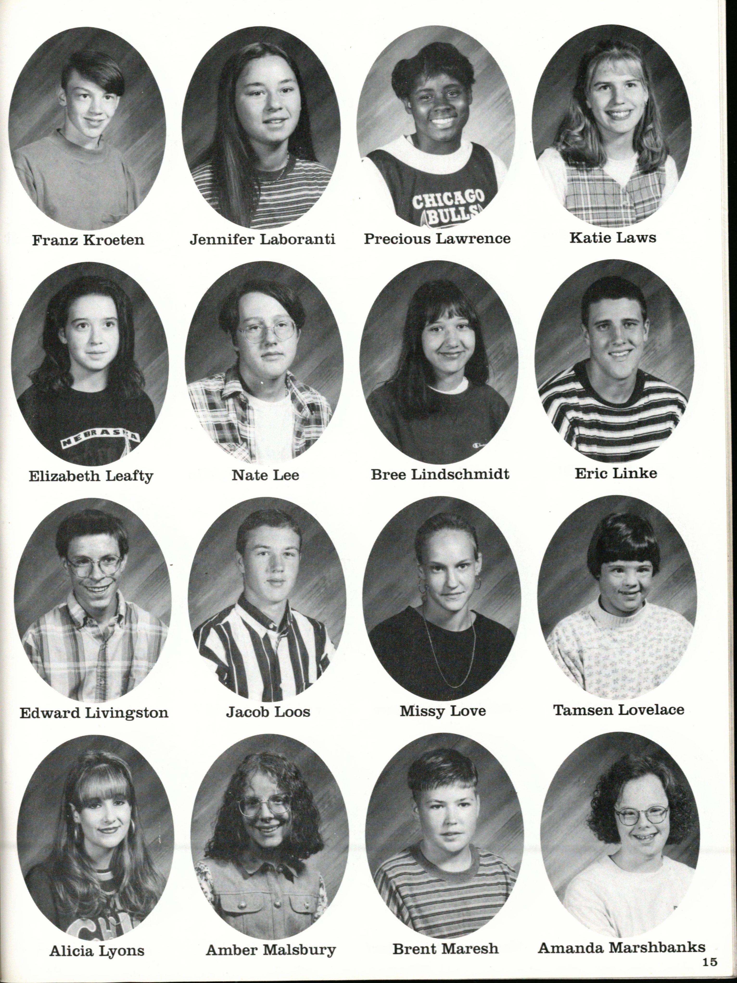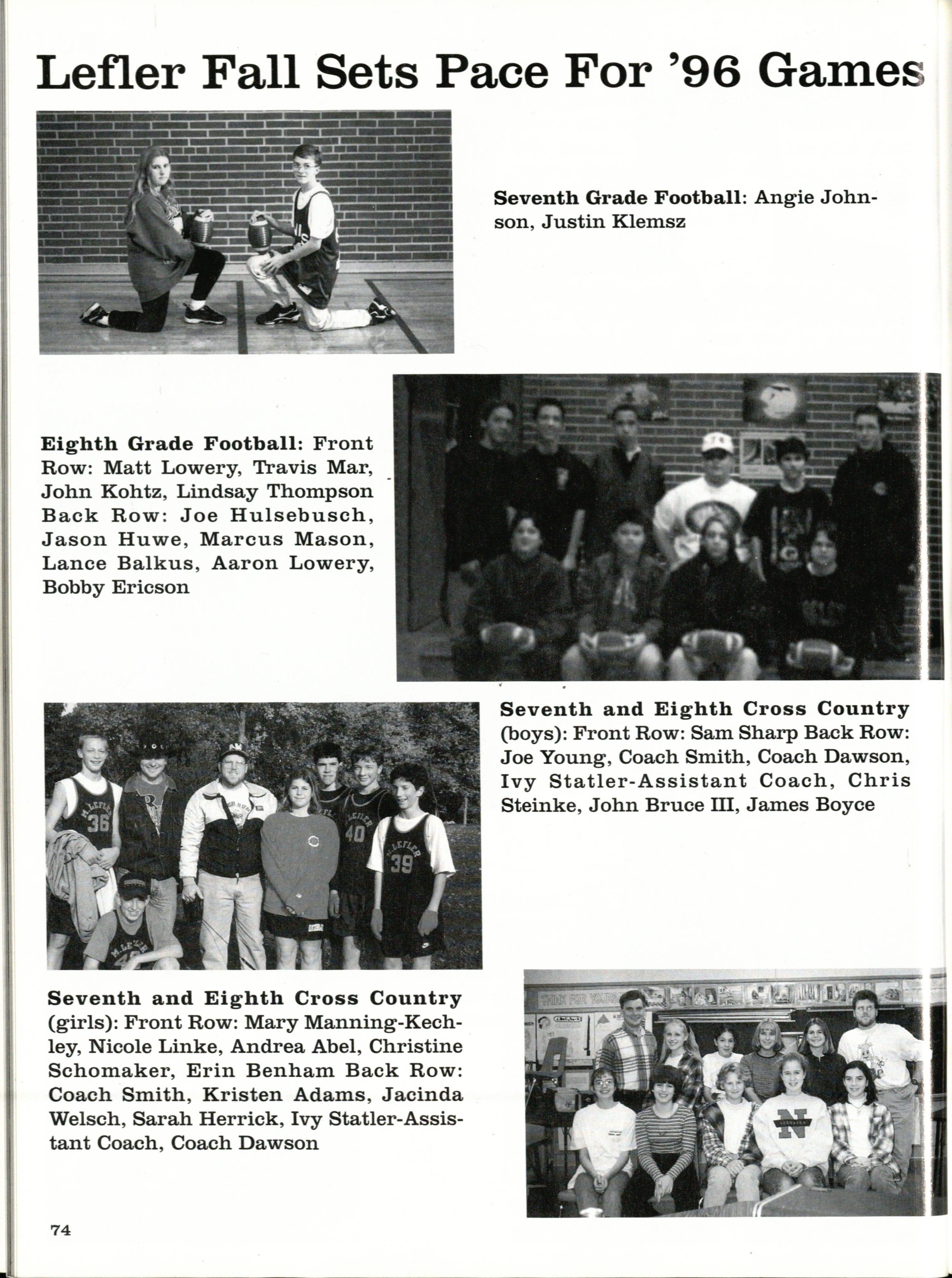 Eighth Grade Football: Front Row: Matt Lowery, Travis Mar, John Kohtz, Lindsay Thompson Back Row: Joe Hulsebusch, Jason Huwe, Marcus Mason, Lance Balkus, Aaron Lowery, Bobby Ericson