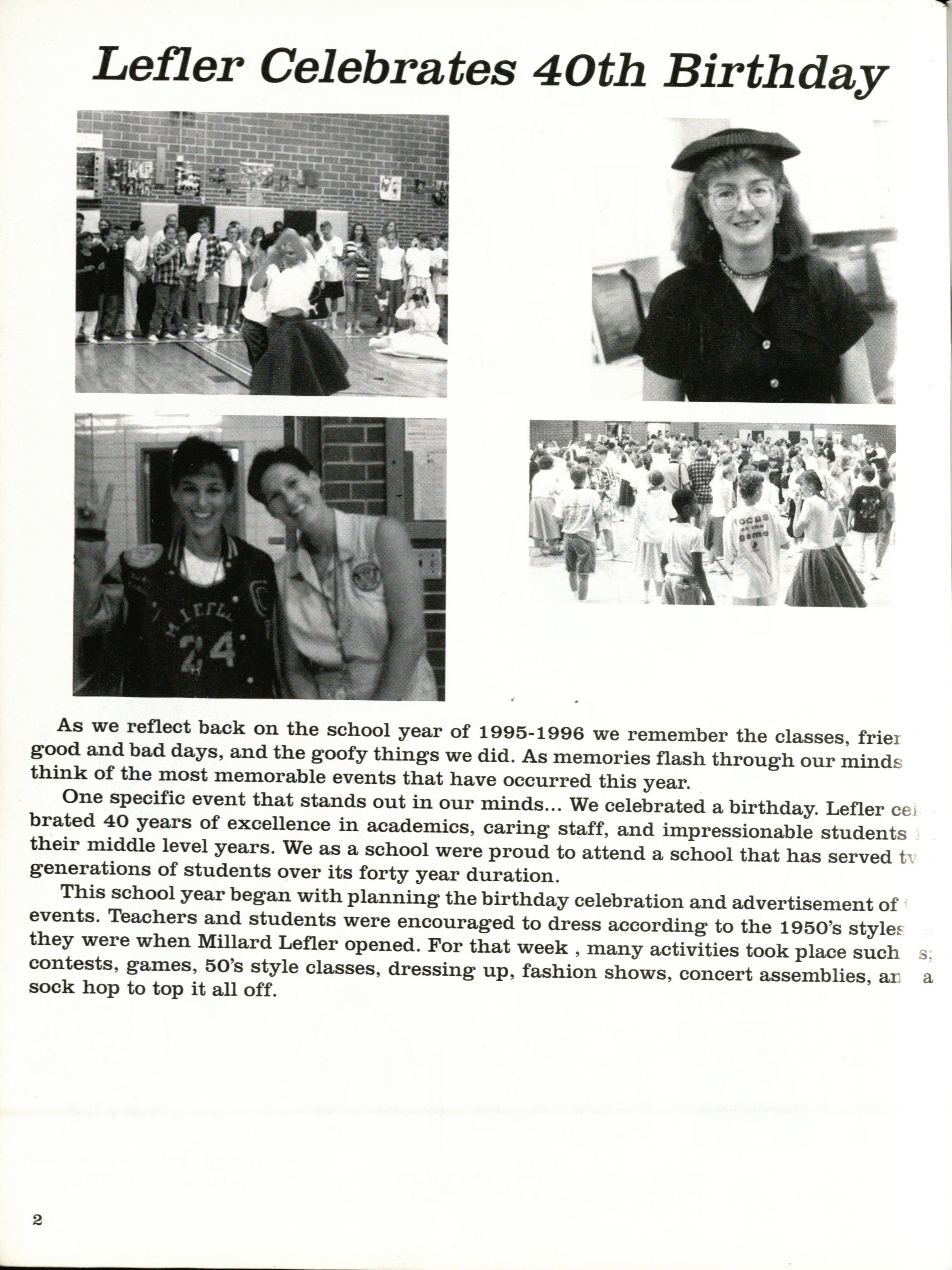 One specific event that stands out in our minds ... We celebrated a birthday. Lefler ce t brated 40 years of excellence in academics, caring staff, and impressionable studen ts their middle level years. We as a school were proud to attend a school that has served t , generations of students over its forty year duration.