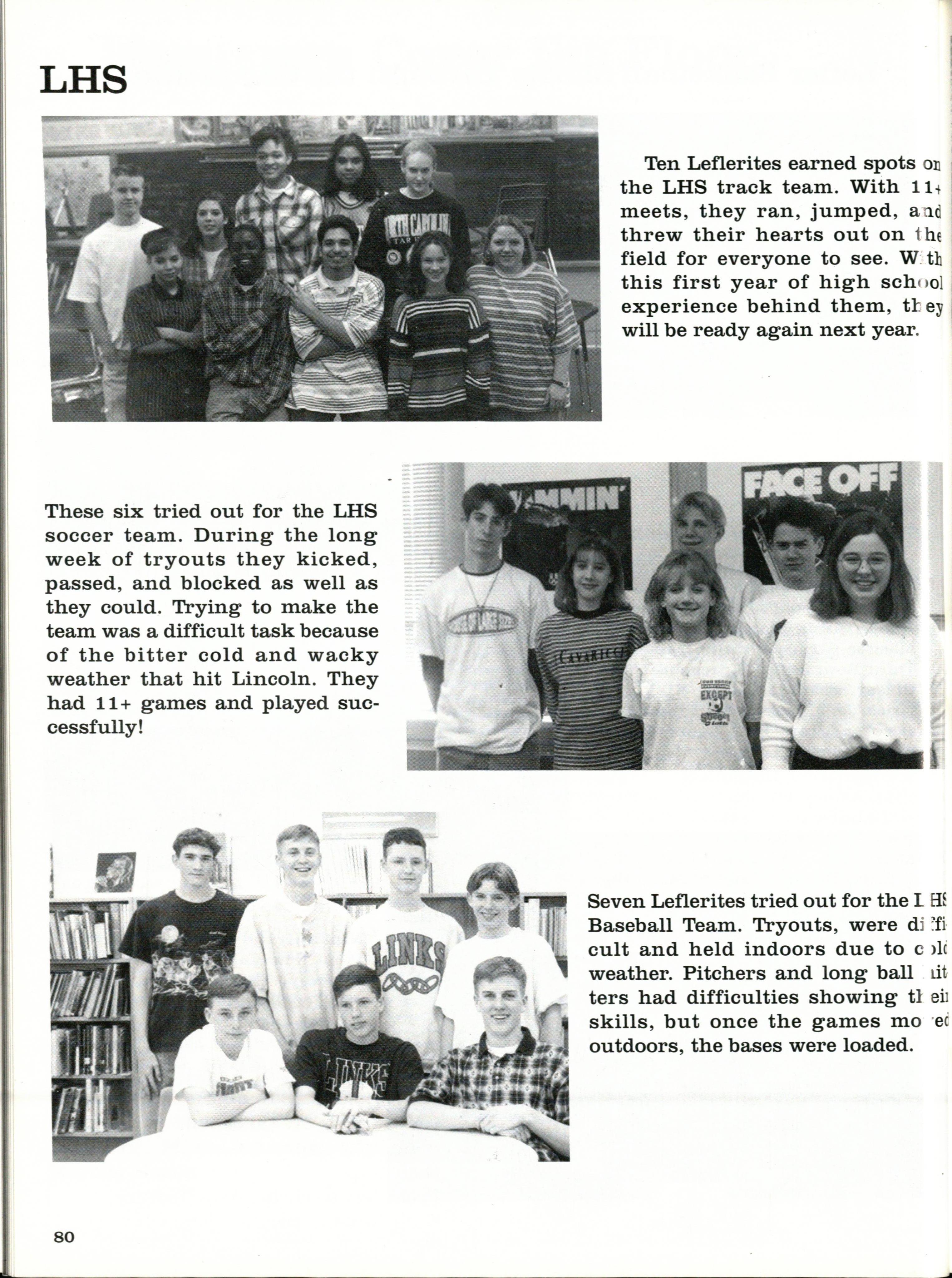Ten Leflerites earned spots n the LHS track team. With 11 meets, they ran, jumped, a d threw their hearts out on t he field for everyone to see. W: th this first year of high sch o ol experience behind them, t b ey will be ready again next year.