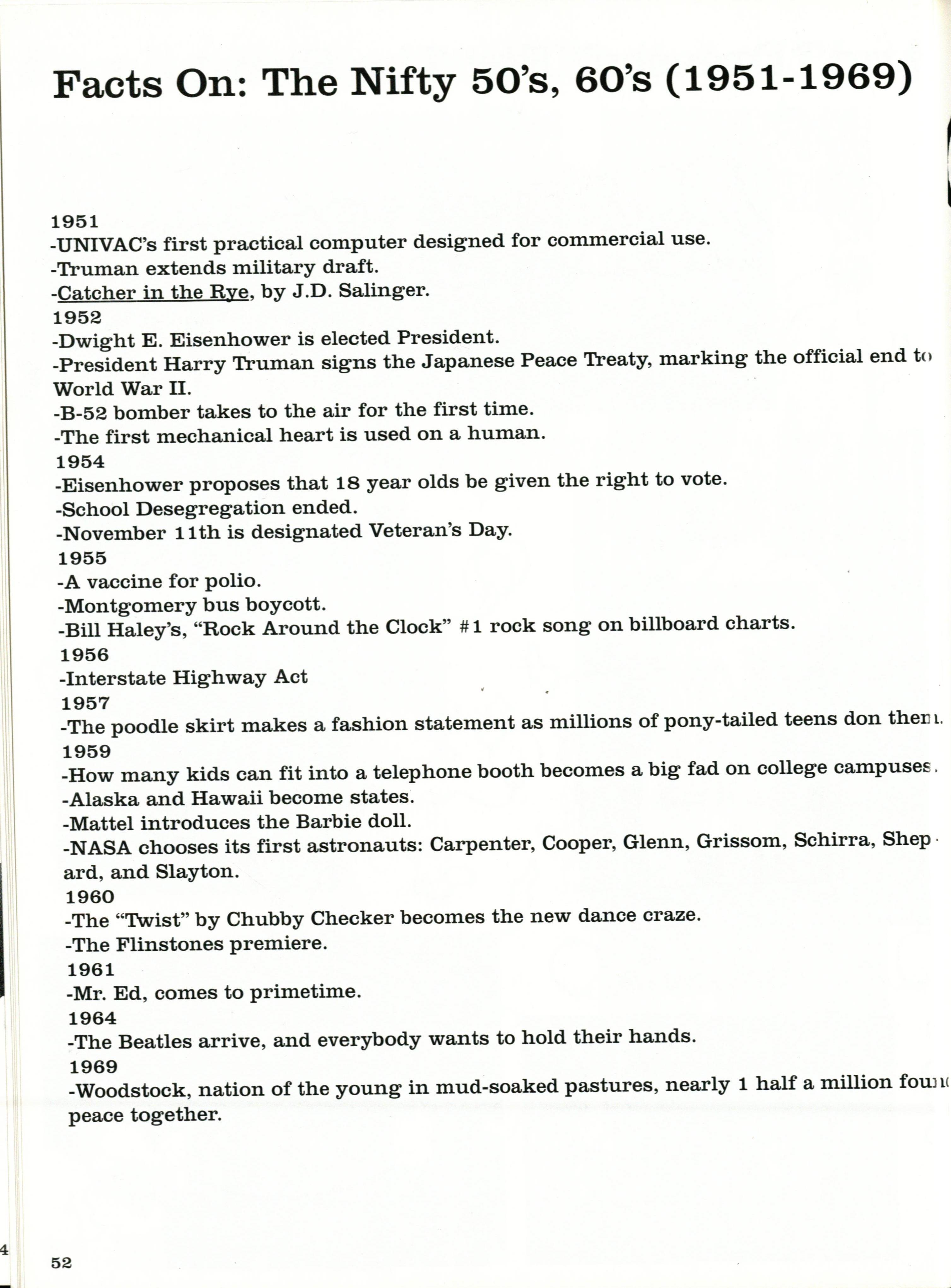 This school year began with planning the birthday celebration and advertisement o f events. Teachers and students were encouraged to dress according to the 1950's style f they were when Millard Lefler opened. For that week, many activities took place such contests, games, 50's style classes, dressing up, fashion shows, concert assemblies, a n a sock hop to top it all off.