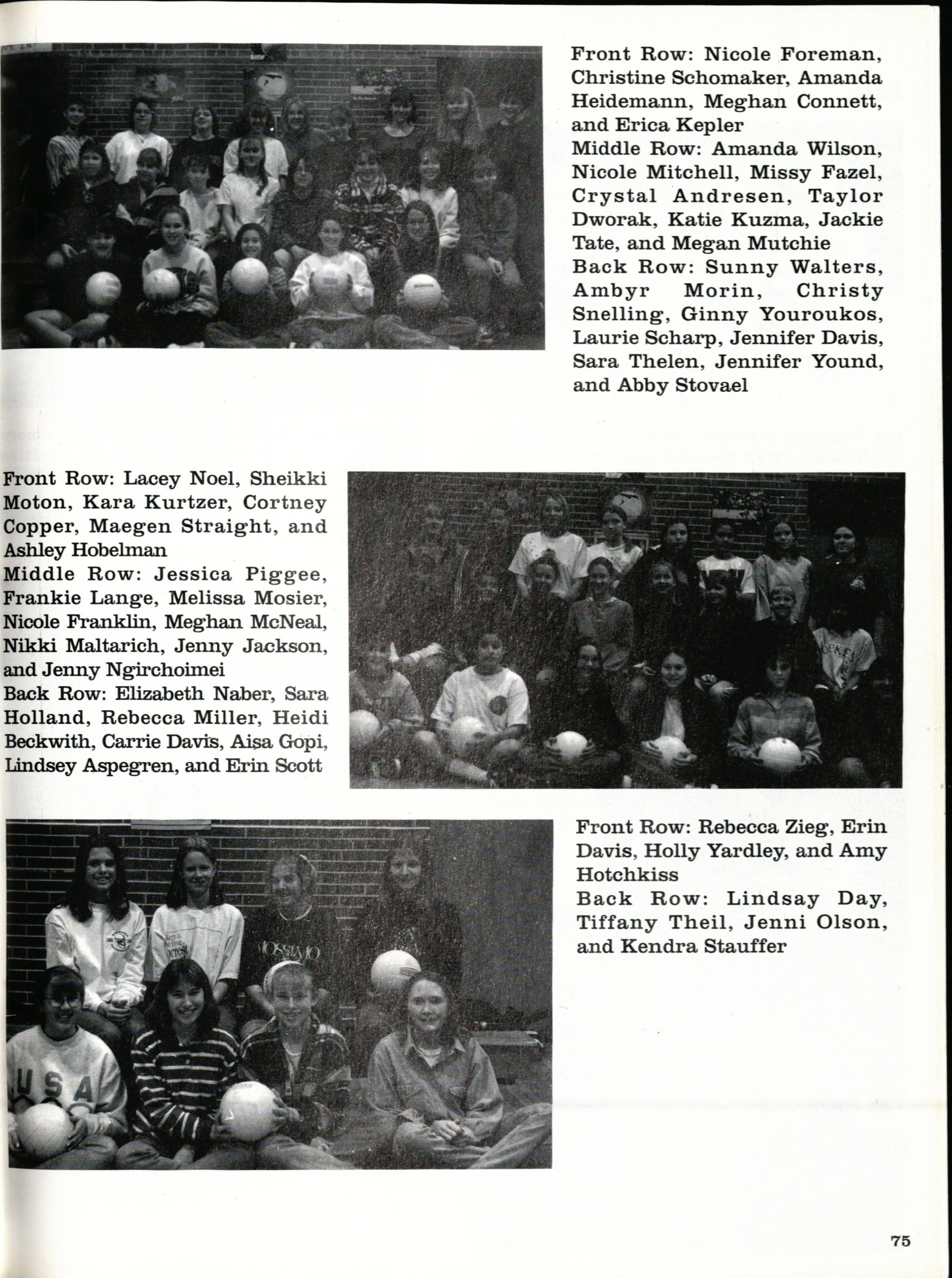 Ninth Grade Basketball (girls): F r ont Row : Ingrid Hamilton , Holly Ya r dley , Traci Gobber , Kendra S ta uff e r. Back Row: Emily Thaden , Rebec c a Zieg , Erin Davis , Kelli Ferguson , Nicci Ellis , Emily Harris Not Pic t u r ed: Kristy Beitler , Amy Hotchkiss , Kati e Laws , Stacy Brauer
