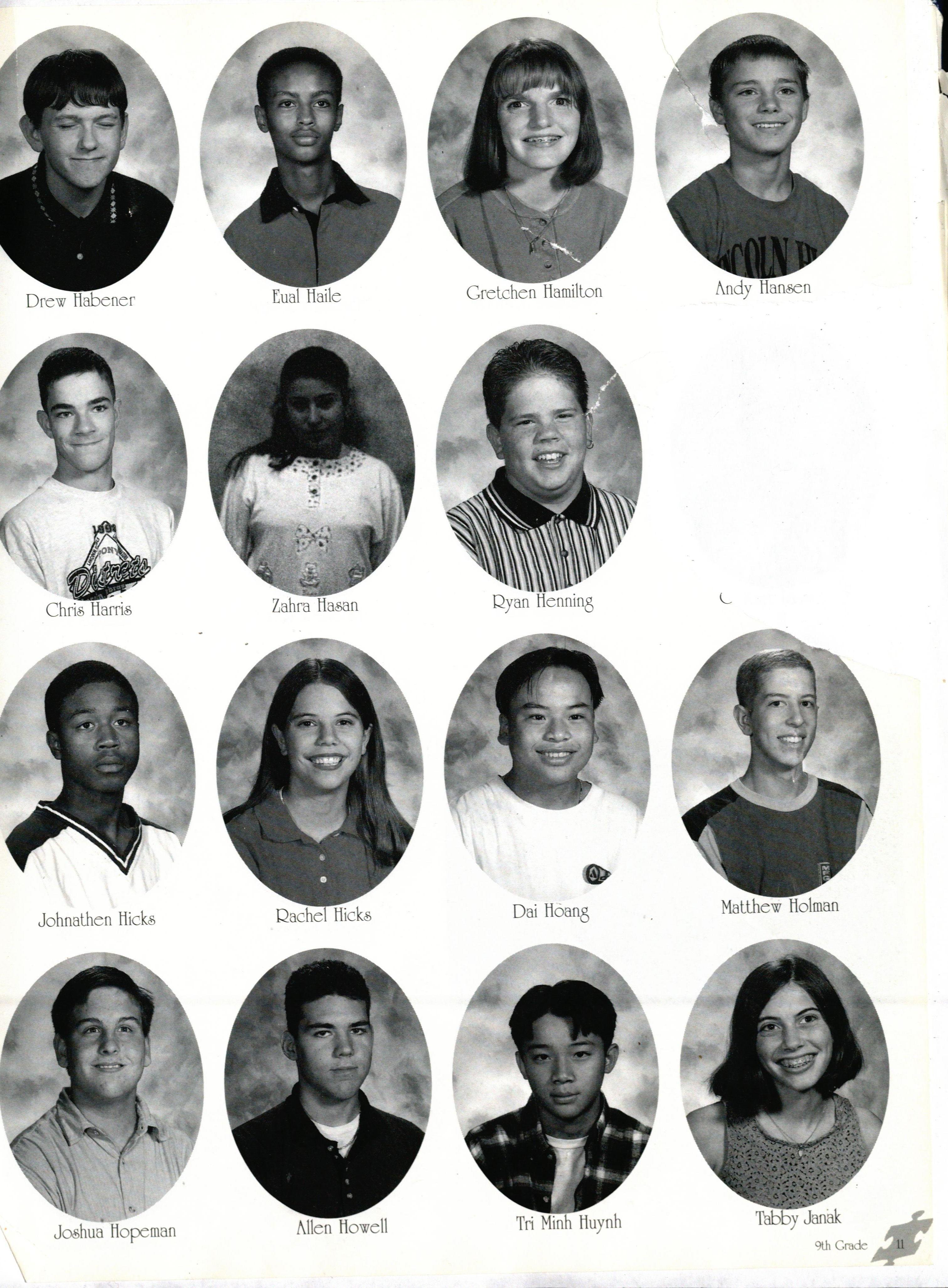As 9th 8rade moves from first to last, they sti I know how to make their last 8ame memorable b _ ' having a blastJ &ott Qut.z, Qeed Pierce, Dre, • ielsen, Liz Bateman, Jean f rench, Alicia 5rollia1 Andy Lomax, Mandy M38wire, Greer Wiklund, Joe Reimers, Jamie Ullman, and Qachel Hicks show u. how the 881Ile is done! Even as they 8rew olde throu8hout their years of playing, they had a cha l lenging time trying, and as they succeed and mov e on, they realize that althoU8h all of it wasn't fu they still enjoyed it, as they say 8ood-bye to the i1 last days playing the 8ame!