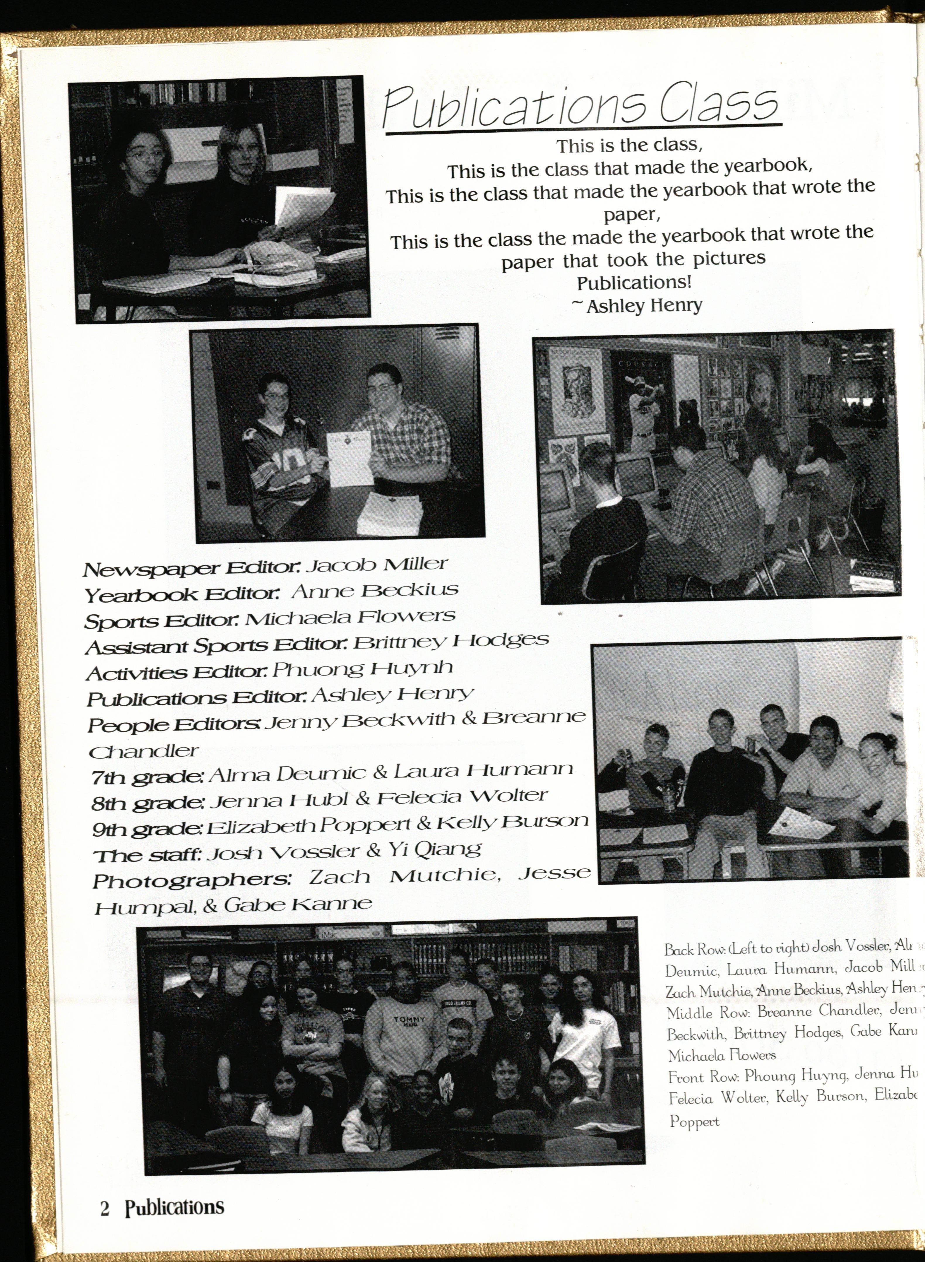 This is the class the made the yearbook that wrote the paper that took the pictures Publications! - Ashley Henry