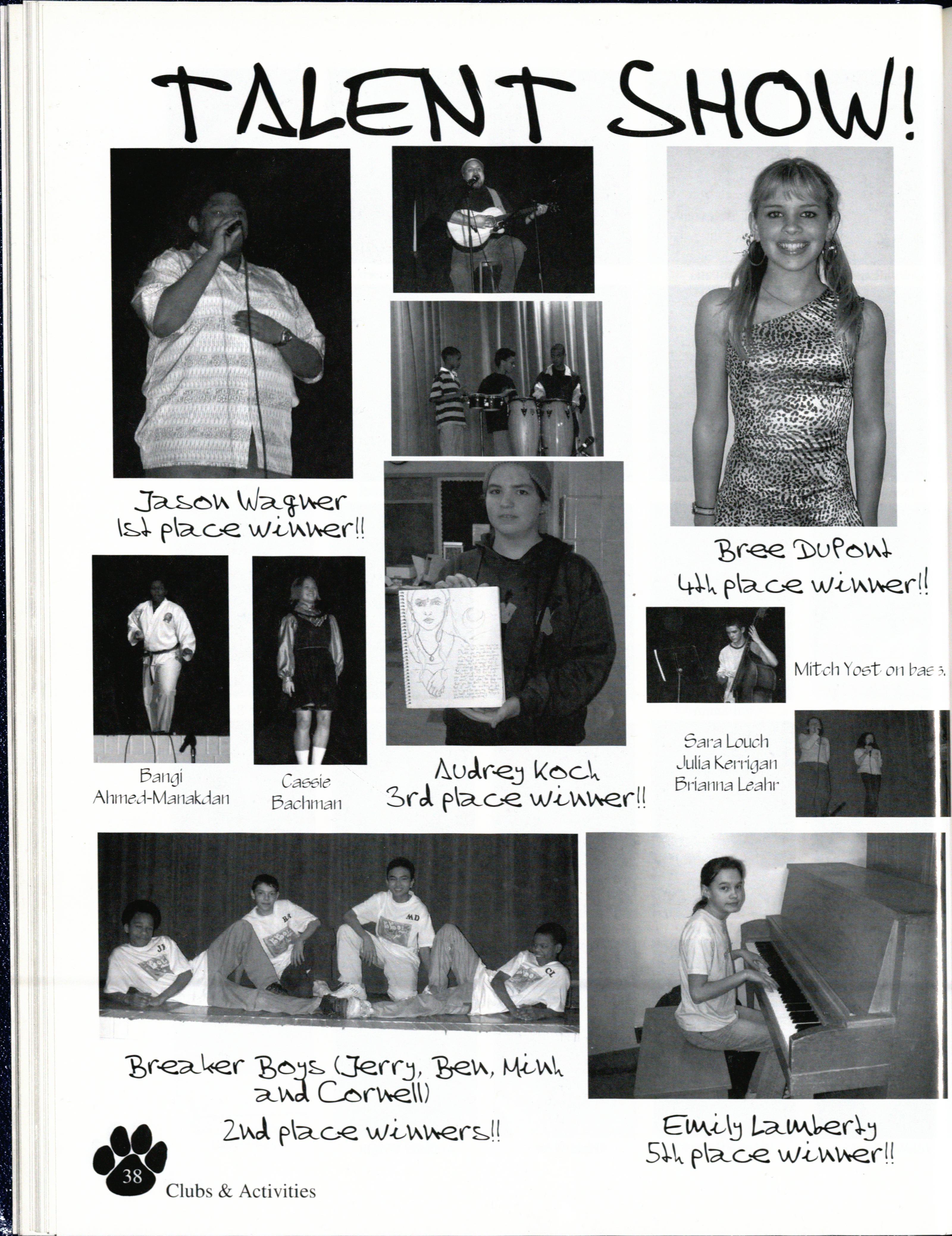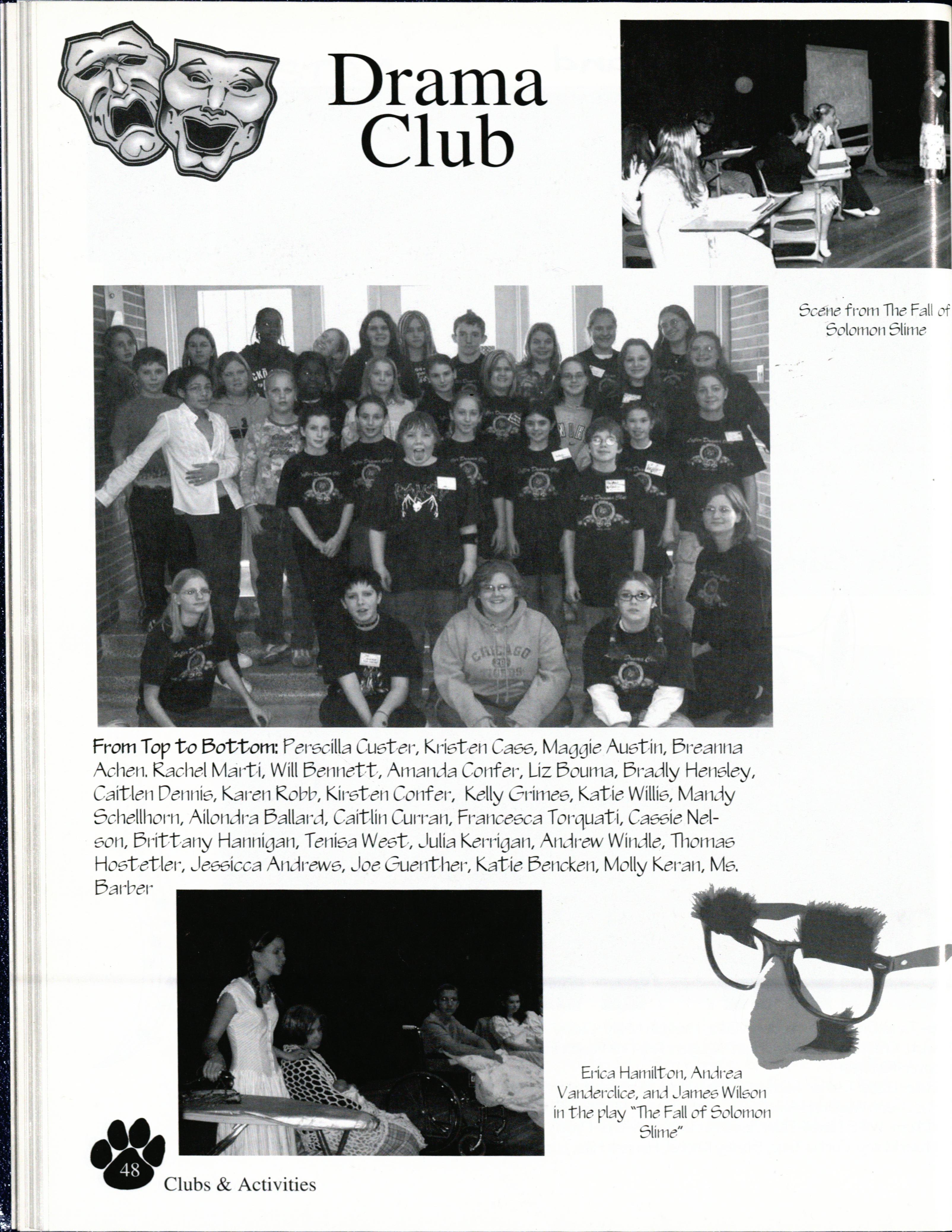 • Art Qub Members: Breanna Achen, Sam Bontrager, Liz Bouma, Pat Burmister, Kristen Cass, Amanda Confer, Kirsten Confer, Gabe Constantine, Samantha Corr, Katie Cummings, Cailin Curran, Priscilla Custer, Lauren E astman, Shea-ann Erikson, ail Erikson, Michael Faii Achild, Morgan Heyen, Cry stal H obson, Michela Iwanski, Molly Kernan, Julia Karigan,
