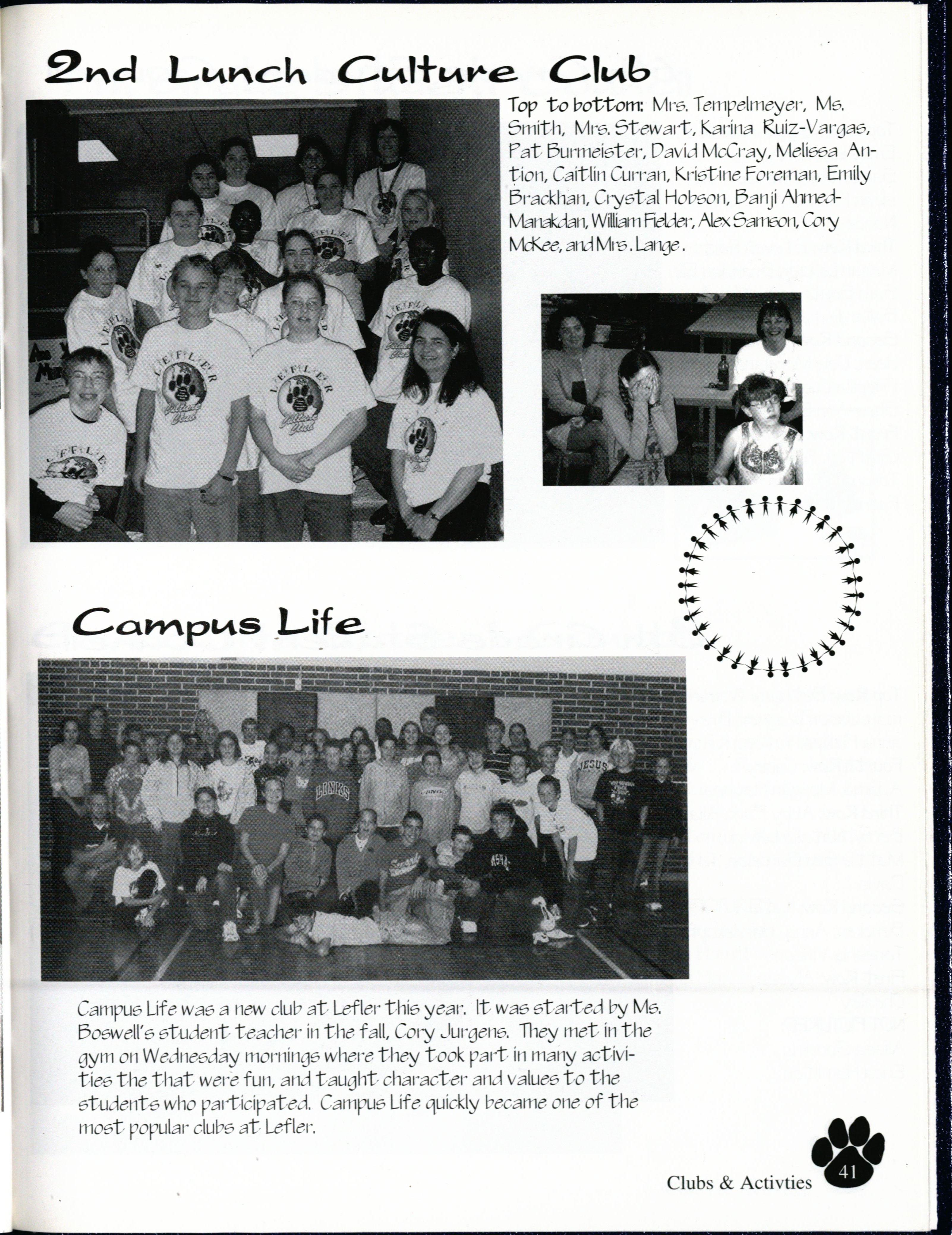 ampus Life was a I1ew club at Lefler this yeaI A . It was sta,Ated by Ms. Boswell's stu Jent tea her i11 the fall, I-y ..Ju, Agens 1l1ey met in the gym 11 We ~11esday m 1A11ings whe1 Ae they to k pa1At in many a ti ities the that were fu11, an~ t aught hara ,te1A and alues t the students who parti ipated. ampus Life quickly be ame ne f the m st popular lu bs at Lefle1 A .