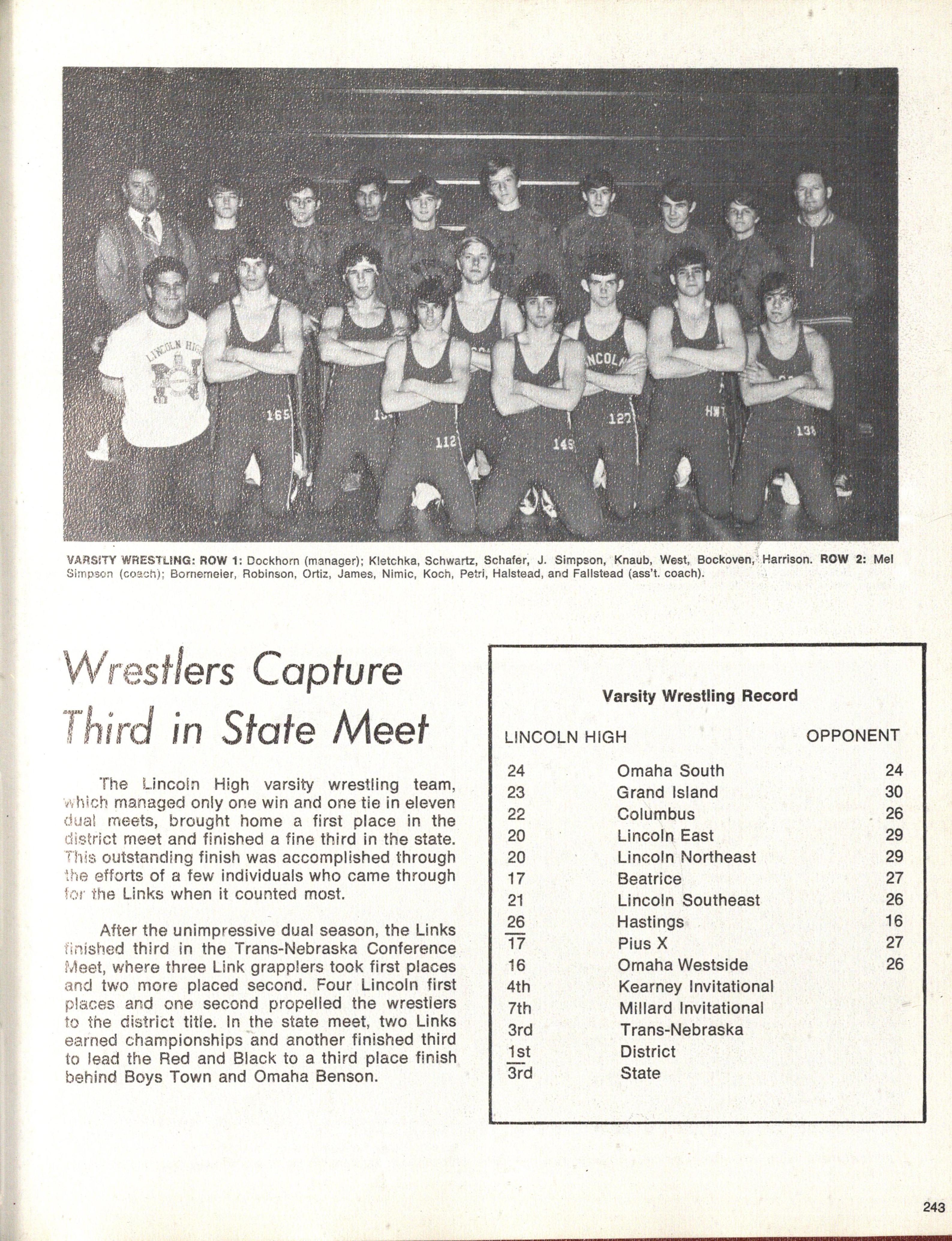 The great tradition of Lincoln High School, of course, includes a long history of expression in the arts and in athletics. Over the years , the school has added significantly not only to the stature of the individuals involved but to the community by reason of the quality of its musical organizations, !ts drama and as other forms of art. Few who have passed through these portals have failed to thrill to the manner in which Lincoln High School has been represented on the gridiron, basketball court, baseball diamond, and the tra~k. The tradition of excellence in academic matters has earned over into the field of athletic competition , where under the tutelage of such greats as Browne, Baller, Beechner, and Pfeiff, the young men of Lincoln High School have lea~n.ed not just the athletic skills but have developed the qualities of character that are essential to success in life. For many years Lincoln High School enjoyed the uniqu_e advantage_ of being the sole public high school in a growing community, the capital of its state. In a very real sense, Lincoln High was a cross section of the entire community. It represented the community and held the interest of the entire community. It profited also from a very close and cordial relationship with the University of Nebraska with a most harmonius interchange carried on between the faculties of the two schools. Lincoln High grew to maturity in an environment that was favorable for the development of a high school that was strong in every respect and yet this opportunity would never have become· reality but for the singular devotion and ability of the men and women who have guided this institution and taught its students. I cannot name all of these great people and in a sense it is unfair to others to mention any of them, but out of my own experience and deep sense of Indebtedness I cannot fail to recall on this occasion names such as those of Olivia Pound, Gertrude Jones, Jesse B. Jury, Mariel Gere, Ethel Beattie, and Frank Kane, among the superb teachers from whom I learned In the same breath we recall the distinguished administration of men like Will French, Otto Hackman, Hal Mardis, and Bill Bogar. Lincoln High School and all who have profited from studying here stand as monuments to the inspiring teaching and stimulus of a consistently superior faculty.
