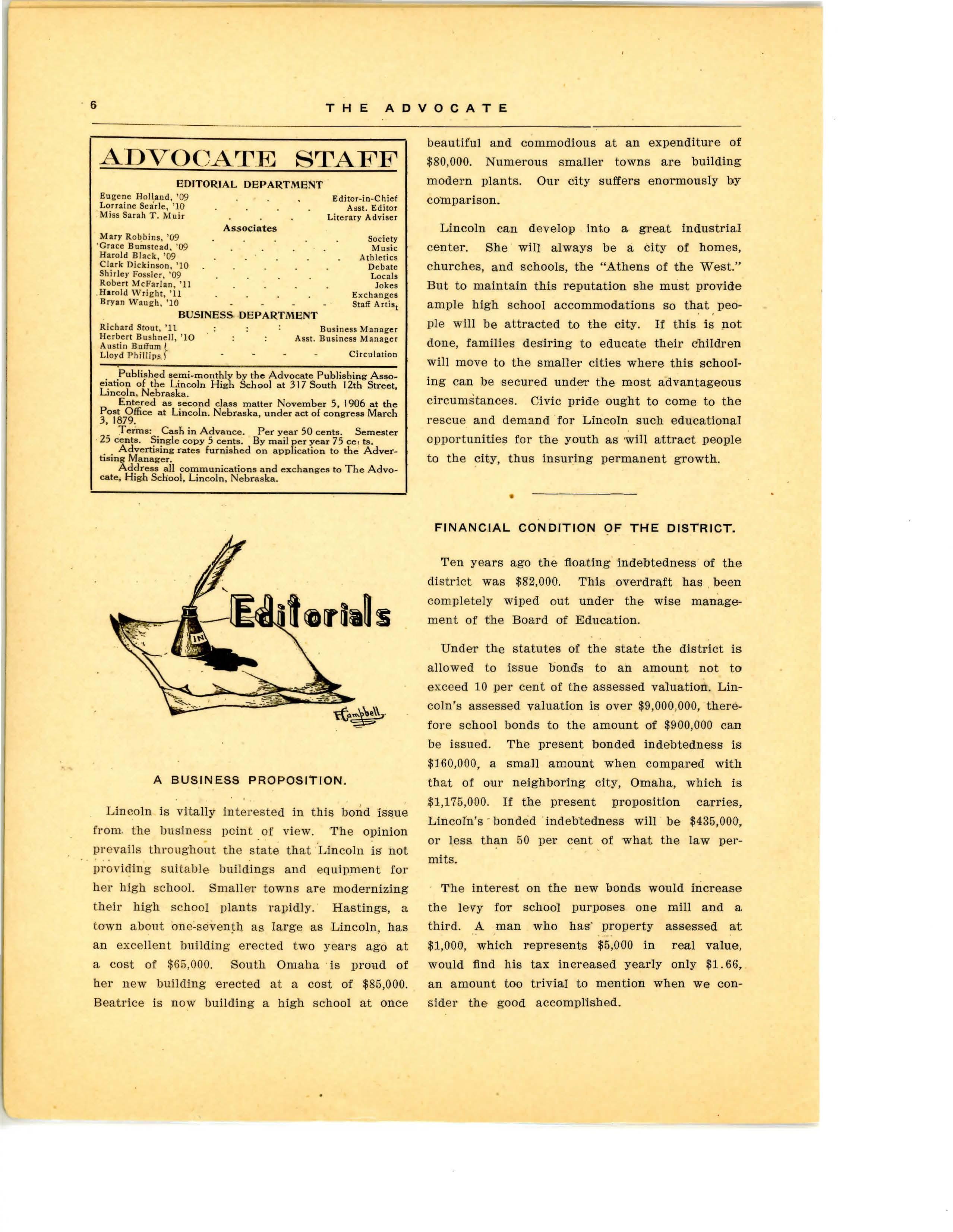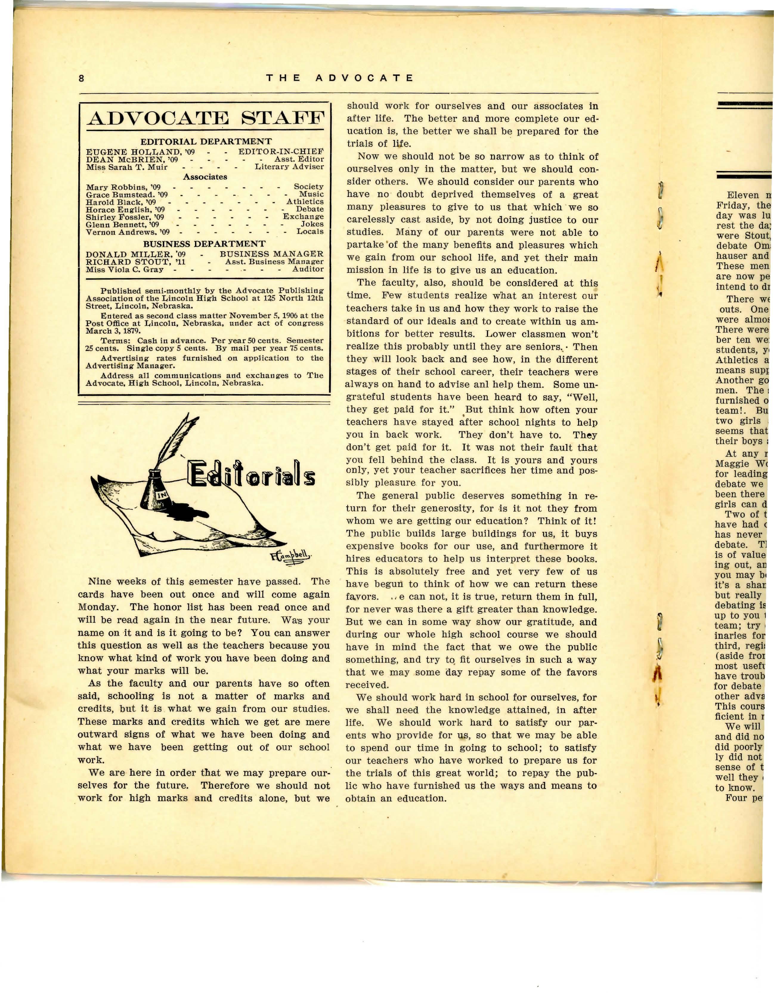 We are sorry to announce the departure of Mis'S Anna Em e rson , who has returned to work in the hi g h school, at Sioux Fa'lls, South Dakota. Miss Emerson has taught here since 1900 , andi has made many friends among studants, teachers, and patrons of the school, who regret her departure very much. She has alwa ys stood for the highest ideals in both conduct and learning, and her in· fiuenca for good here cannot be estimated . Her many friends wish her a happy l1fe in her n ew home and hope that she will remember her life in Lincoln with pleasure and also with soma regre t that it i'S past.