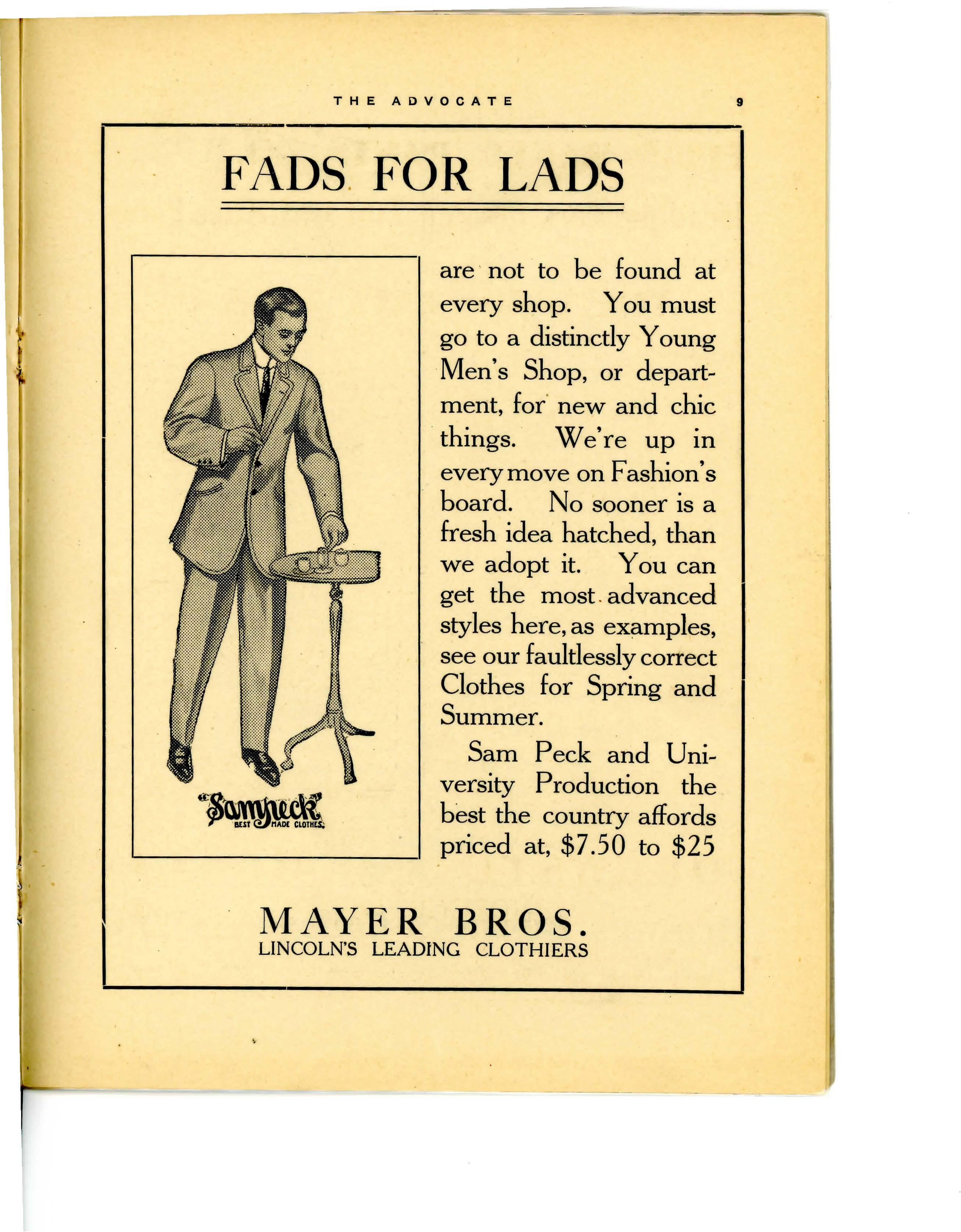 In all our y ears of e x per ience m buying and -s elling the BETTER KIND of men's clothing w e have never known of a line so sally popular with young men as SOCIETY BRAND CLOTHES. We are e x clusive agents fo r Lincoln