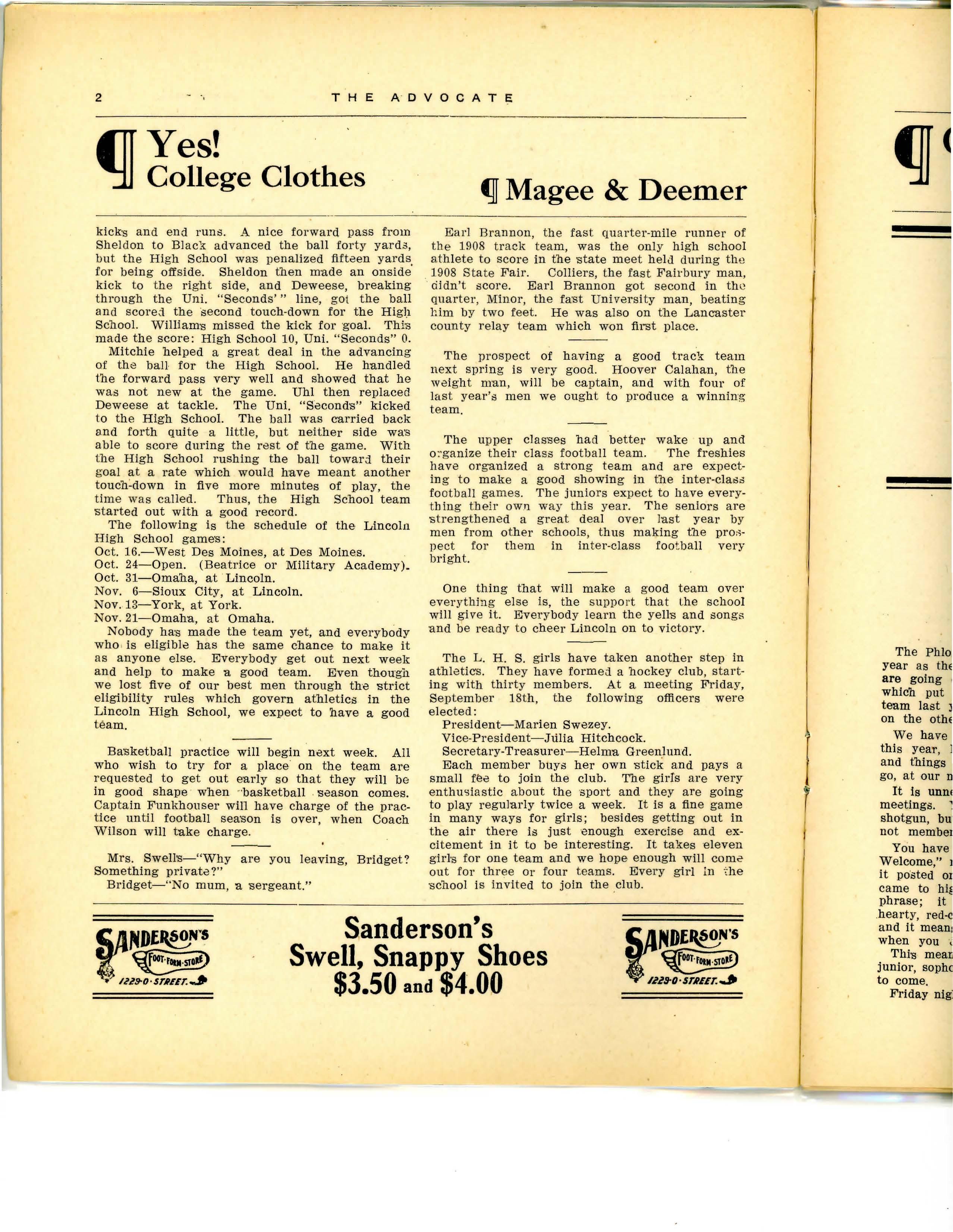 Nobody ha·s made the team yet, and everybody who . is eligible has the same chance to make it as anyone else. Everybody get out next week and help to make a good team . Even though we lost five of our best men through the strict eligibility rules which govern athletics in the Lincoln High School, we expect to have a good team.