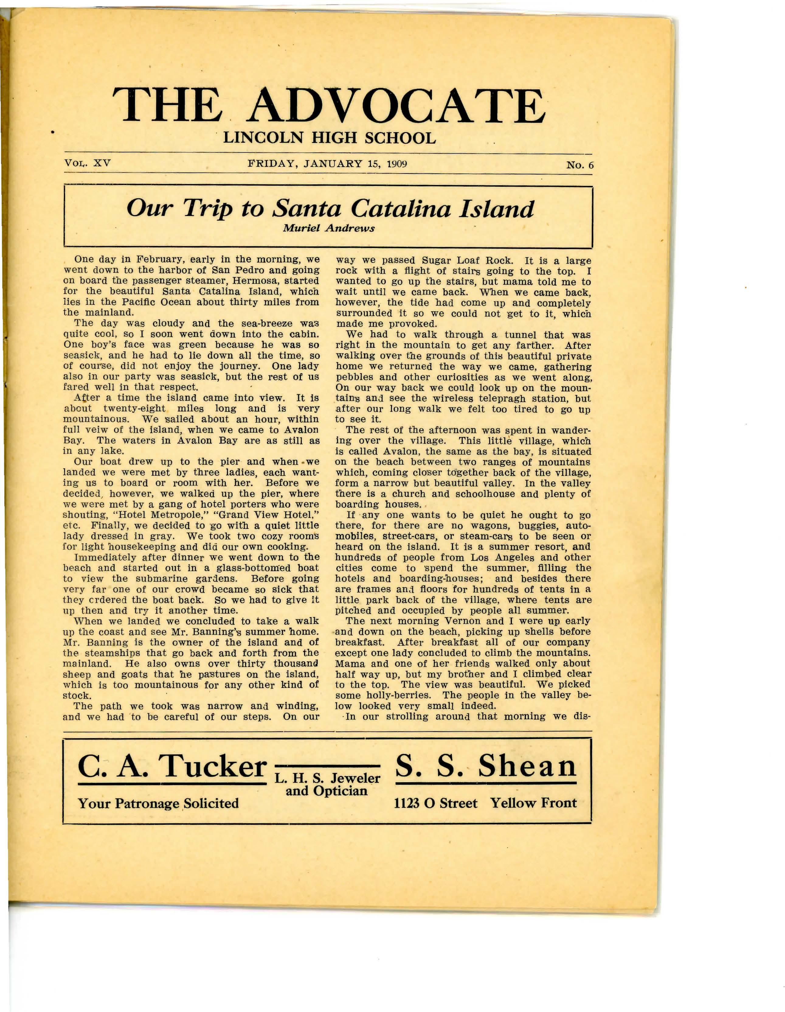 I :flnd that I cannot get along w i thout "The Advocate," so I enclose 50 cents for this year's subscri ption P l ease send paper to 114 East Thirtyfifth street, Kansas City, Mo.