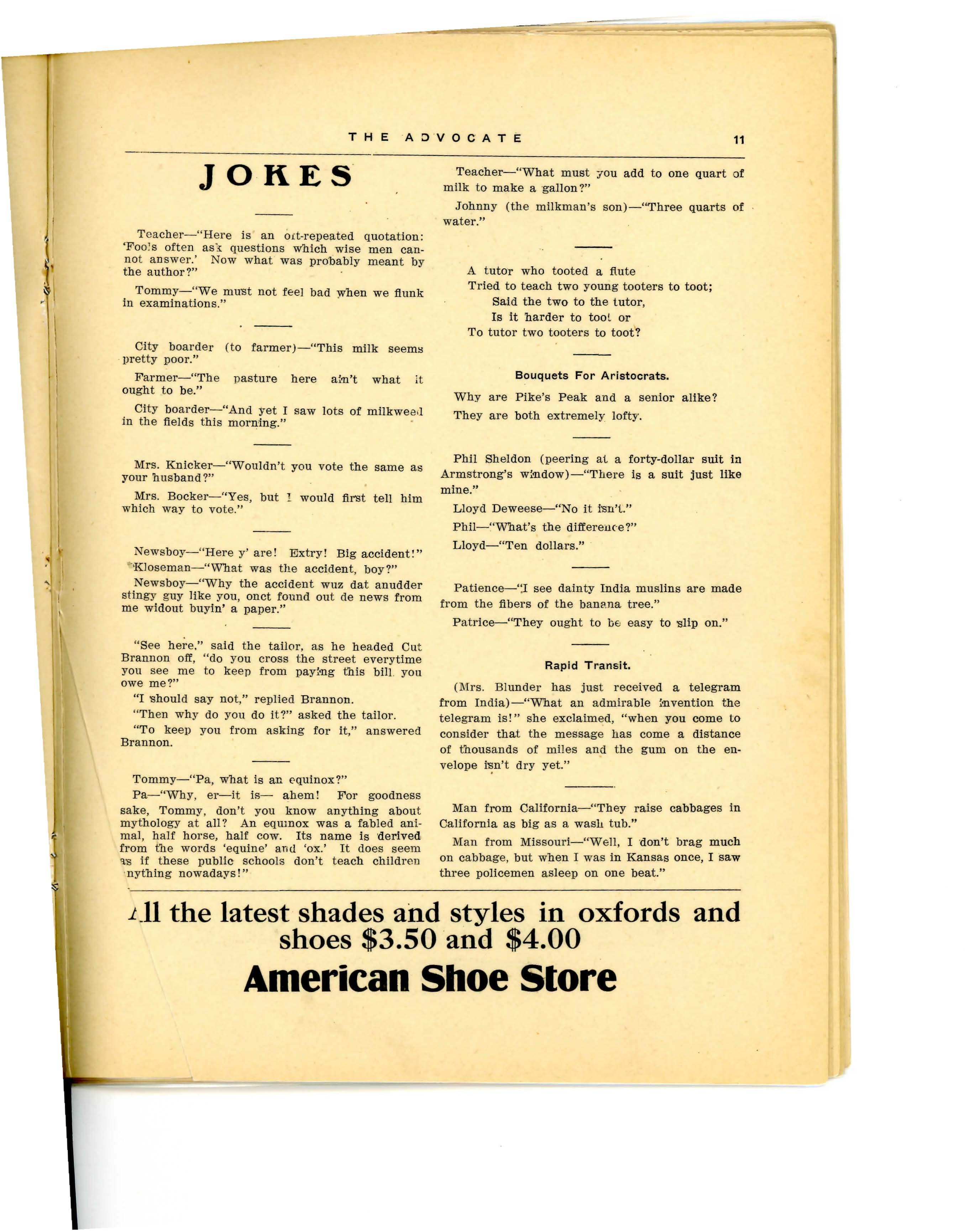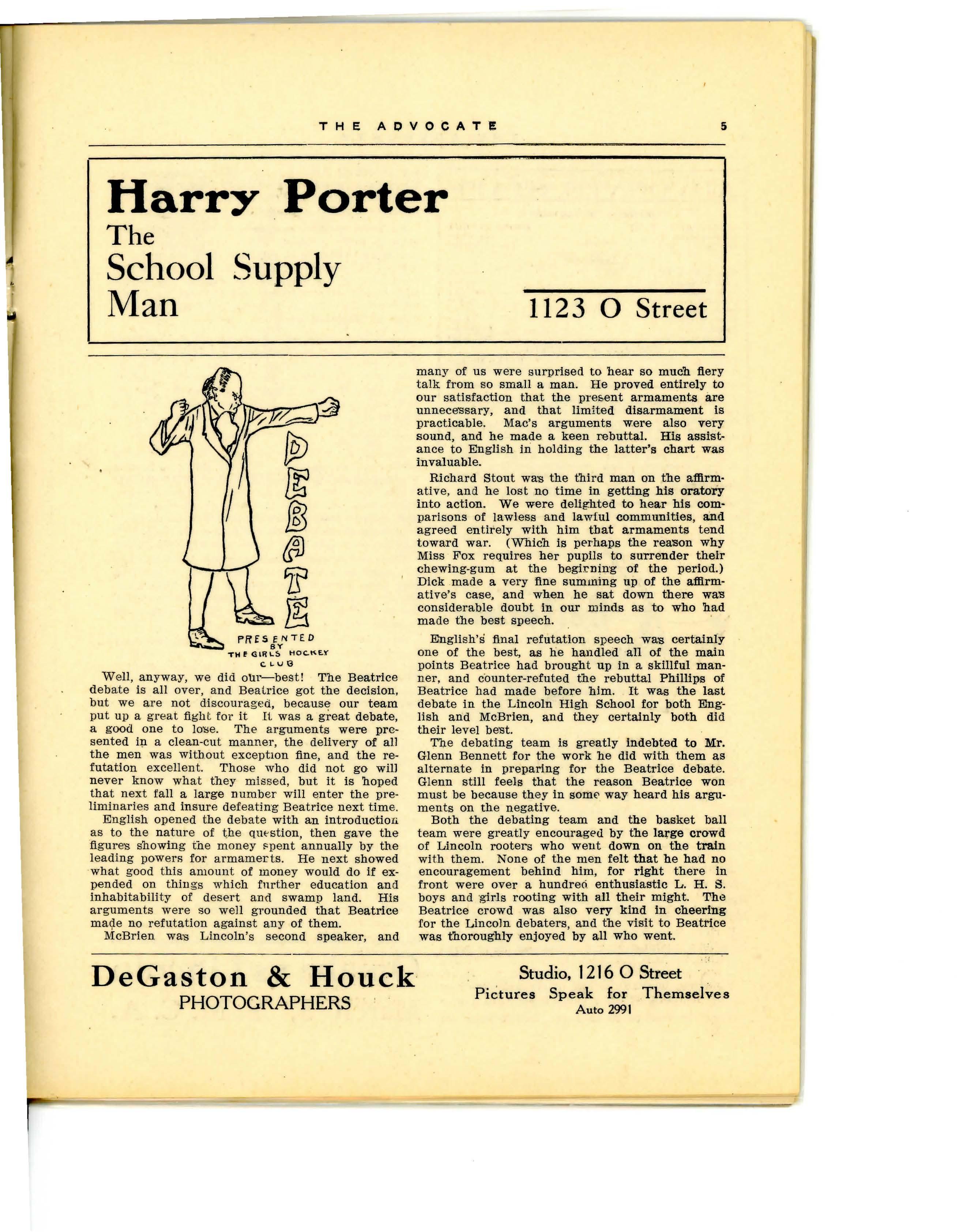 Take Archie's advice, "Be a booster, not a knocker and subscribe for the Advocate.". ·