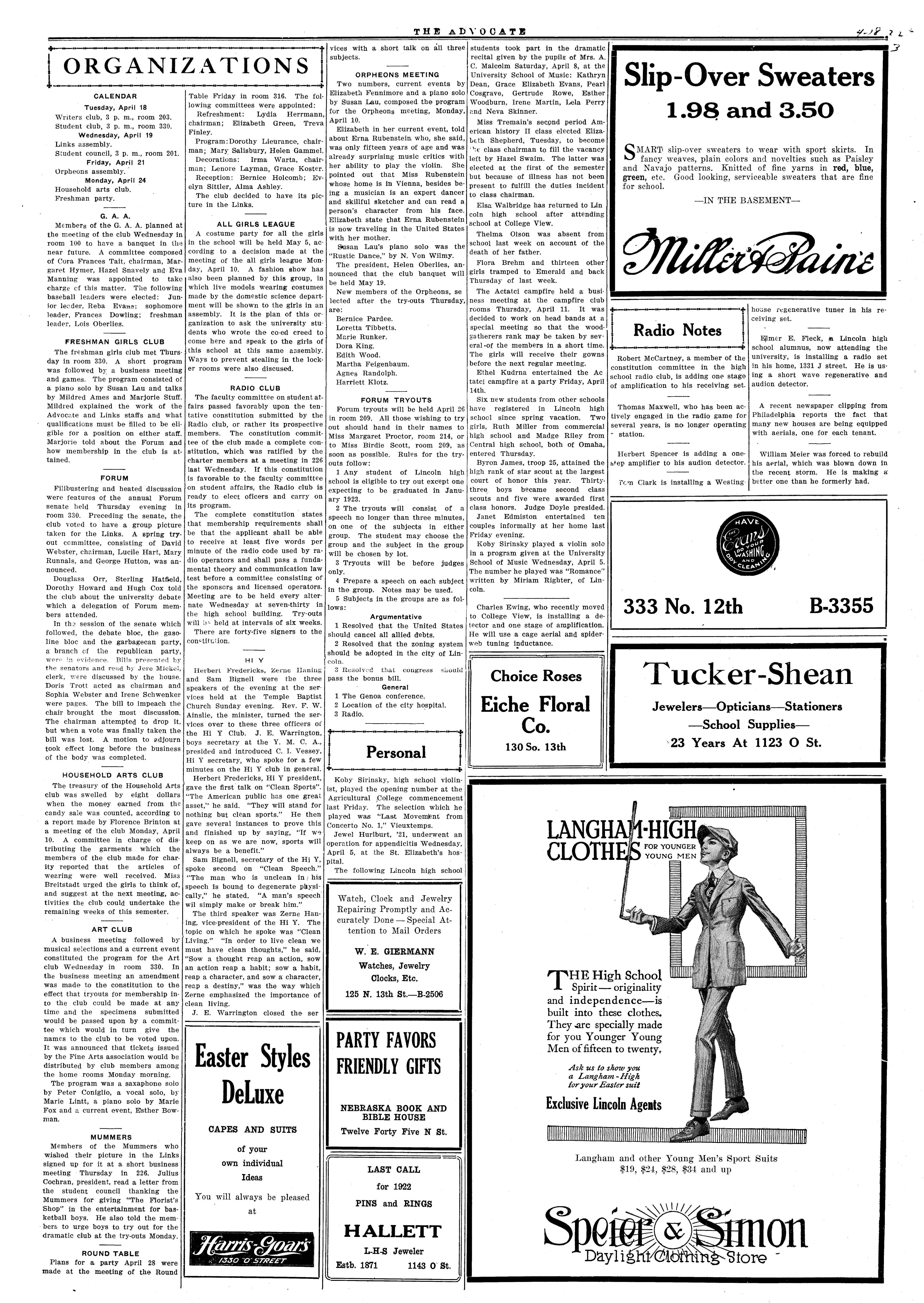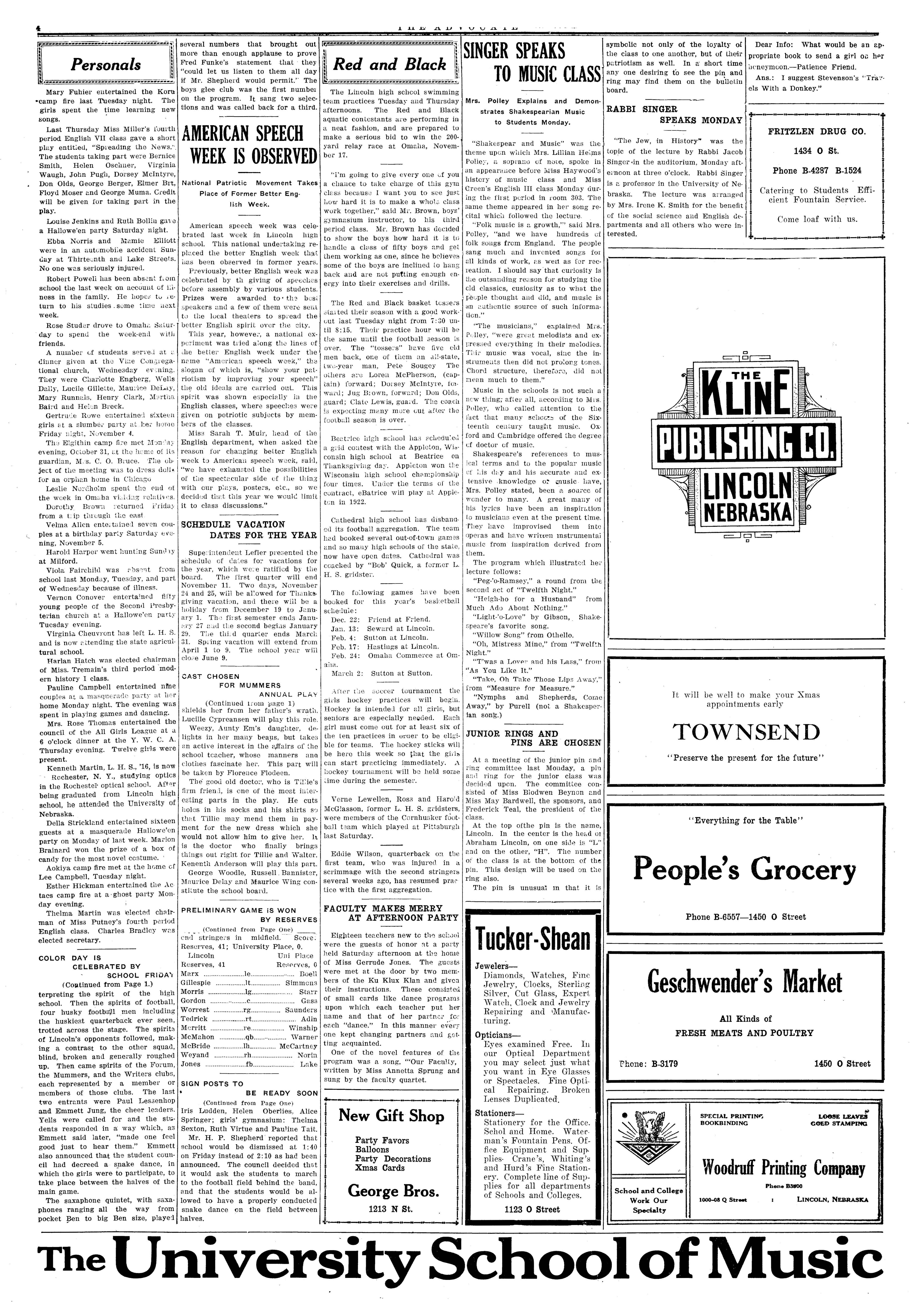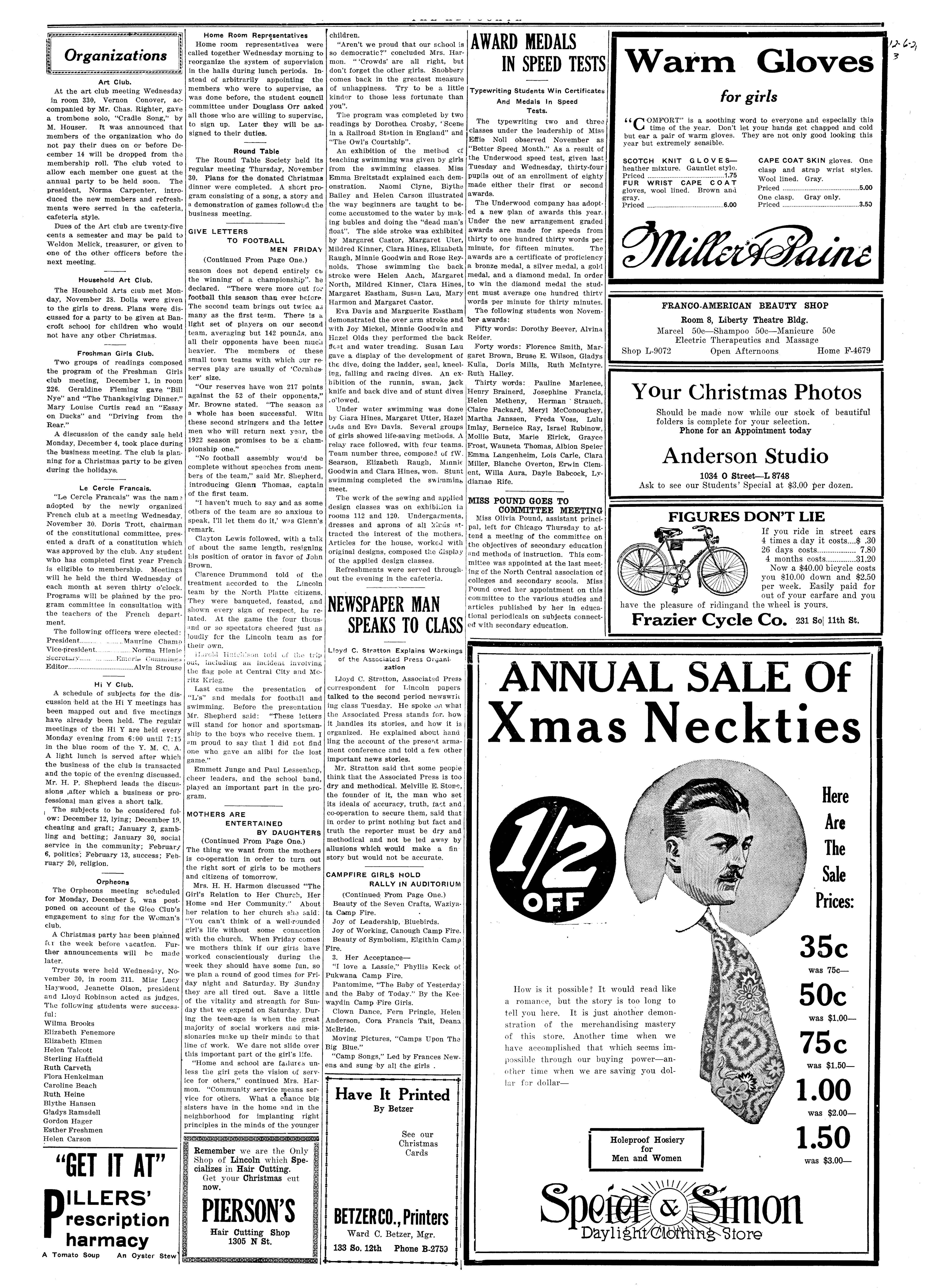 The advanced orchestra, according , to Mr. Charles Righter, Jr , is better I proportioned this year than it has ever been in previous years. Two violas and four 'cellos have been added to the string section and three flutes and is one little phase of the ma'fter which cannot be over-emphasized. c=This is the stealing of valuables fr om the school lo ckers. Of course NEW STOCK if it had been limited to "swiping" a little note-book paper, nothin g I would have been said, but when it comes to taking coats, caps and a numb er of other a rti des as has recently been done by some one in the building, the question can not be slighted. Lincoln hi gh scho ol does n ot offer a course in porch-climbing and probably most of the students would just as soon let the few here for that purpose remove themselves to other reg-inns.