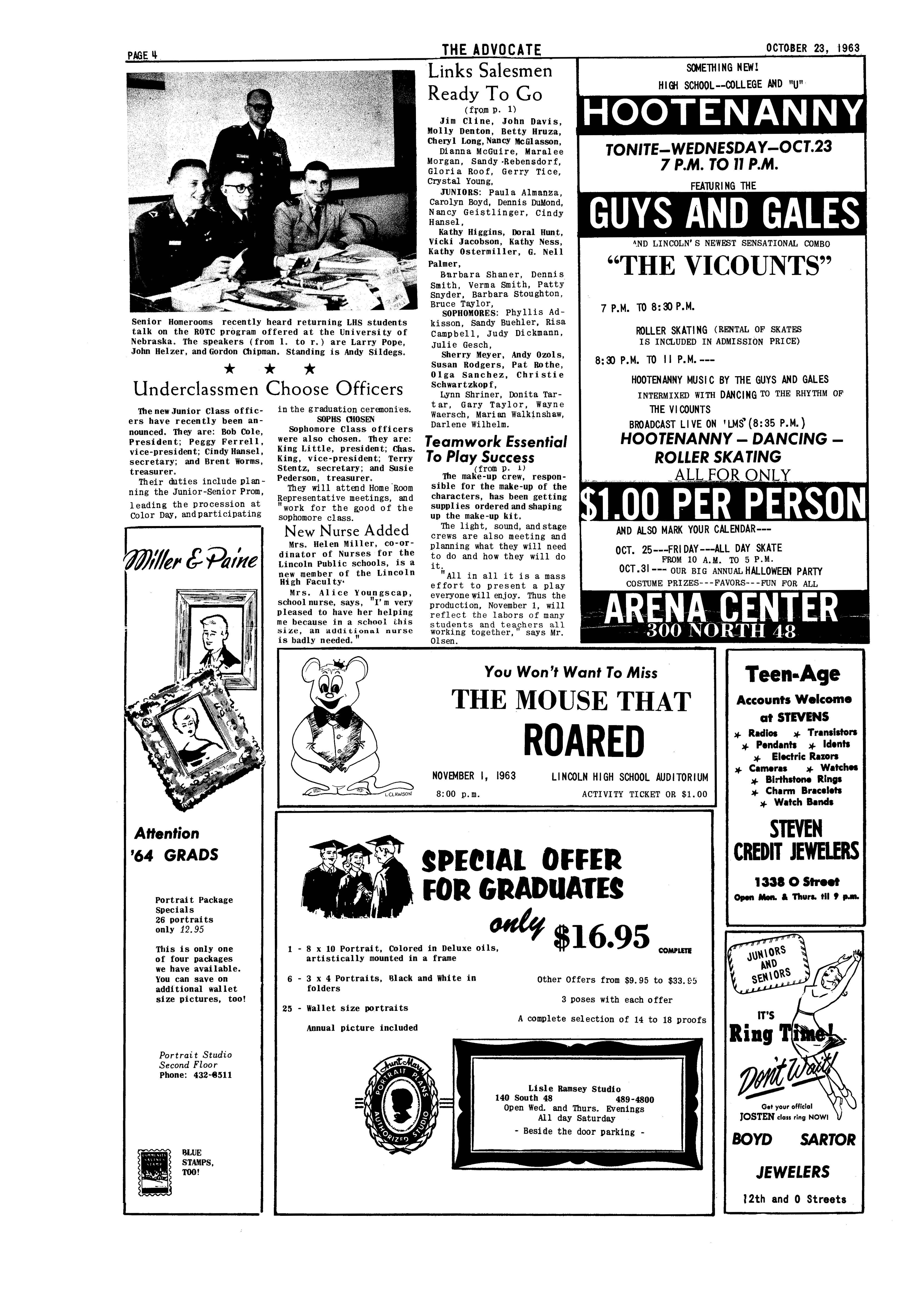 The Advocate is issued by the students of Lincoln High School bi-weekly during the school year except immediately following vacations. It is issued without cost to ev€ry Lincoln High student. Advertising rates are $1 per column inch.