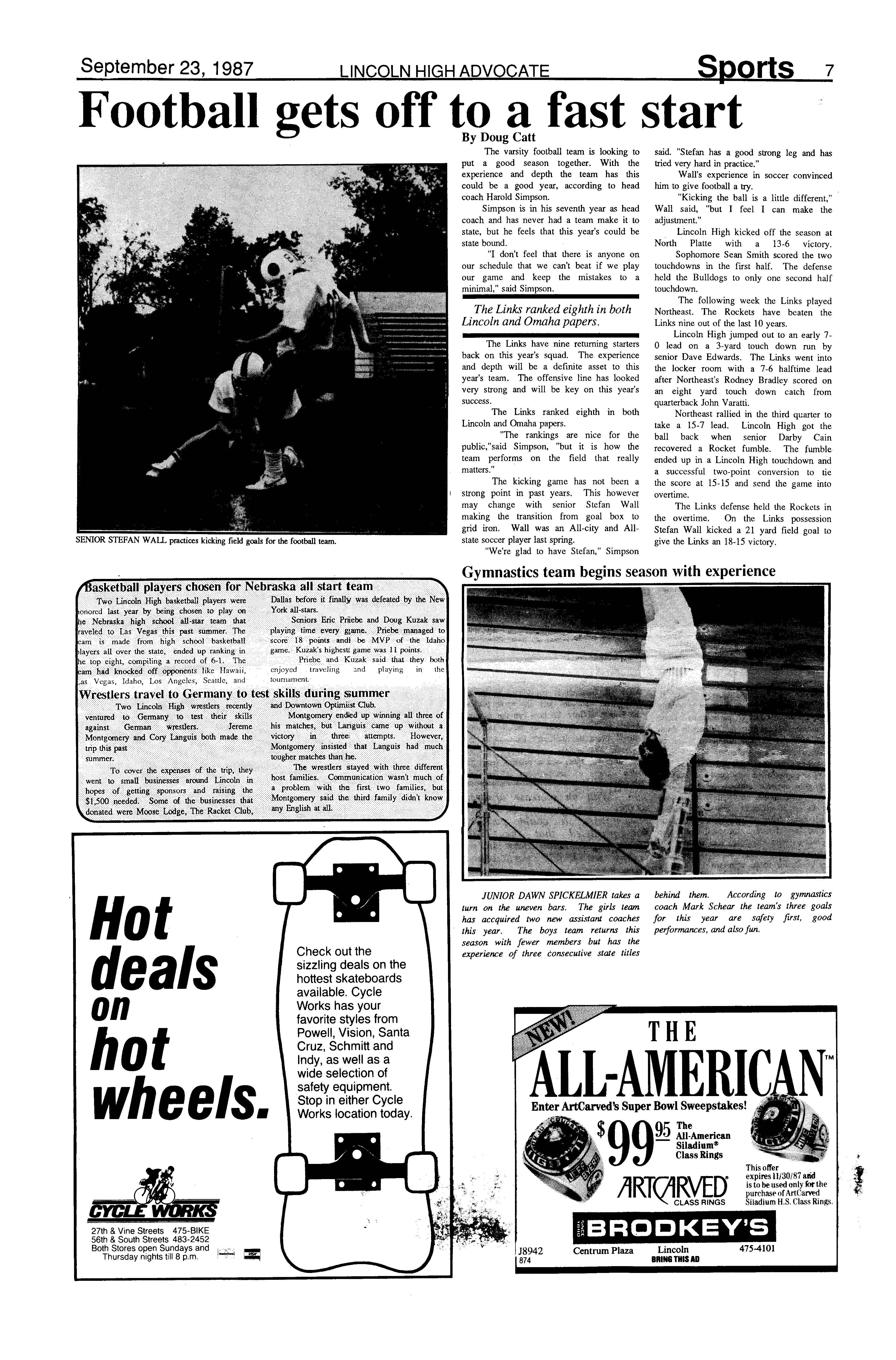 The team also placed second in the Fremont Invitational on April 25. They tied for second with Southeast. This was the frrst time in thirteen years that Lincoln High had upset Fremont said Aerni