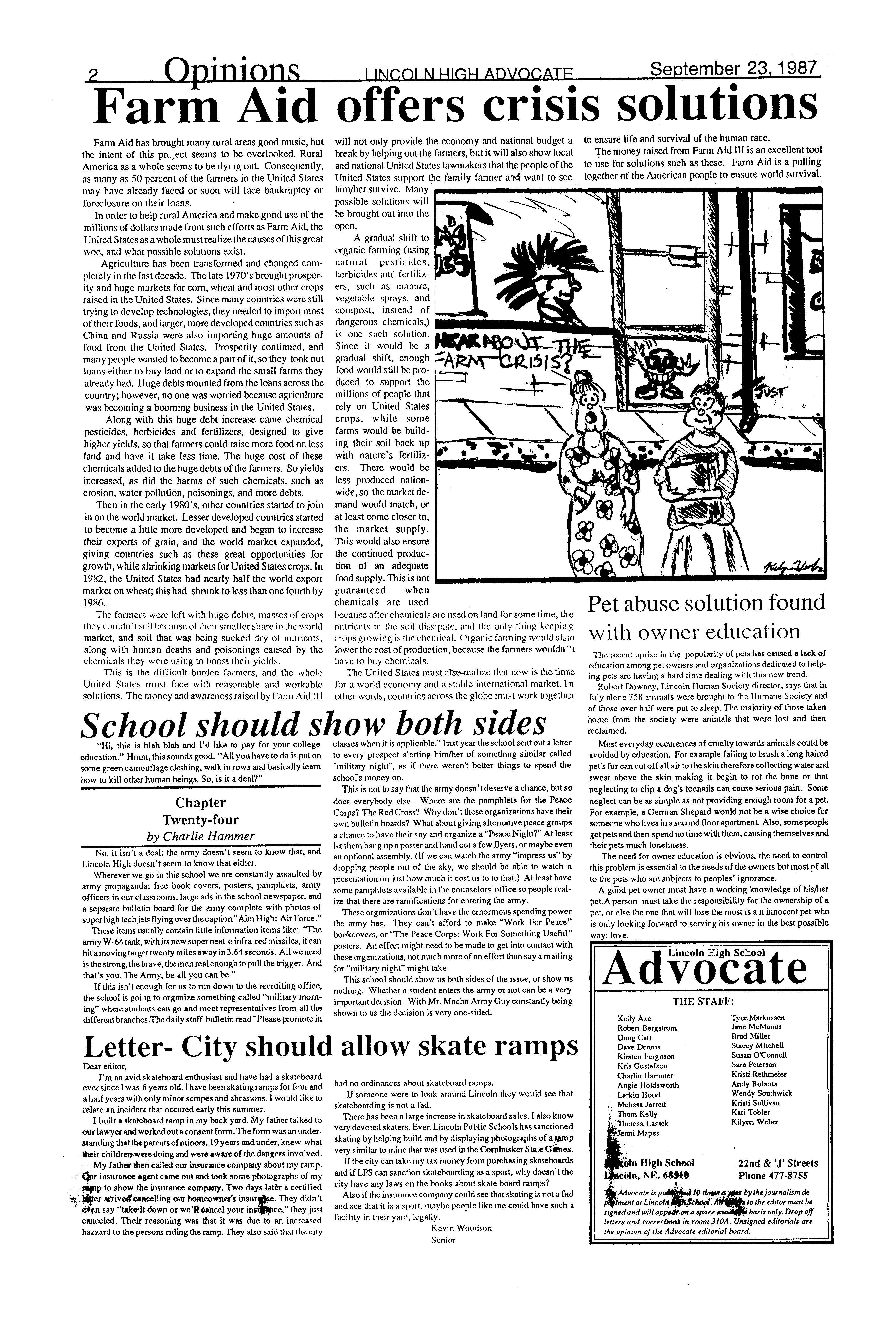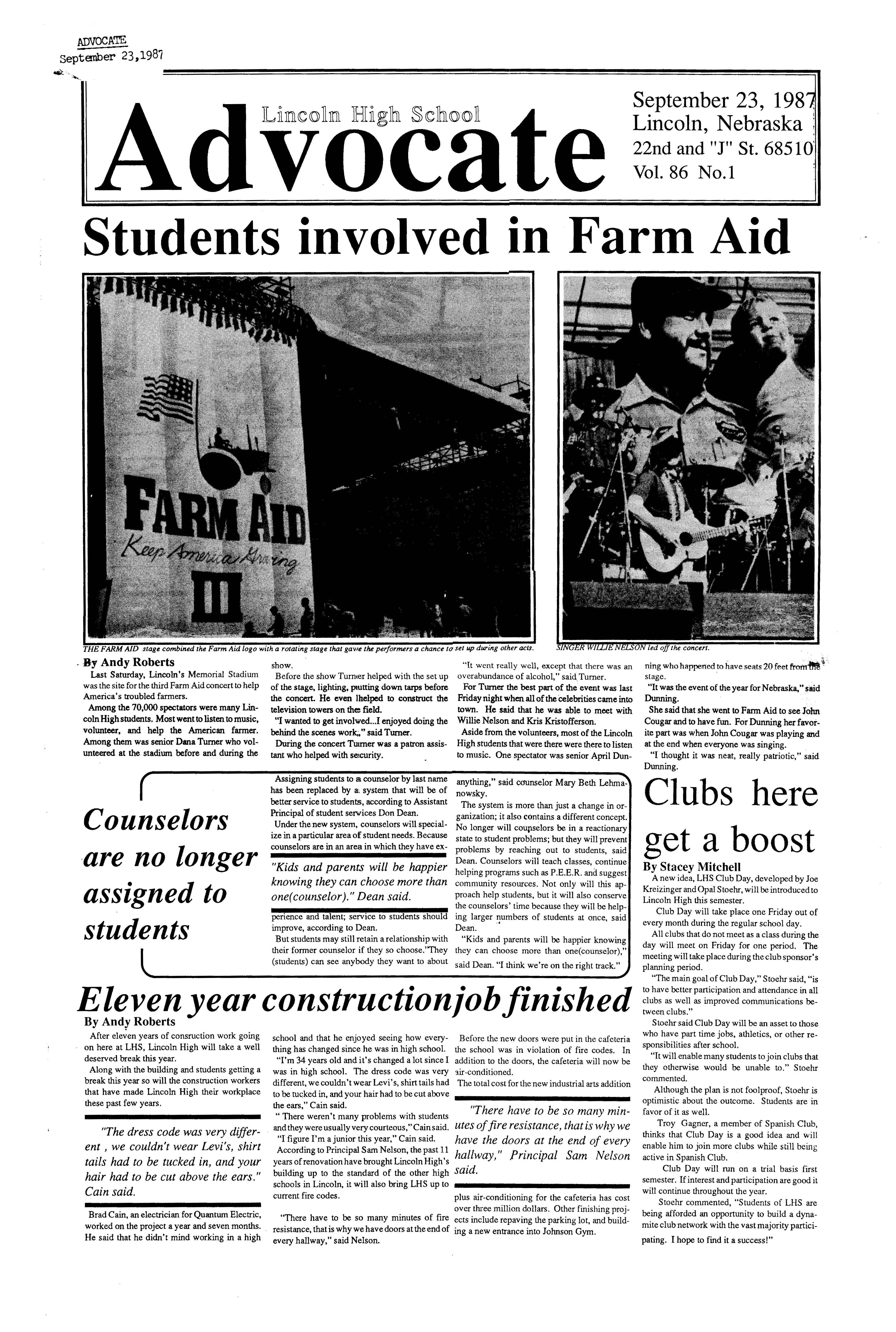 Among the 70,000 spectatorswere many Lincoln Highstudents. Most wentto listen to music, volunteer, and help the American farmer. Among them was senior Dana Turner who volunteered at the stadium before and during the