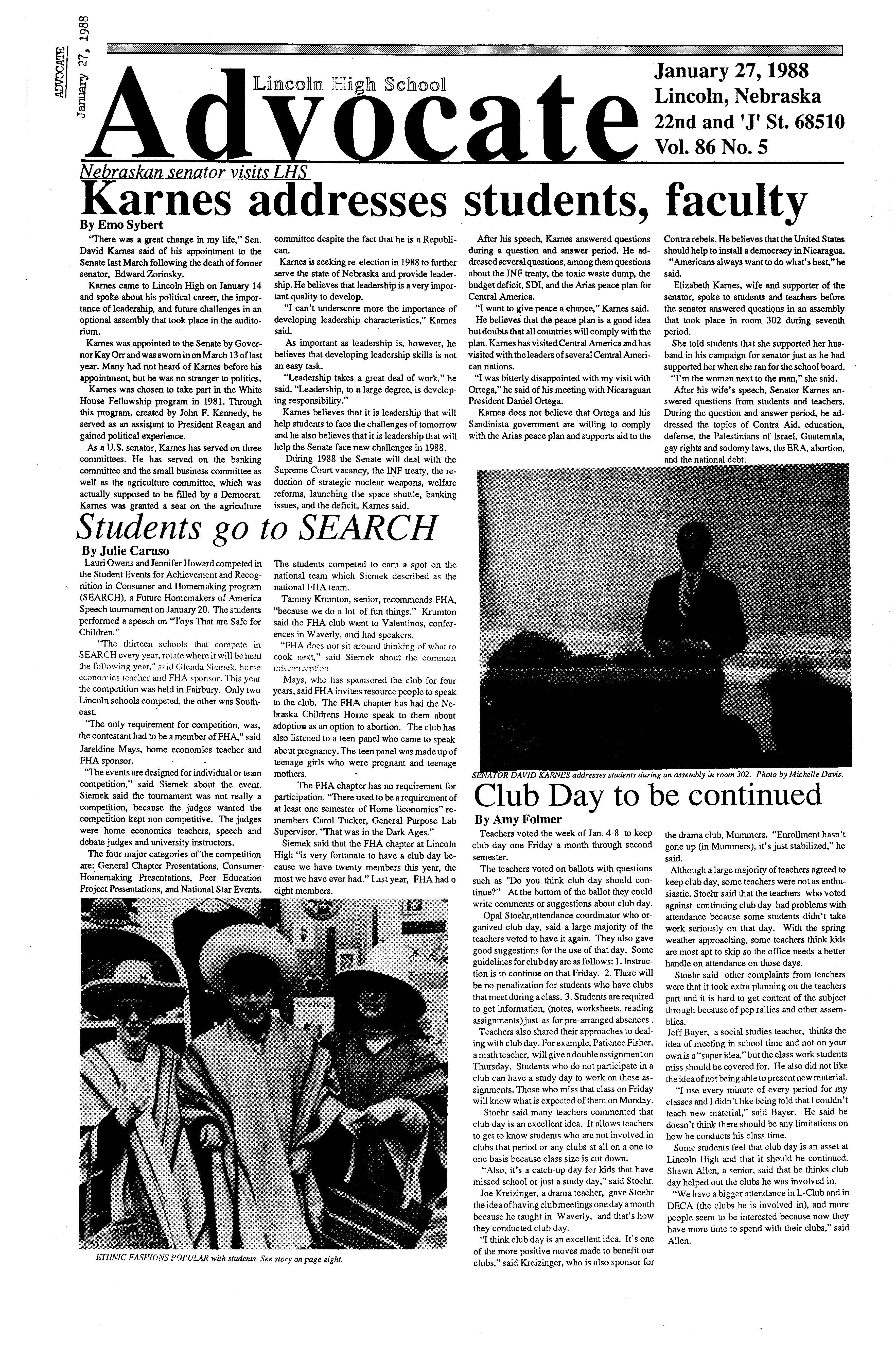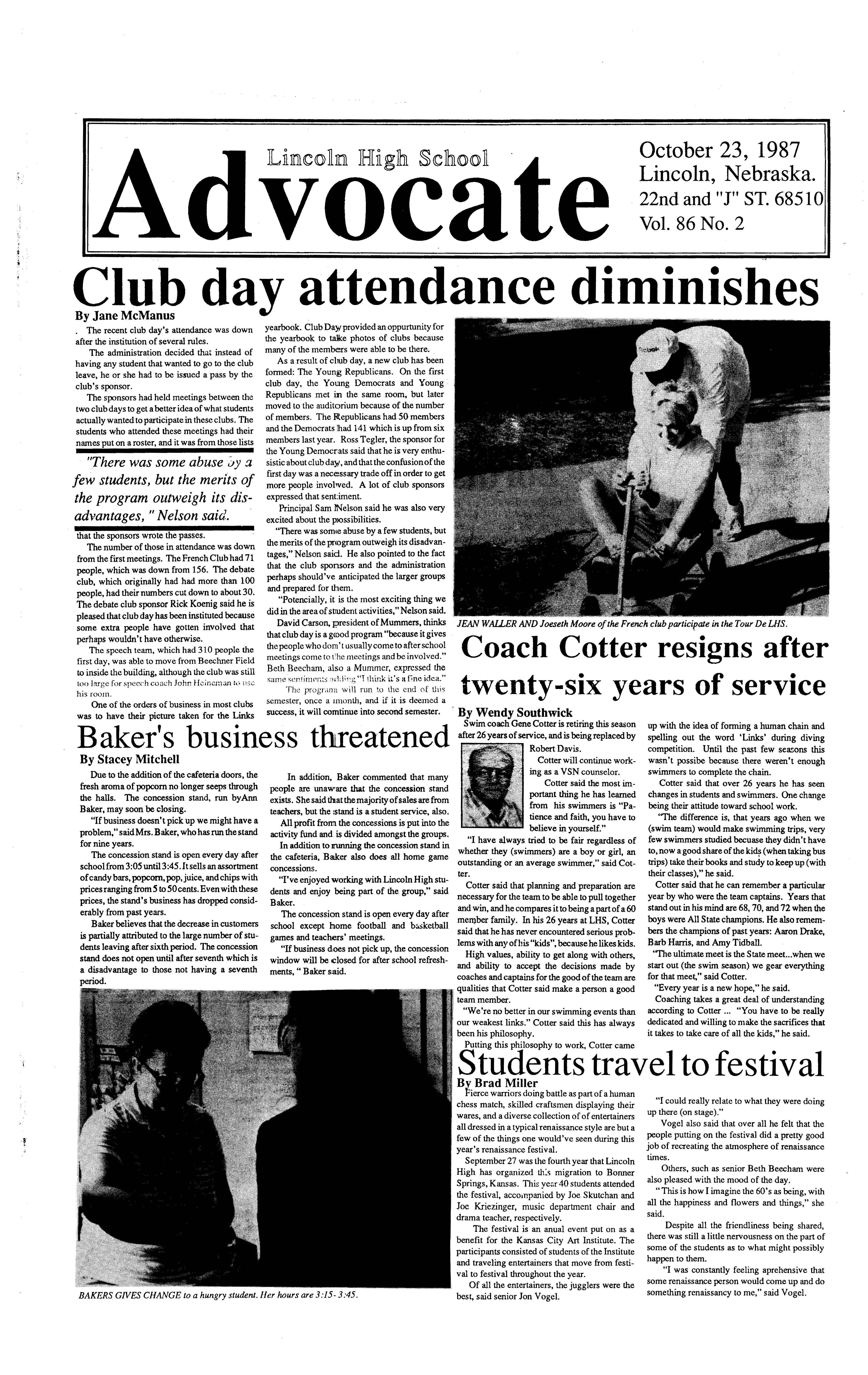 A new idea, LHS Club Day, developed by Joe Kreizinger and Opal Stoehr, will be introduced to Lincoln High this semester.