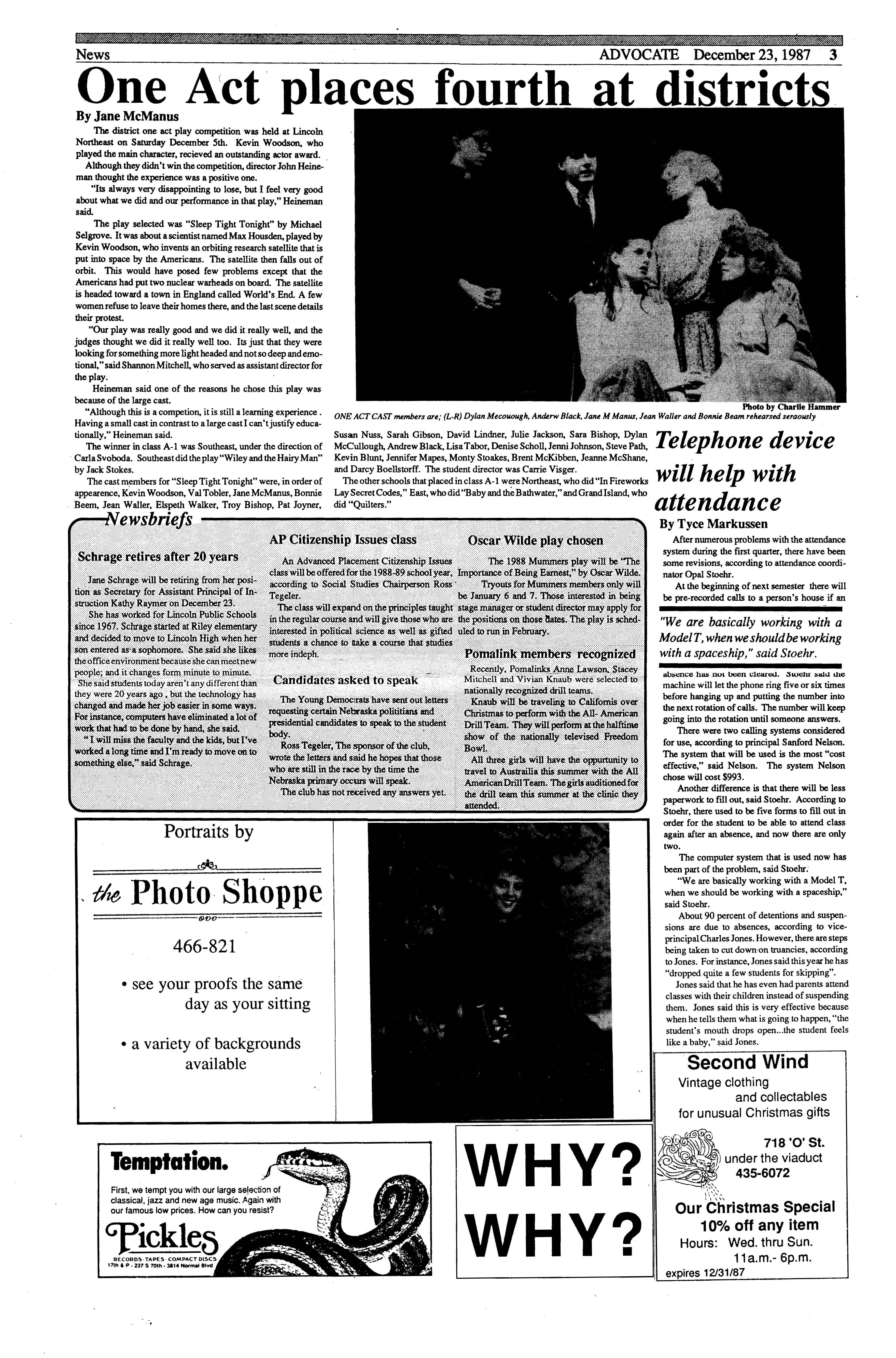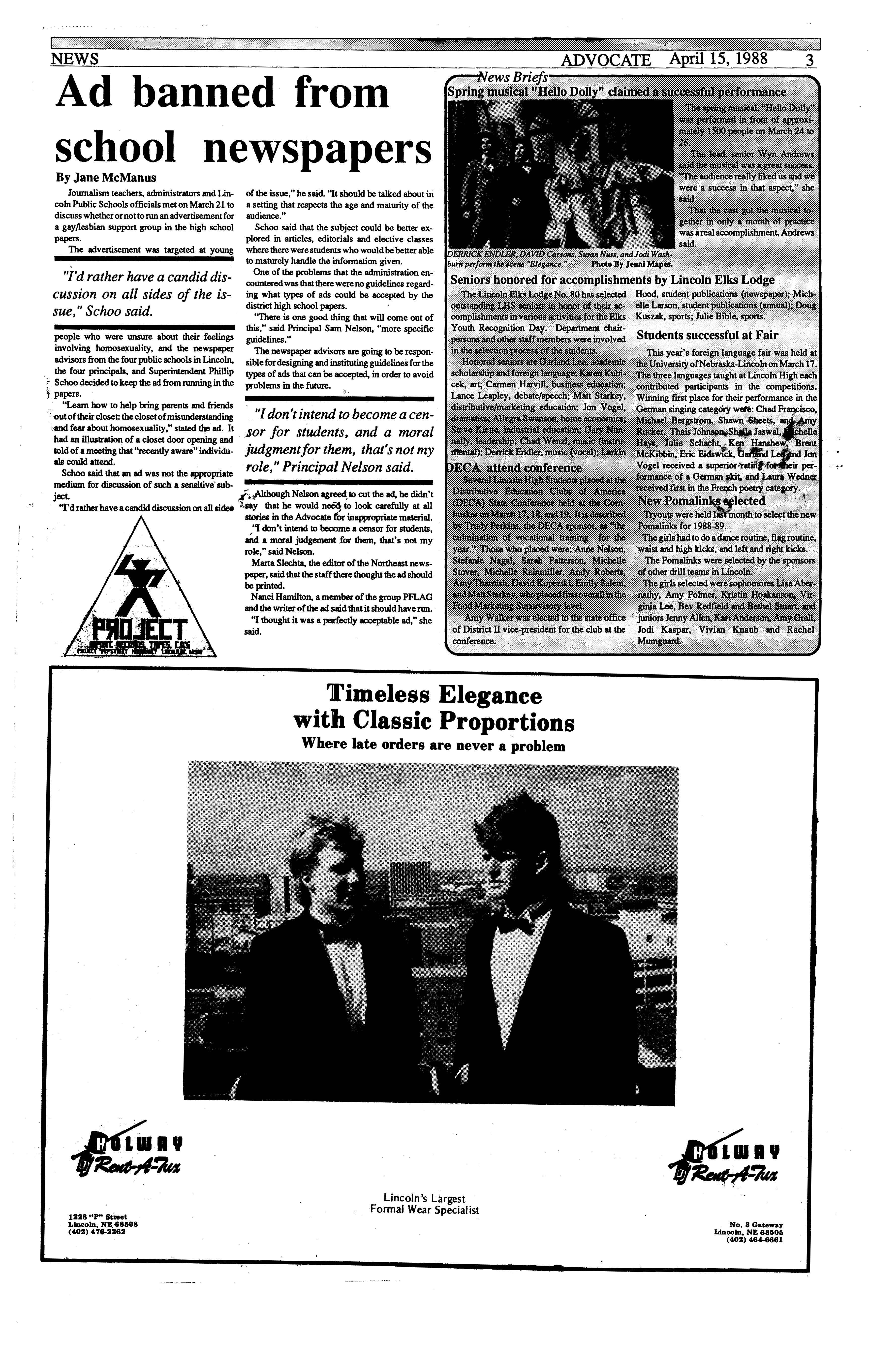 3% of her class in 1964. In 1967 she received her Bachelor of Arts f..Qu :!½leUniversity"of Kan~as and later continued to receive the J.D. (Juris Doctor) from George Washing ton National Law Center in Washington D.C. in 1970. Both de, grees she received with honors. Mrs. Milligan is presently Director of the Nebraska State Depart• ment of Banking and Finance. She also lectures at various continuing legal education seminars. Mrs. Milligan is the author of two books: "Tax Considerations in Condominium Conversions" and "Permissible E:'i~teTax Deductions Under Section 2053." Ray A. Shepard graduated from Lincoln High in 1957. He later received his Bachelor of Sci• ence from UNL and attended Harvard Graduate School of Education. He is currently President of Scribner. Laidlaw Publishing Company in New York City. Scribner• Laidlaw Publishing Com, pany is worth approximately $70 million. The honored alulllittwill be accompined by ~tudent Council members who will reacquaint them with the new additions ofLincolri High and introduce them to many students. The day will conclude with their appearance at the Homecom• mg game