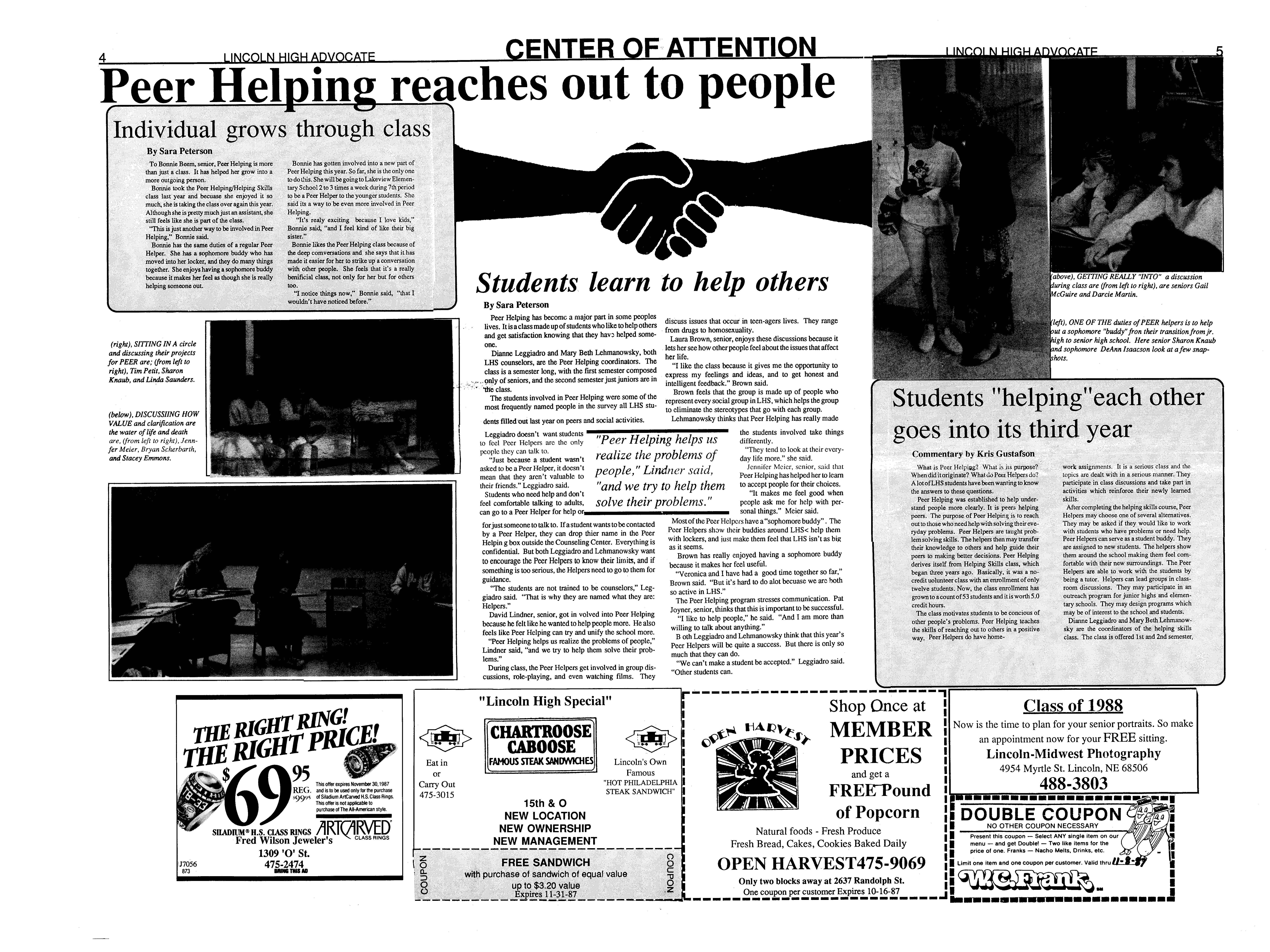 A new aspect to the VSN counseling program is that this year, frrst semester, a Sophomore Resource class was offered as sort of an orientation to Lincoln Hlgh. Each VSN counselor taught two classes a day which gave them all the experience of teaching. It also gave the counselors daily contact with the students without disturbing the students other classes, said Cotter.