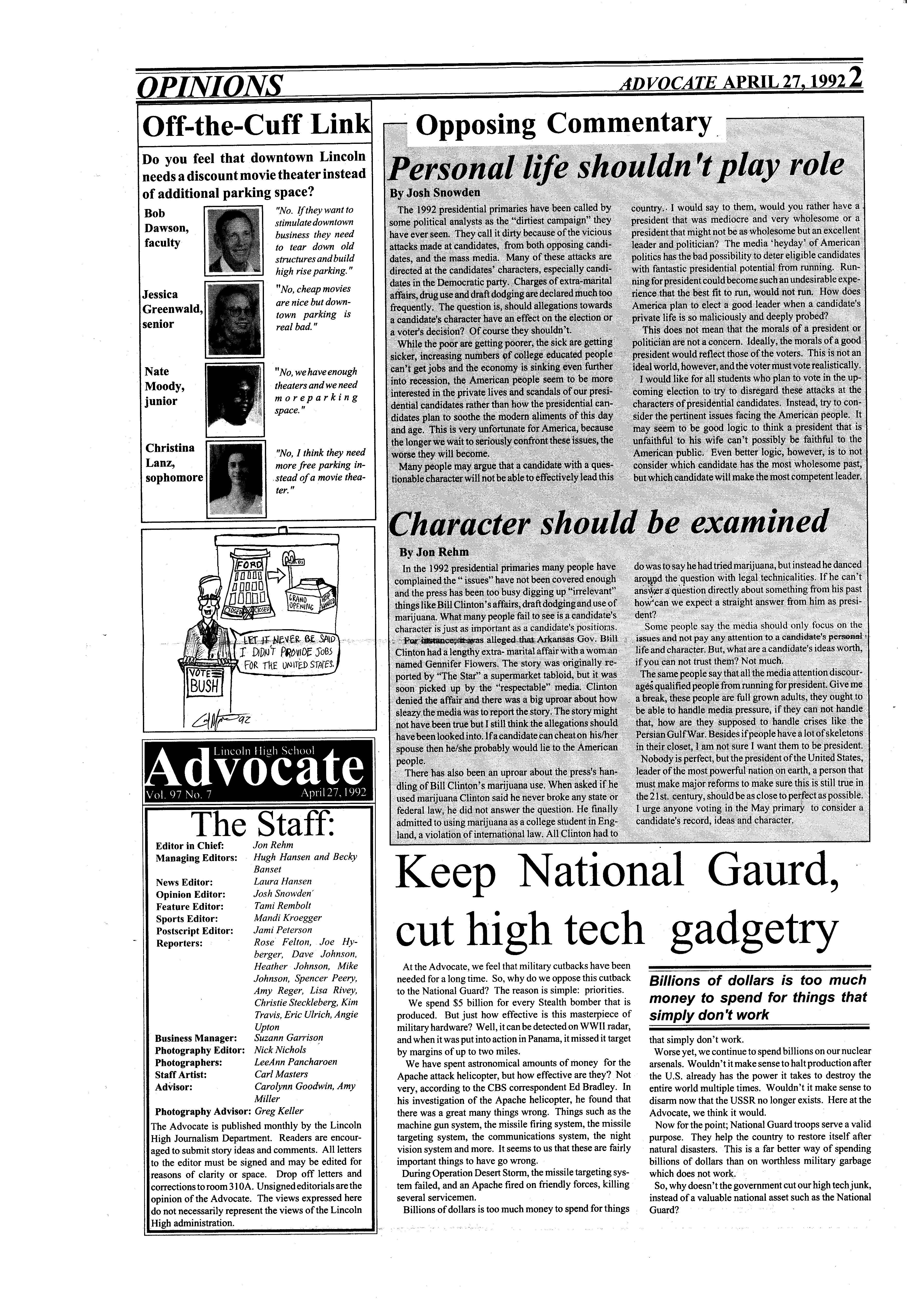the Lincoln High Advocate. The views expressed here do not necessarily reflect those of the Lincoln High administration.
