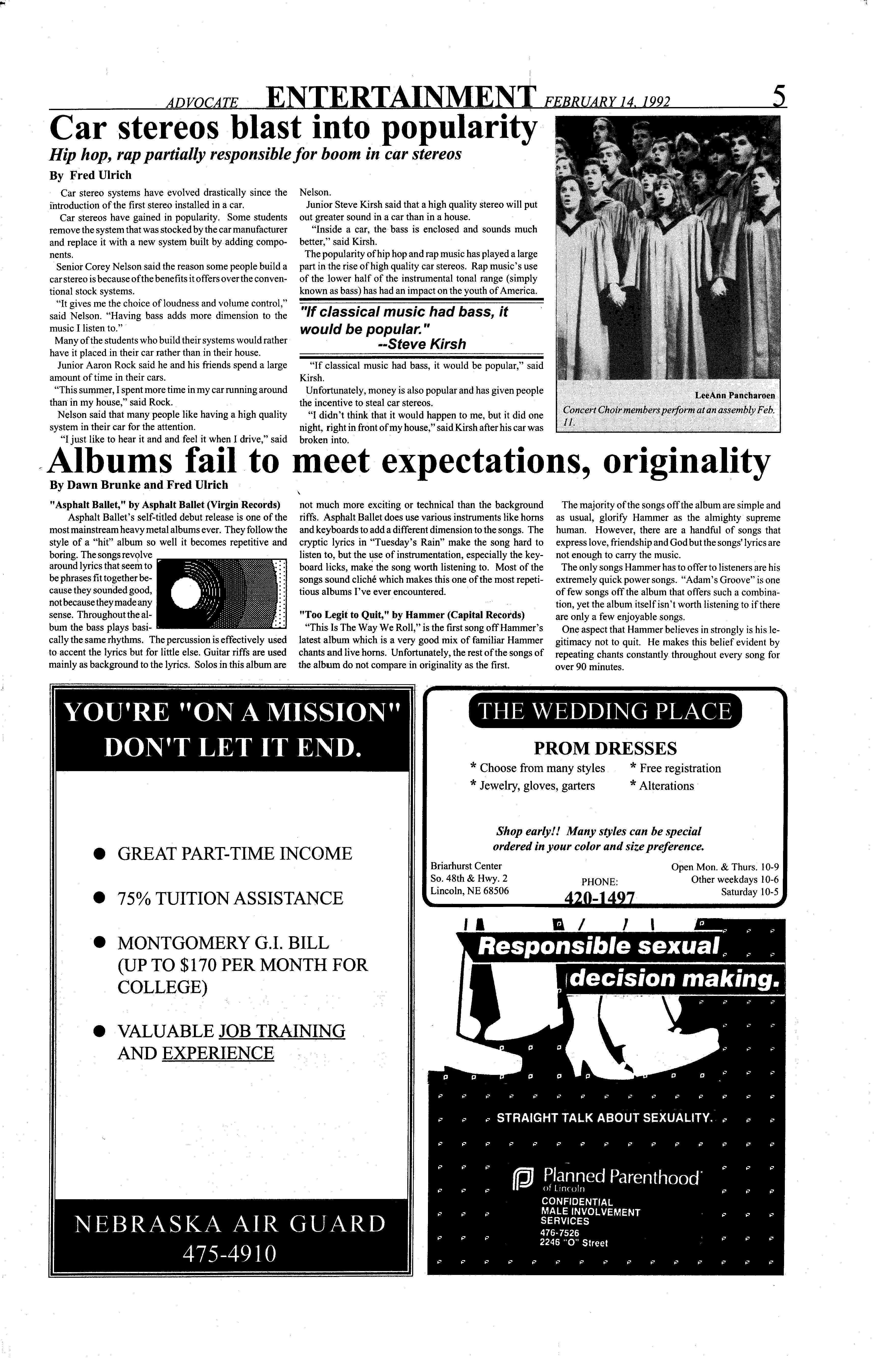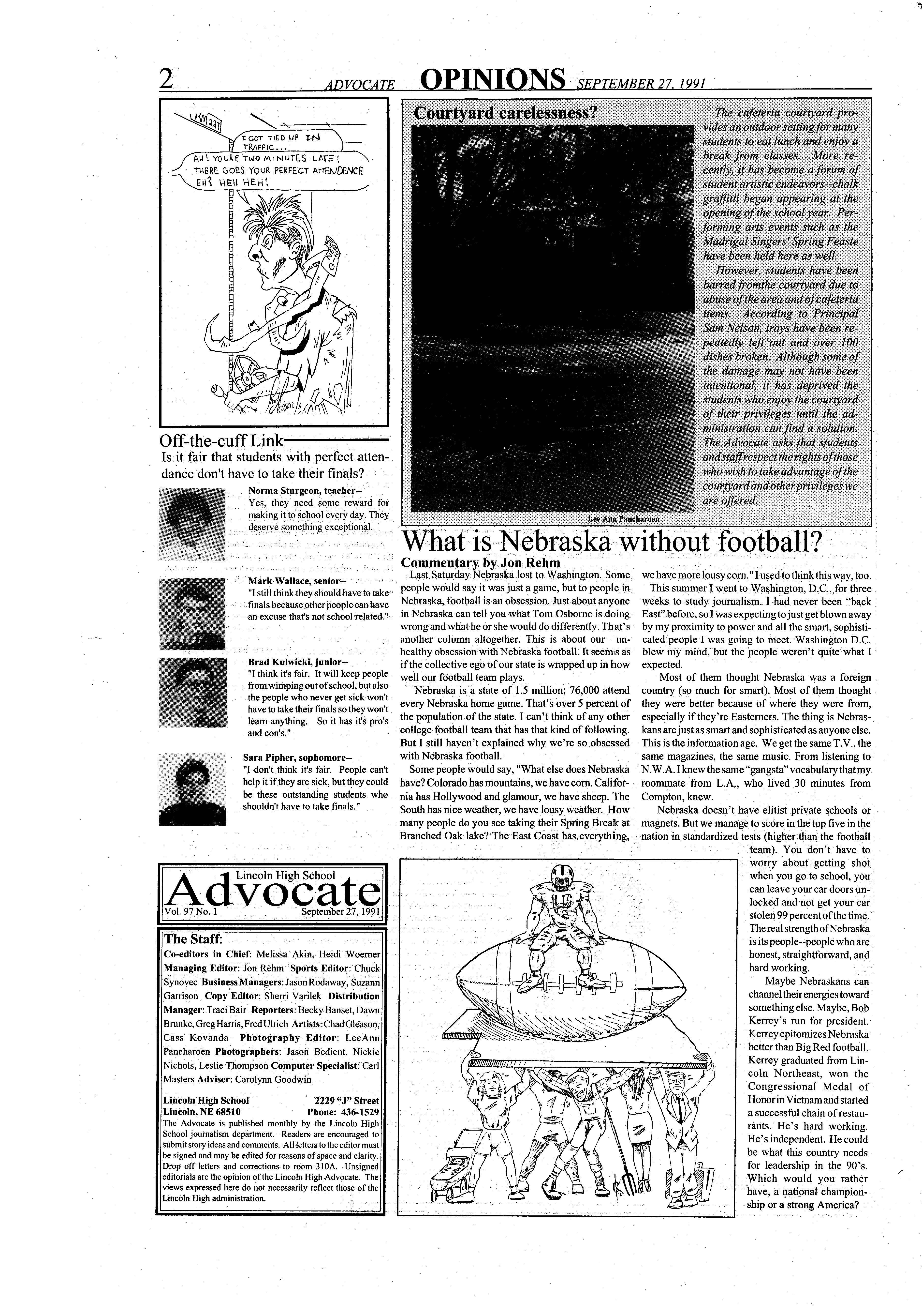 Managing Editor: Jon Rehm ·Sports Editor:· Chuck Synovec Business Managers: JasonRodaway,Suzann· Garrison Copy Editor: Sherri Varilek Distribution Manager: TraciBair Reporters: BeckyBanset,Dawn Brunke,GregHarris,FredUlrich Artists: ChadGleason, Cass Kovanda Photography Editor: LeeAnnPancharoen Photographers: Jason Bedient, Nickie Nichols,Leslie ThompsonComputer Specialist: Carl MastersAdviser: CarolynnGoodwin