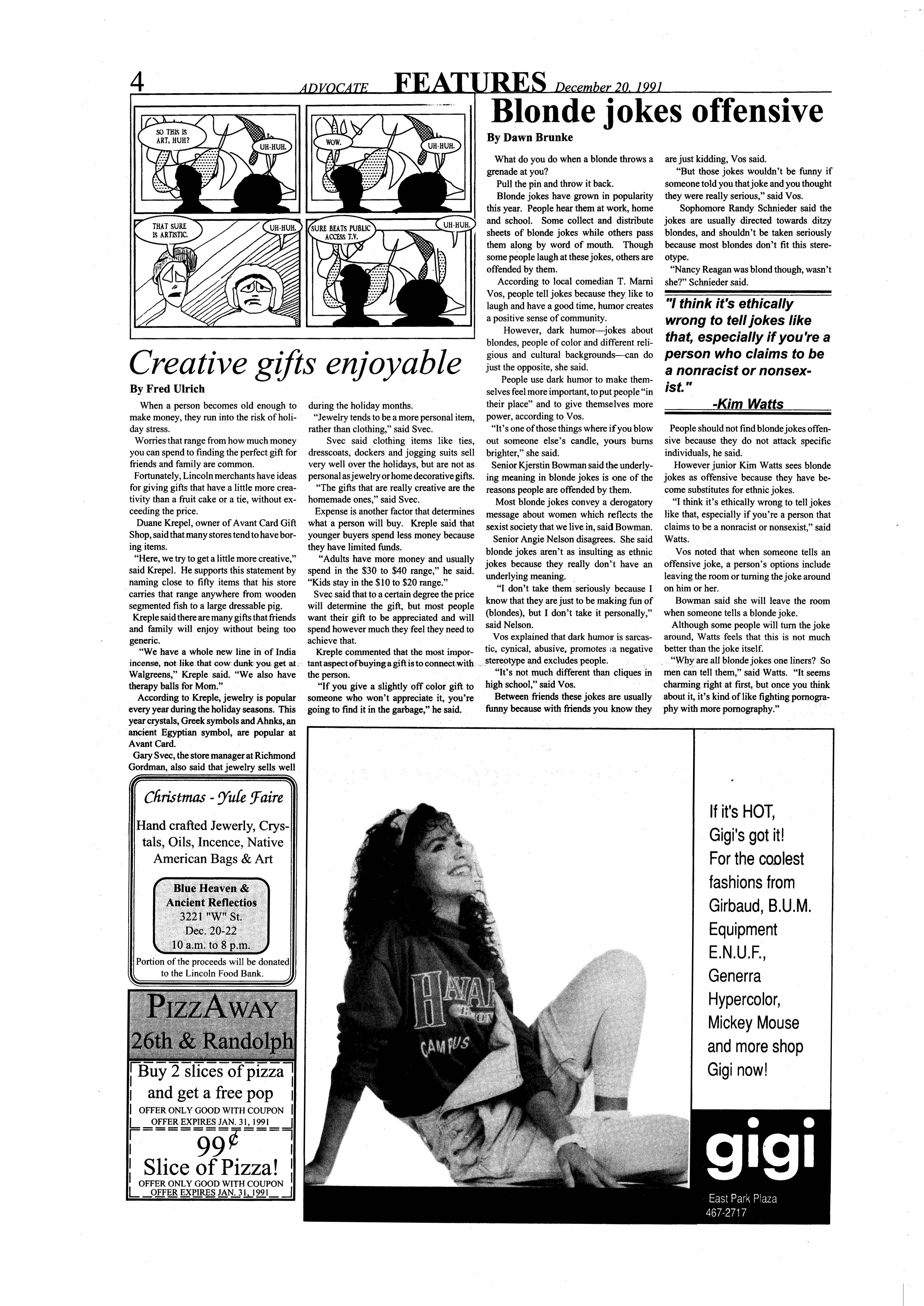 "I stillthinkthey shouldhaveto take, people would say it was just a game, but to peopl,e in This summer I.went to Washington, D.C., for three ..• finalsbecauseotherpeoplecan have Nebraska, football is an obsession. Just about anyone weeks to study journalism. I had never been ''back an excusethat's not schoolrelated.11 in Nebraska can tell you what Tom Osborne is doing• East'' before, so I was expecting to just get blown away