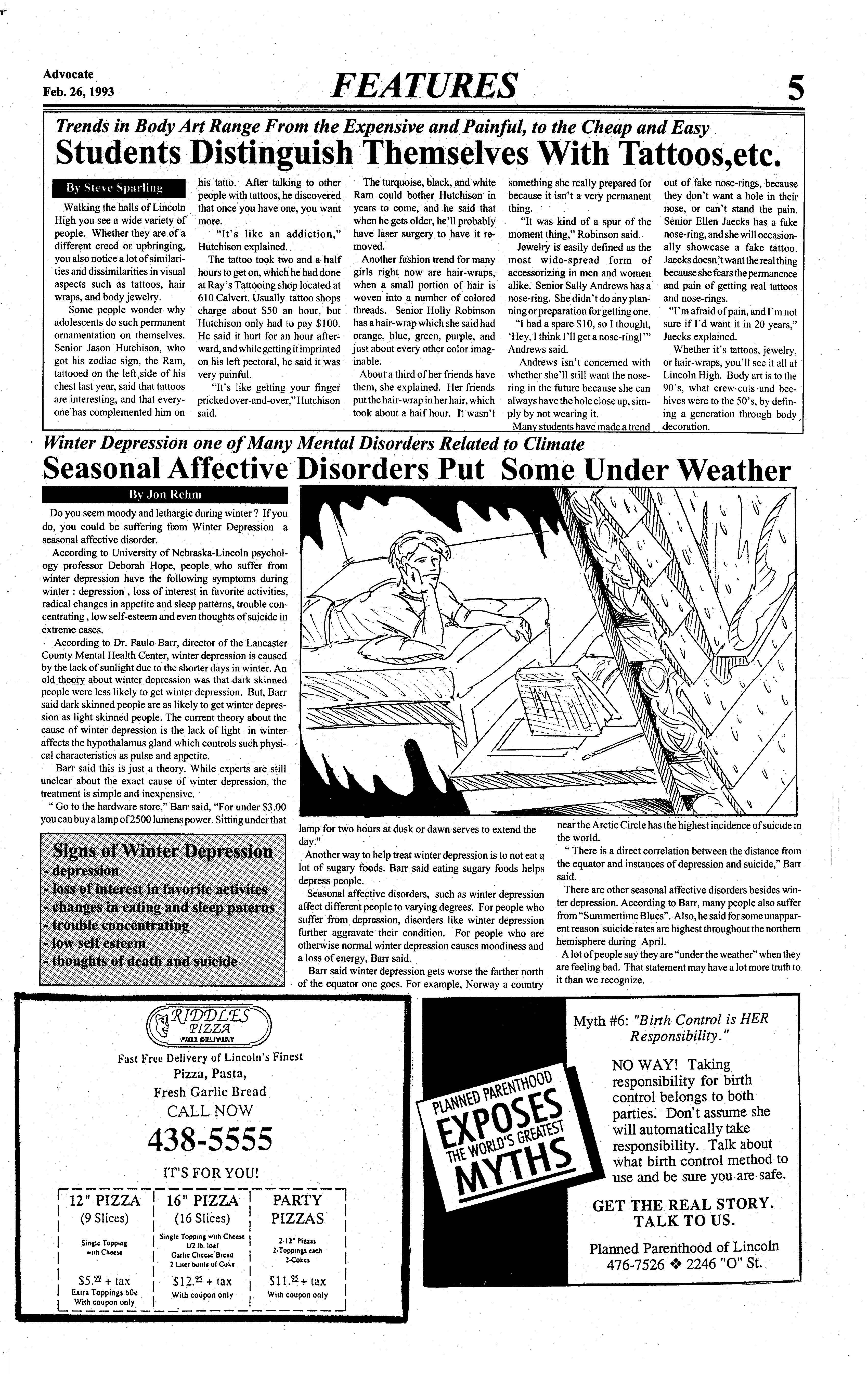 The Advocate is published monthly by the LincolnHigh Schooljournalismdepartment. Readersare encouragedto submitstory ideas andcomments.All lettersto the editormustbe signedand maybe editedfor reasonsof space and clarity. Dropoff lettersand correctionsto room31OA.Unsignededitorialsare the opina ion oftheAdvocate.Theviewsexpressedhere do not neccessarilyrepresentthe viewsof the administration.