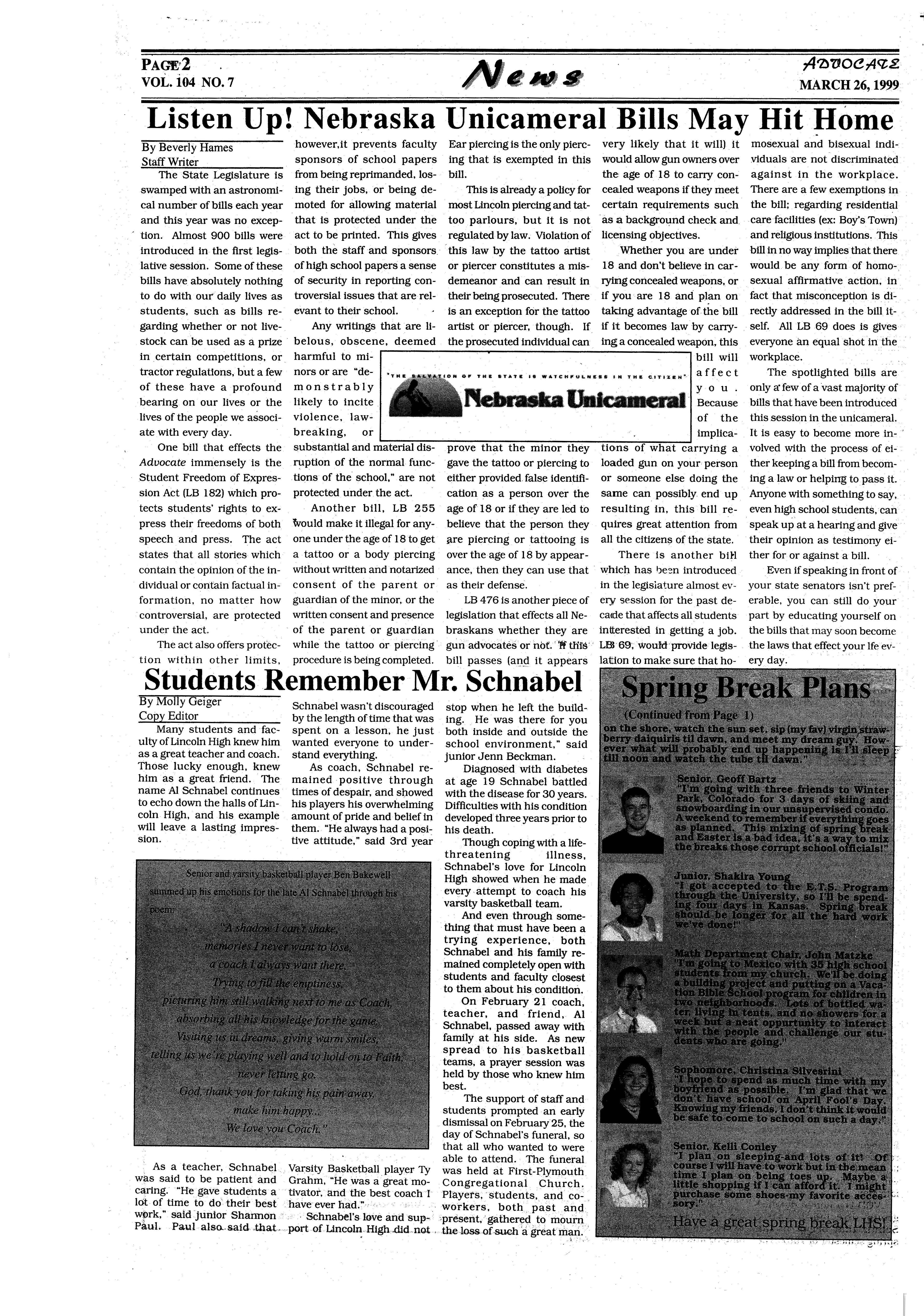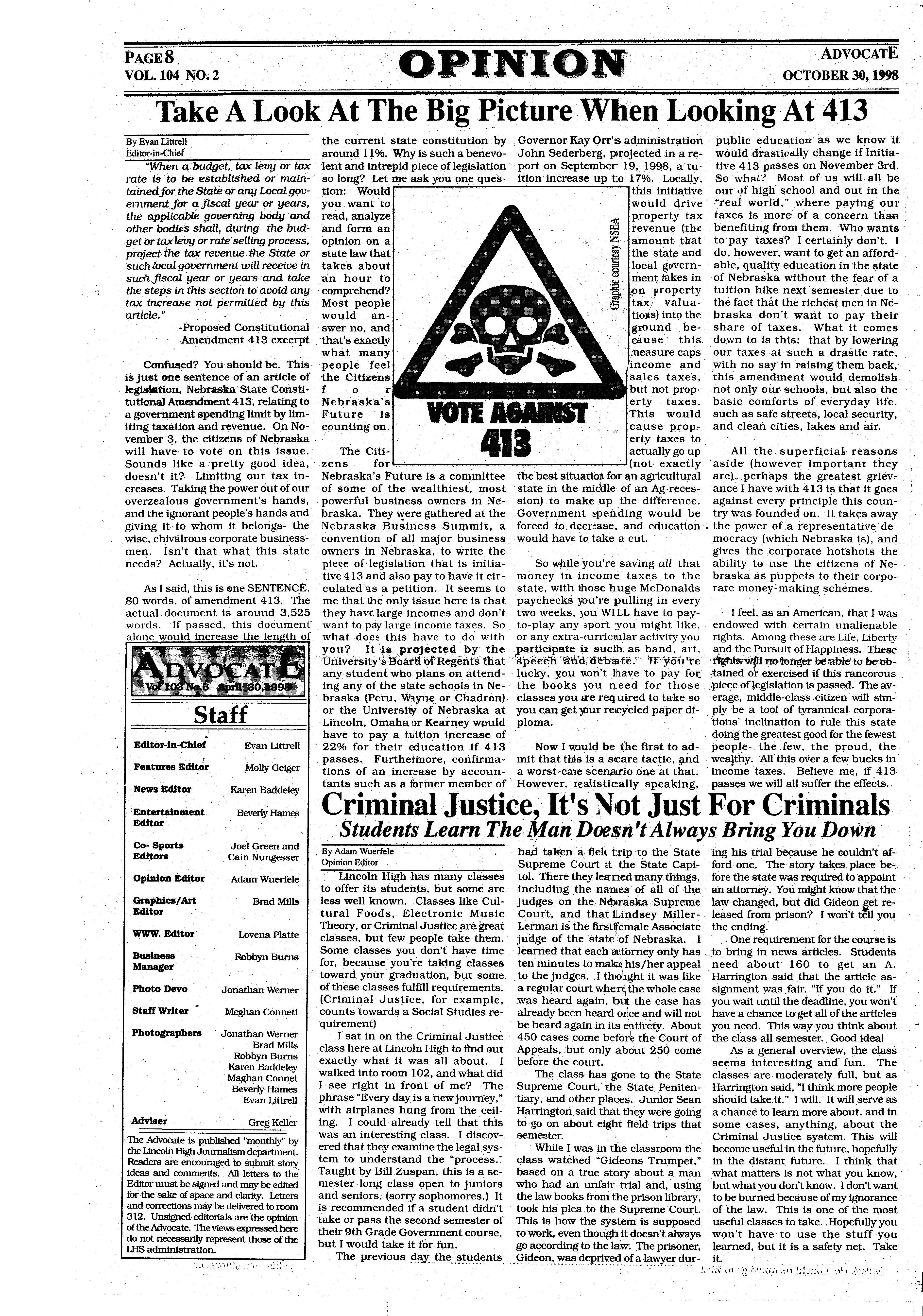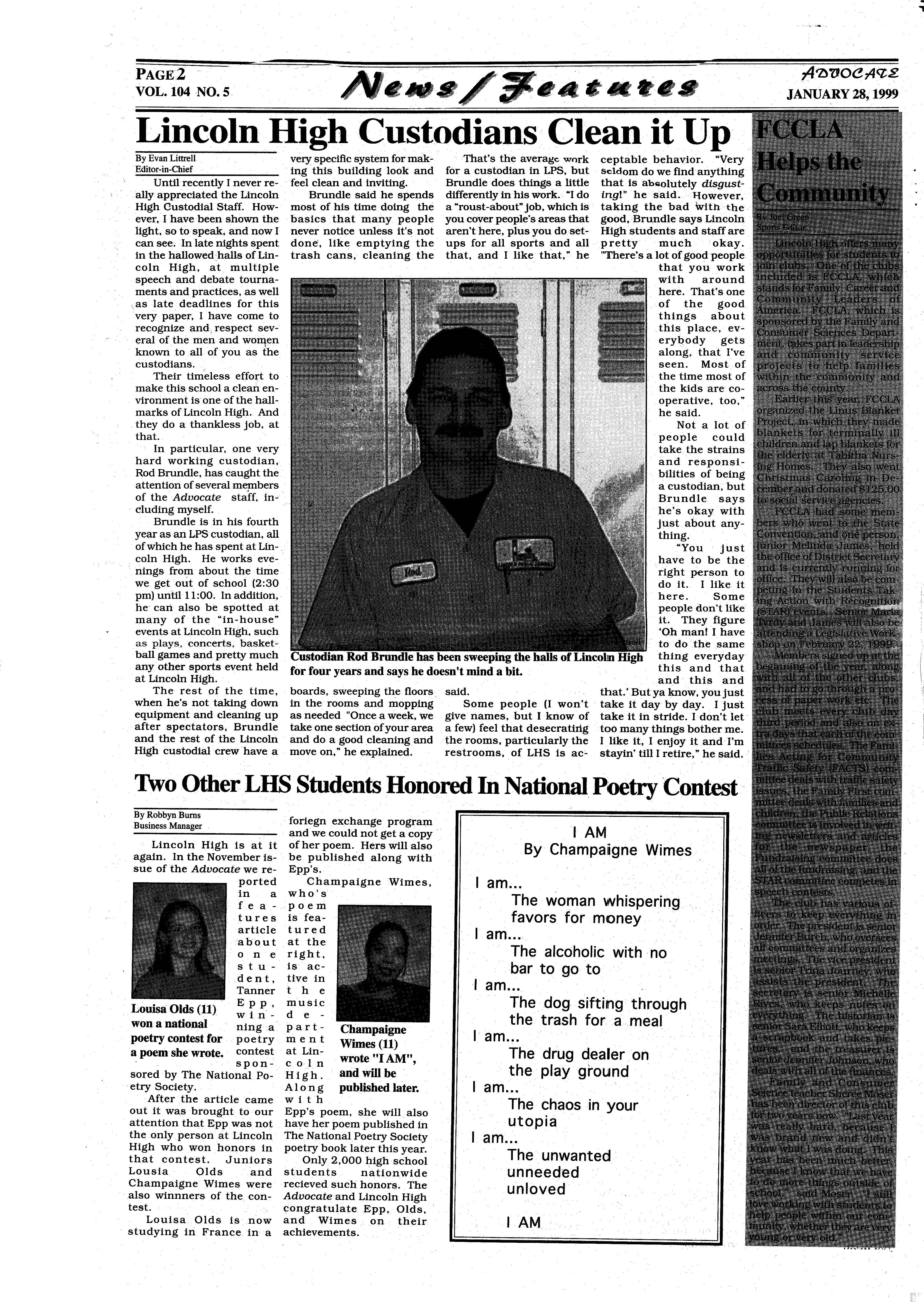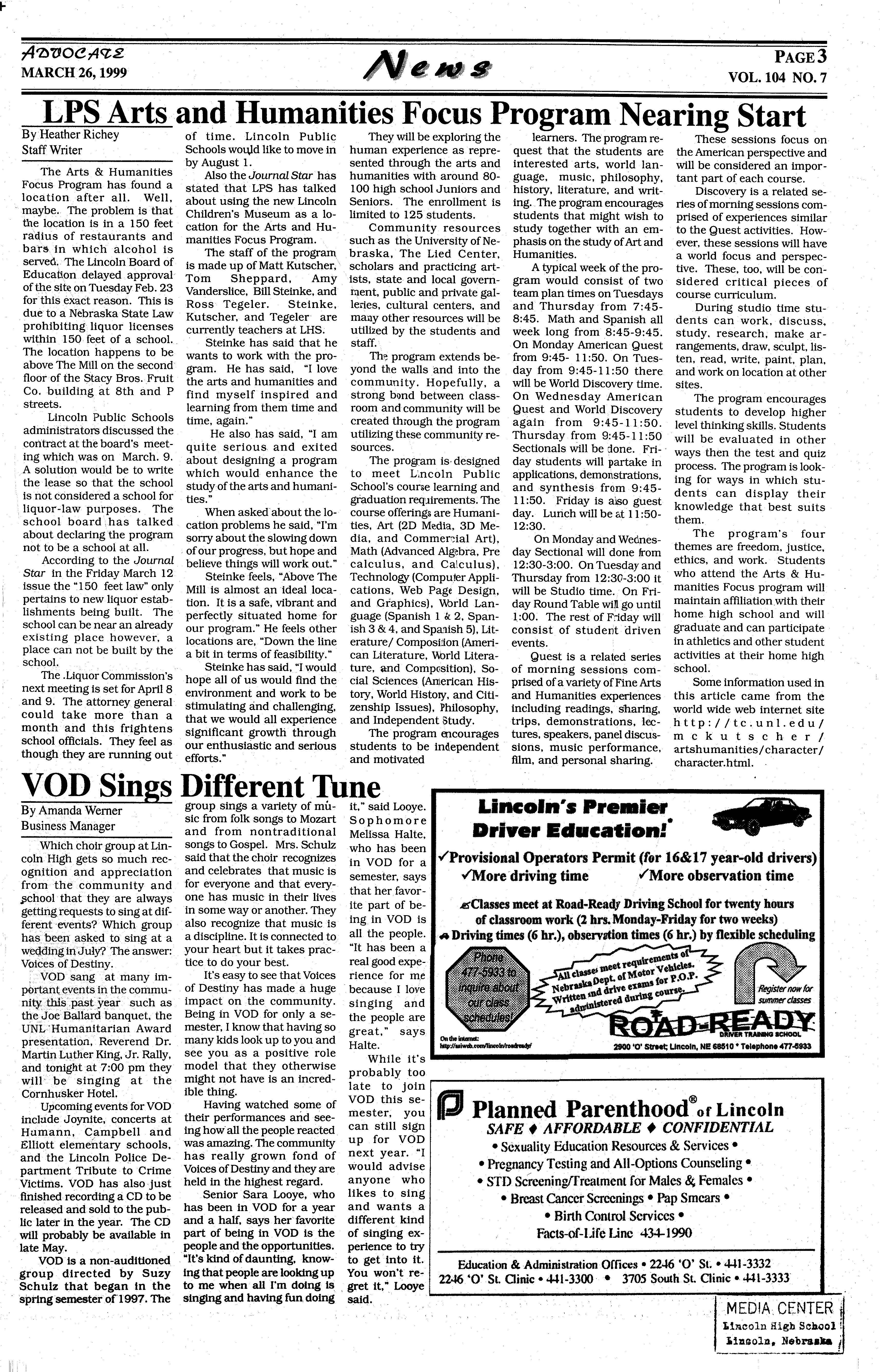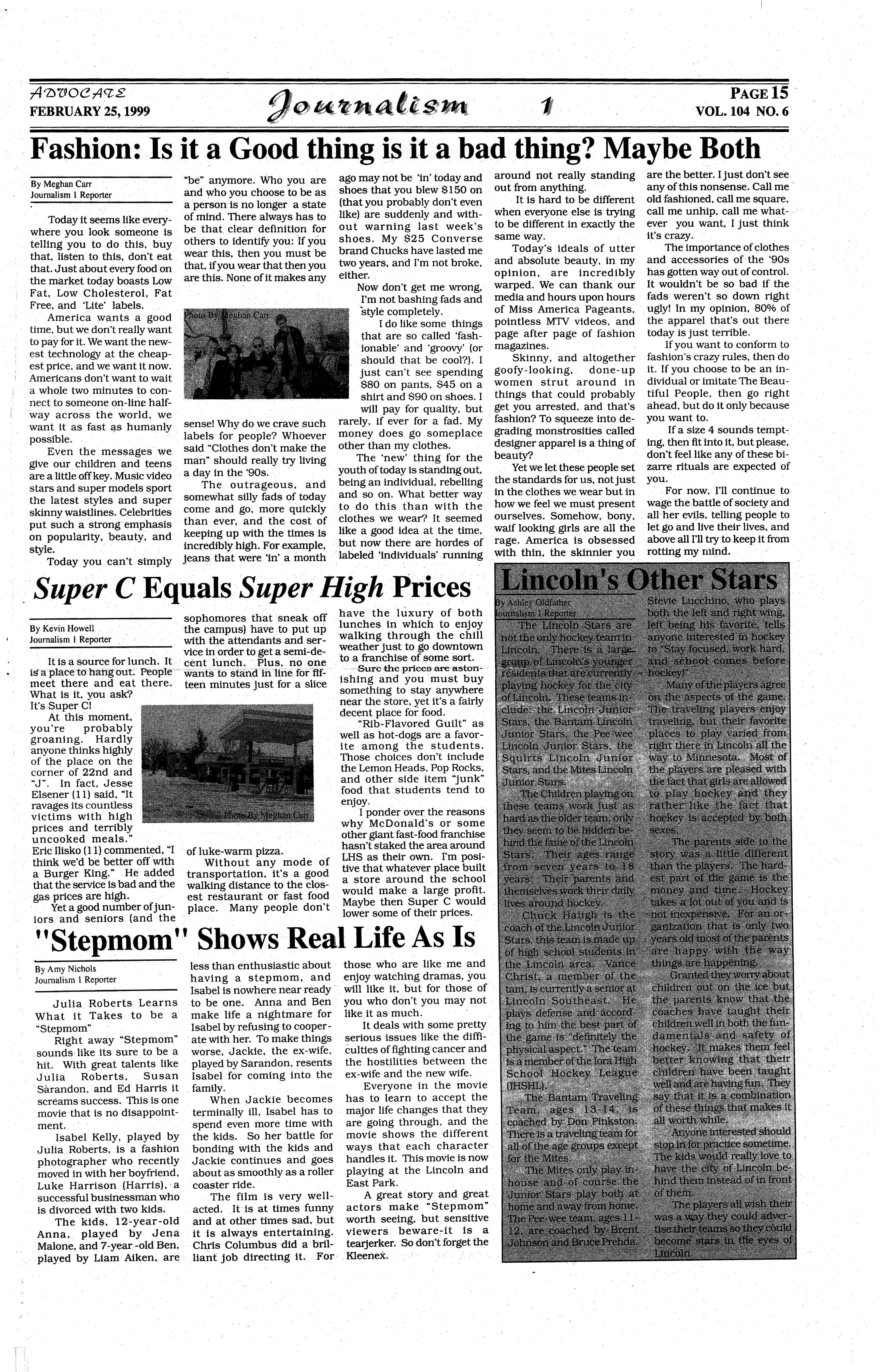 As a member of the military involvement in Lincoln High Paparazzi, I airstrikes against Serbian am to remain objective in president Slobodan every story I write. This ··Milosevichas carriedon for being the last issue of Advo- almosttwo monthsnow,and cate I will ever write in shows no signs of stopping (weep), I feel it is time to anytime soon. This is berelease myself from the cause the war in the former chains of ethical obligation Yugoslaviahas been occurto only report the news. I ring for the last thousand am going to do something years, and will continue for that almost every teacher the next thousand years andstudentinLHSandhigh whether the U.S. gets inschools abroad fears I am ·volved or not. A prediction going to think for myself for the future? US involveand write about it! Okay,so ment in this conflictwill end · all I'm really going to do is up like Vietnam; the U.S. criticizecertainnews stories will lose, and nobody will over the last year and maybe gain. But hey, at least we even how they've been re- shot up Milosevic's palace! ported,butlcancallitthink-
