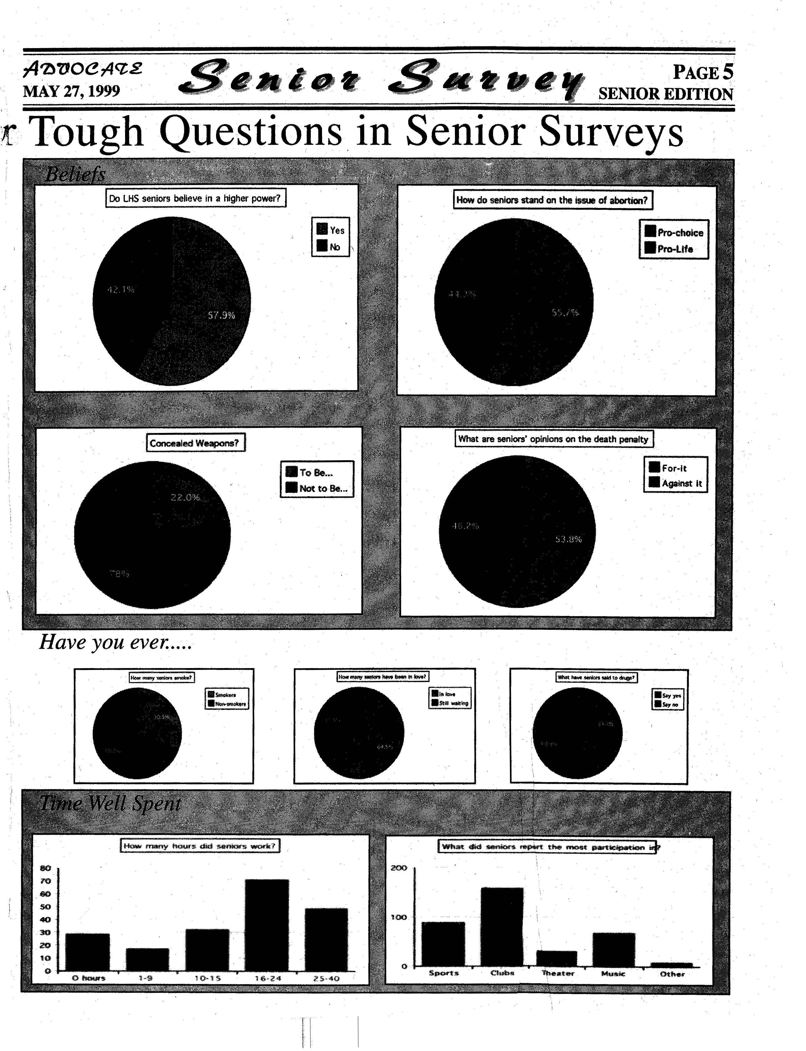 several issues. We handed out surveys to fourth period teachers to give to the seniors in their class. Approximately 250 surveys were tallied to put together these graphs. Thank you to everyone who participated!