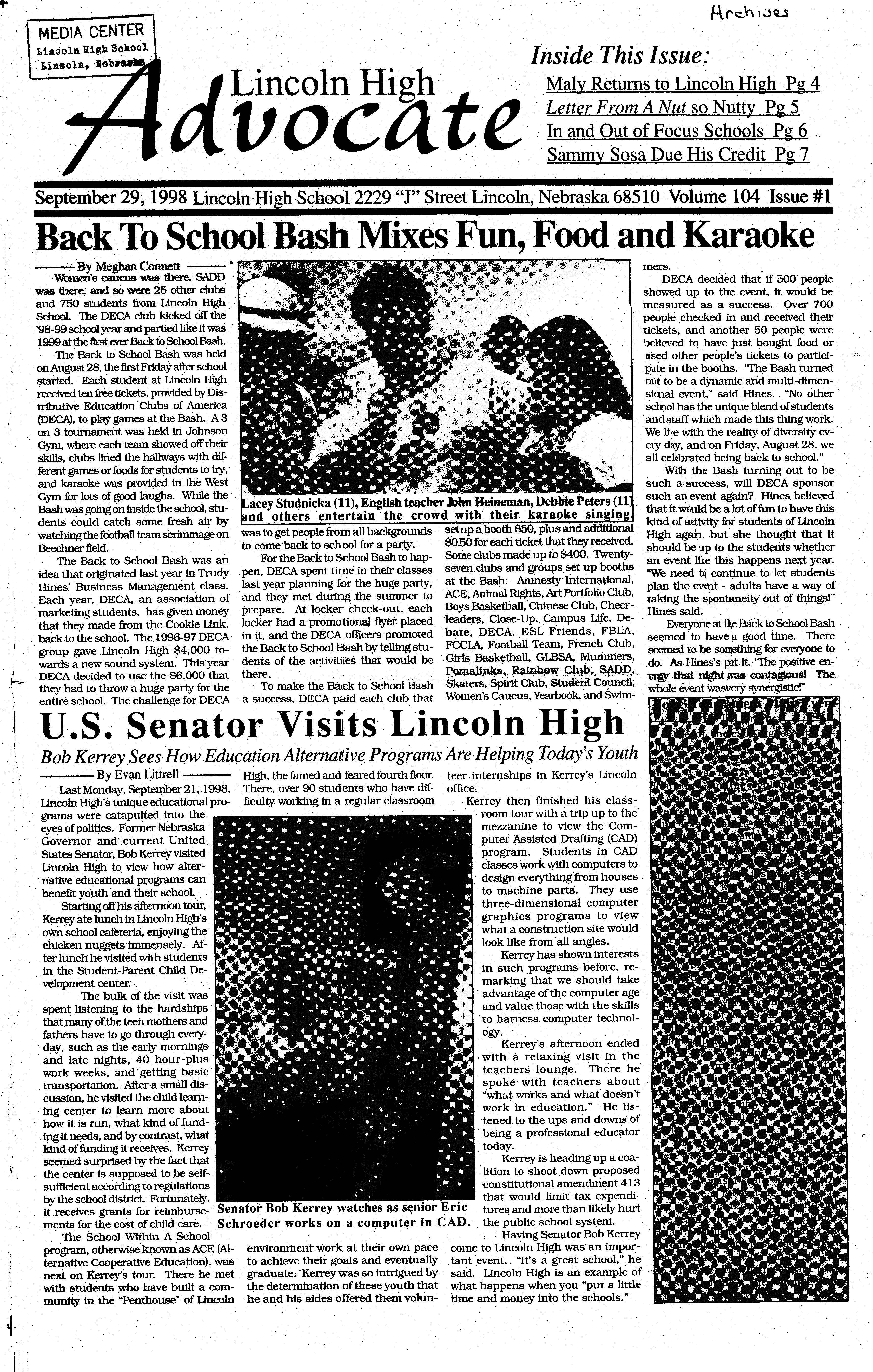 was the.re. and so wae 25 other clubs and 750 students from •Imcoln High .· School. The DECA club kicked off the · '98-99 school year and partied lire it was ·· 1999 at the first everBack to School Bash.