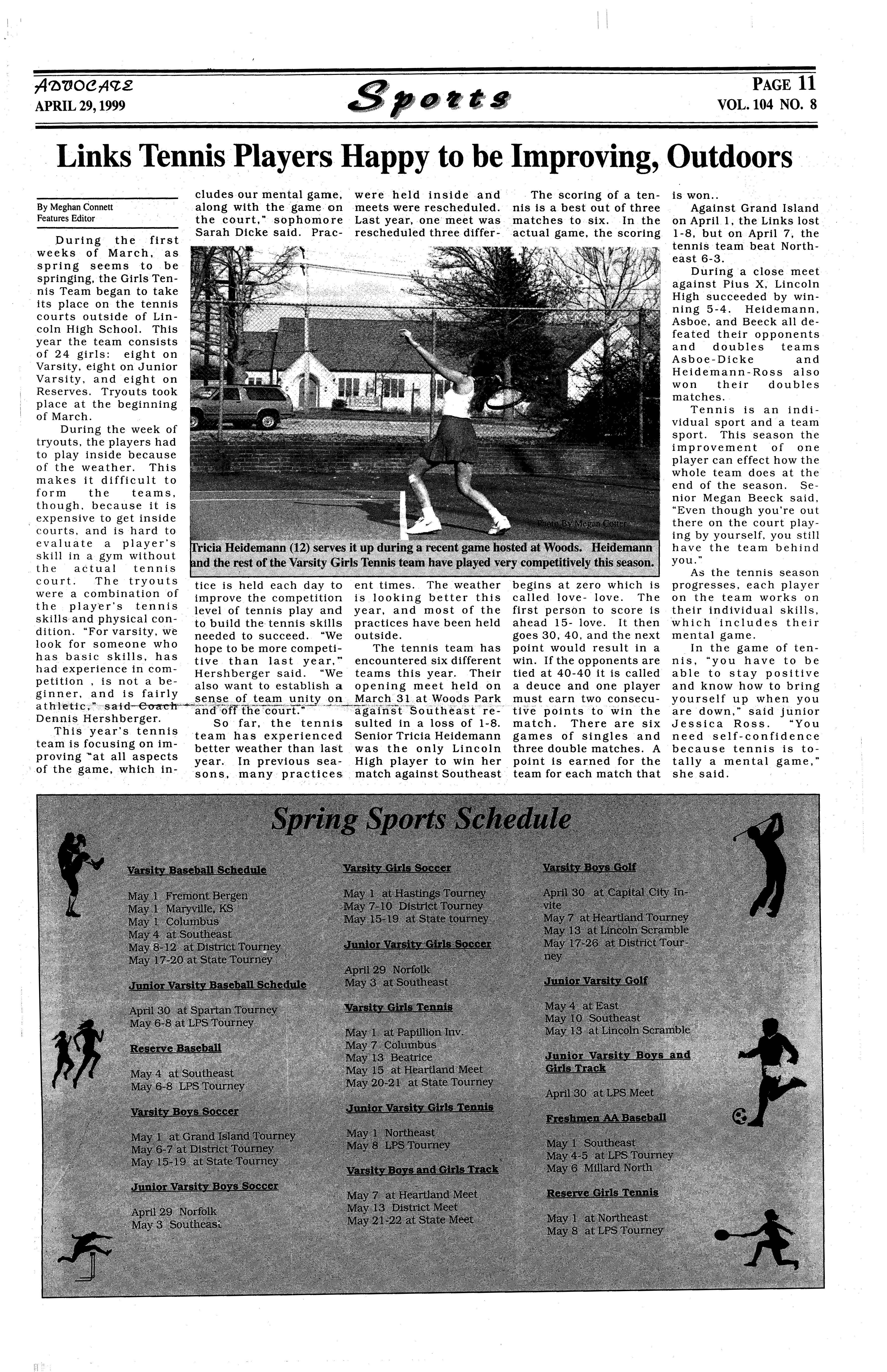 "Individually we may be playing a little soft, but as a team. we are a couple strokes better than last year," said junior Chad Brown. 'We could win Districts if we all play to our capabilities." Lincoln High finnished in second place by one stroke, 320-319, at the A-2 Dis.trict tournament at Benson