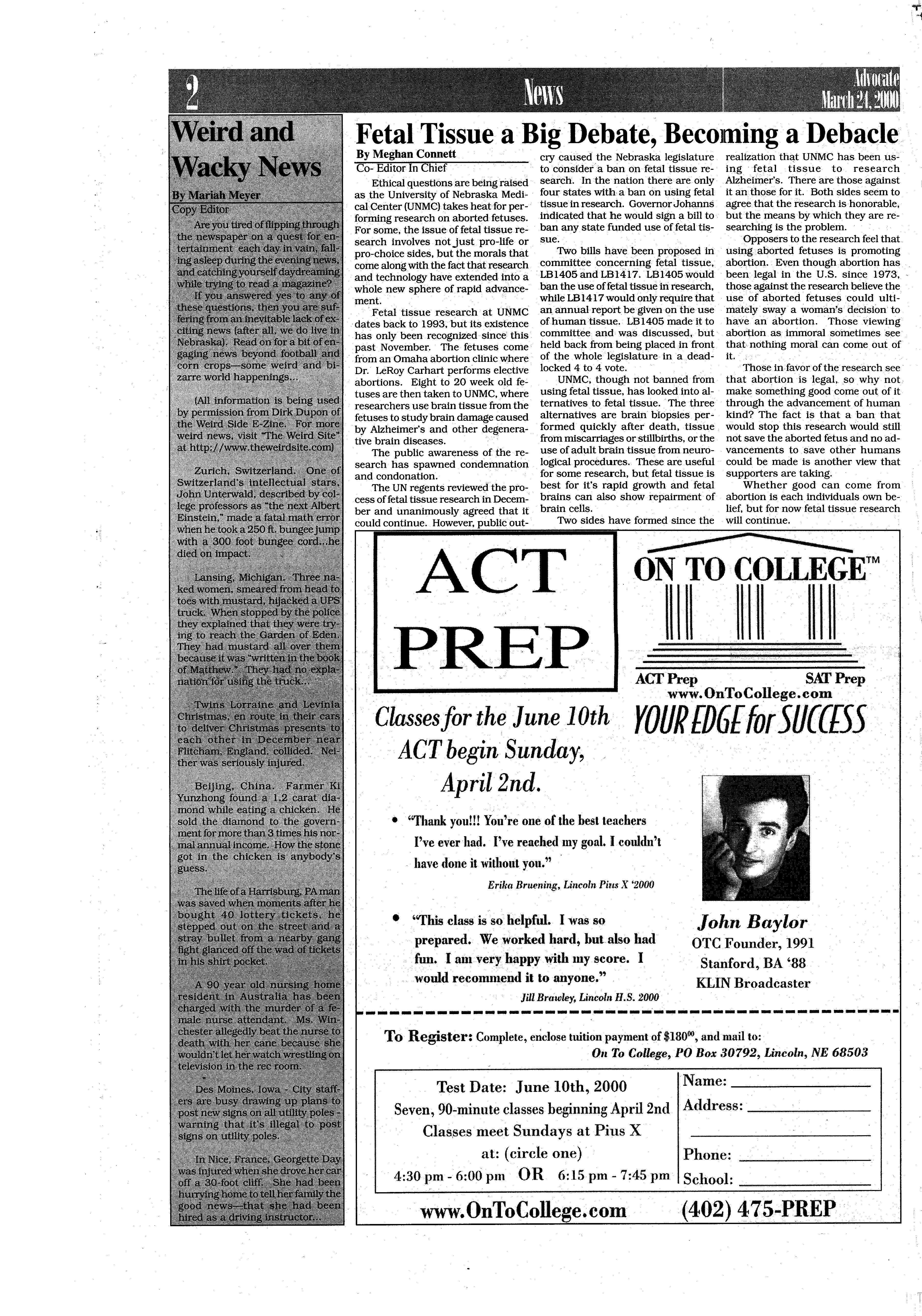Four different walks wei::e over 50 volun- waytofightbackagainstadis~ ·-. · scheduled throughout Ne- teers who gave ease that had touched them · braska in Lincoln; Omaha, their time to thr<:>ughlosing someone close Kearney, and Norfolk to help help make the to them. Ma'ny, though, • raise funds ·for the Nebraska · wards it. We walk a success. wantedto show that AIDS afAIDS Project (NAP). NAPis an need to have Emily Barris, a fects all of us. ' "Just because organization that provides sev- • a renewed in- junior at Lin- .·you don't have ·someone in eral services for those in the terest." coin High, vol- yourlifewho has AIDS, doesn't · community with HIV/AIDS Oneofthe unteeredatthe ._mean that it doesn't affect · and also works to prevent HN most impor- ·AIDS walk. you," said forrner Lincoln High through awareness and edu- tant go~ls of The Lincoln High School Advocate staff joined others to ·"AIDS is · a student Vicki Fuller. · · ·cation. Anonymous HN test~ the walk is to help raise awareness du_ring the Nebraska AIDS walk · ··•.cause that I am ·Through a.warer;iess _ arid ing and counseling are avail- p r o v i d e involved in and projects like the AIDS>Walk, able through the NAP, along '· · awareness to the community. HN/AIDS in the community · I want to help rid the world of AIDS has become a disease with individual counseling, Since June 1998, 395 Nebras- and by walking people can see the disease," she said. that is still scary, yet together emergency firianclal ·assis- kans have contracted HIV, · you walking and that starts- The ·day began early with a cure can be found. · Educatance, and a pastoral service. · while 58 people actually have people talking about HN / AIDS registration from 9-11 a.m. tlon and awareness will be the The AIDS walk is · one of the · full-blown AIDS. To date, 544 · and what it is. And that gives The whole atmosphere was not key to stopping the disease and · ways that the NAPraises funds people in Nebraska have died us an opportunity to say what one of sadness, but of one re- it will take each and every for these servi~es. · 'There is ·from the disease. The goal of ··AIDS ·is and what it isn't and flection, joy, and fun. Many of ··person's contribution to stop~ still much more money that the walk was to provide Ne- how it is transmitted. It raises those who walked had been ping it's spread.