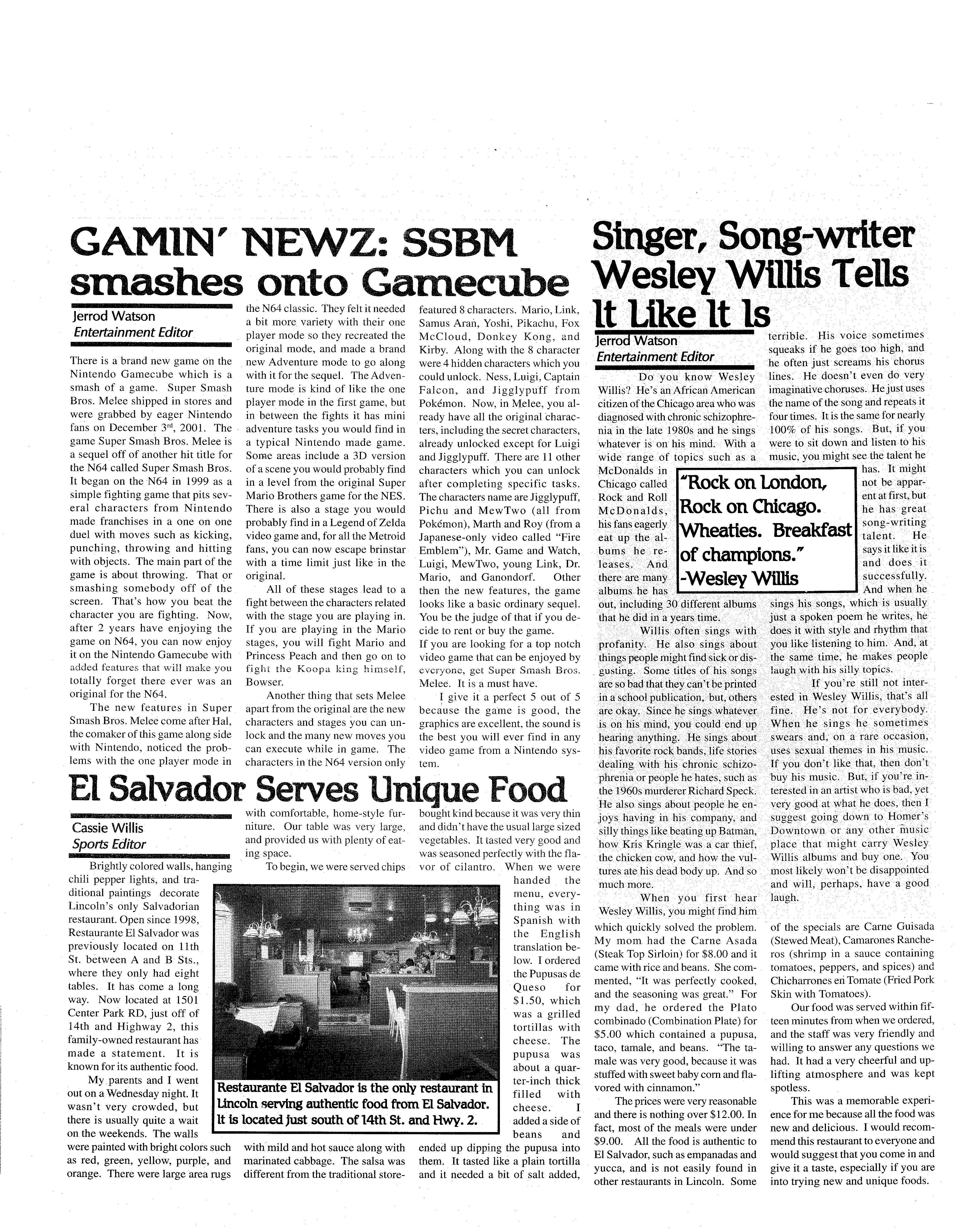 · All of these assump- · Patterson said, "I tions and arguments were be- don't think they get the ing made months ago, before school business that I thought the Amigos was even built. they would get." There Now that it's built how is it doesn't seen to be much of an affecting the neighborh?od overcrowding problem ~t and Sunken Gardens? Is 1t as lunch. Patterson also said bad as some imagined, or that it might just be that studoes it have a positive effect dents don't want that kind of on the area? · food at lunch. ·"When I see Richard Patterson, drink cups and things around Lincoln High' s ·Experiential the halls, most all of them are LearningDirector,isaneigh- from Burger · King," bor of the Sunken Gardens Patterson said. area and a member of a local Apart from the look neighborhood group that tried of the building and the extra to stop the building of the bit of traffic that has been new Amigos. added ; Amigos doesn't seem "Amigos and their to be too harmful. The area sign are right there in front of isn't great, but it's not as if you every time you drive to- there wasn't already business wards the Sunken Gardfns r lt in tbat neighborhood, - •, "' ·, \f,_-'~·-.\ / .:_ ' -~ " -~'a,-,'-