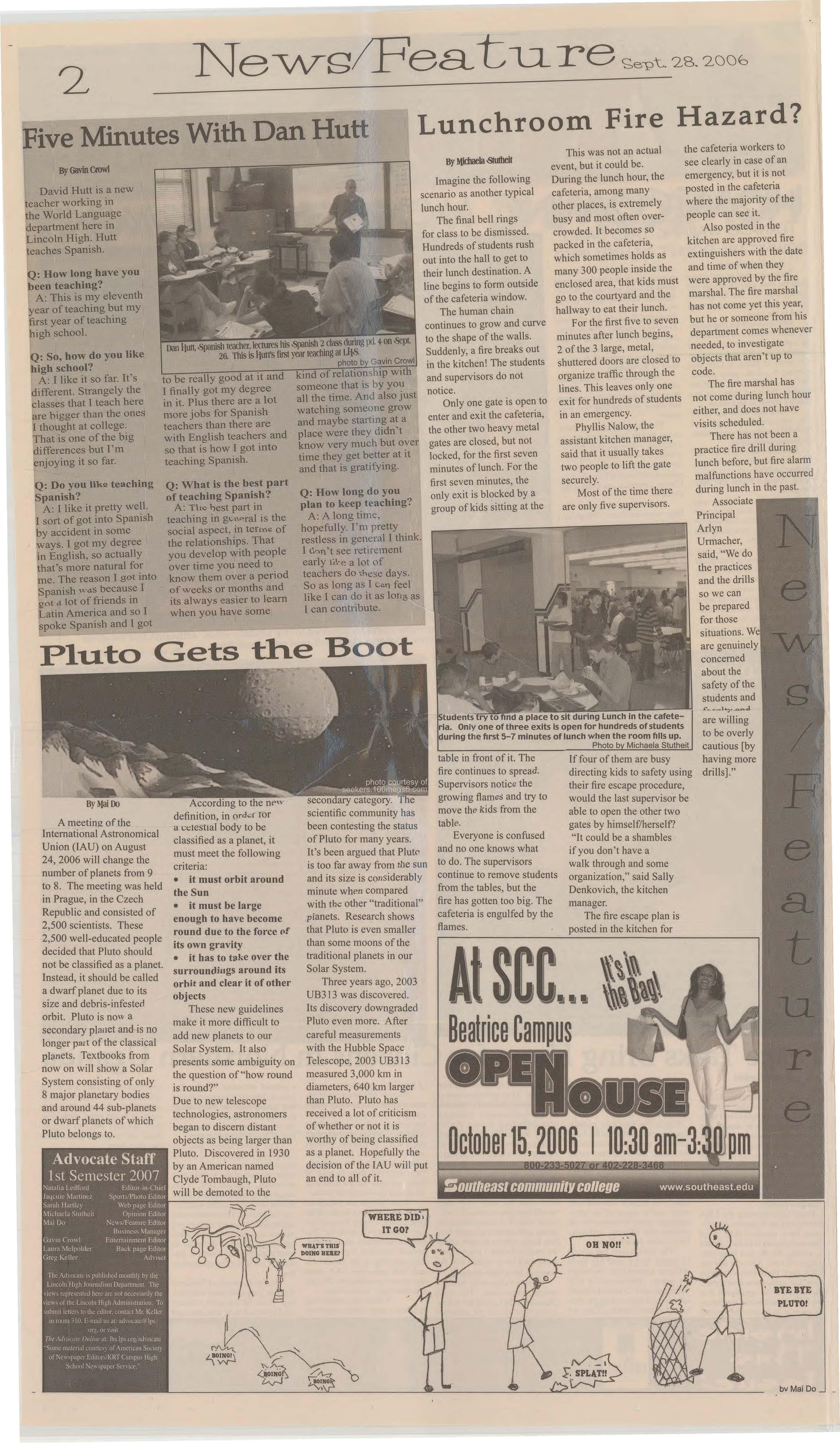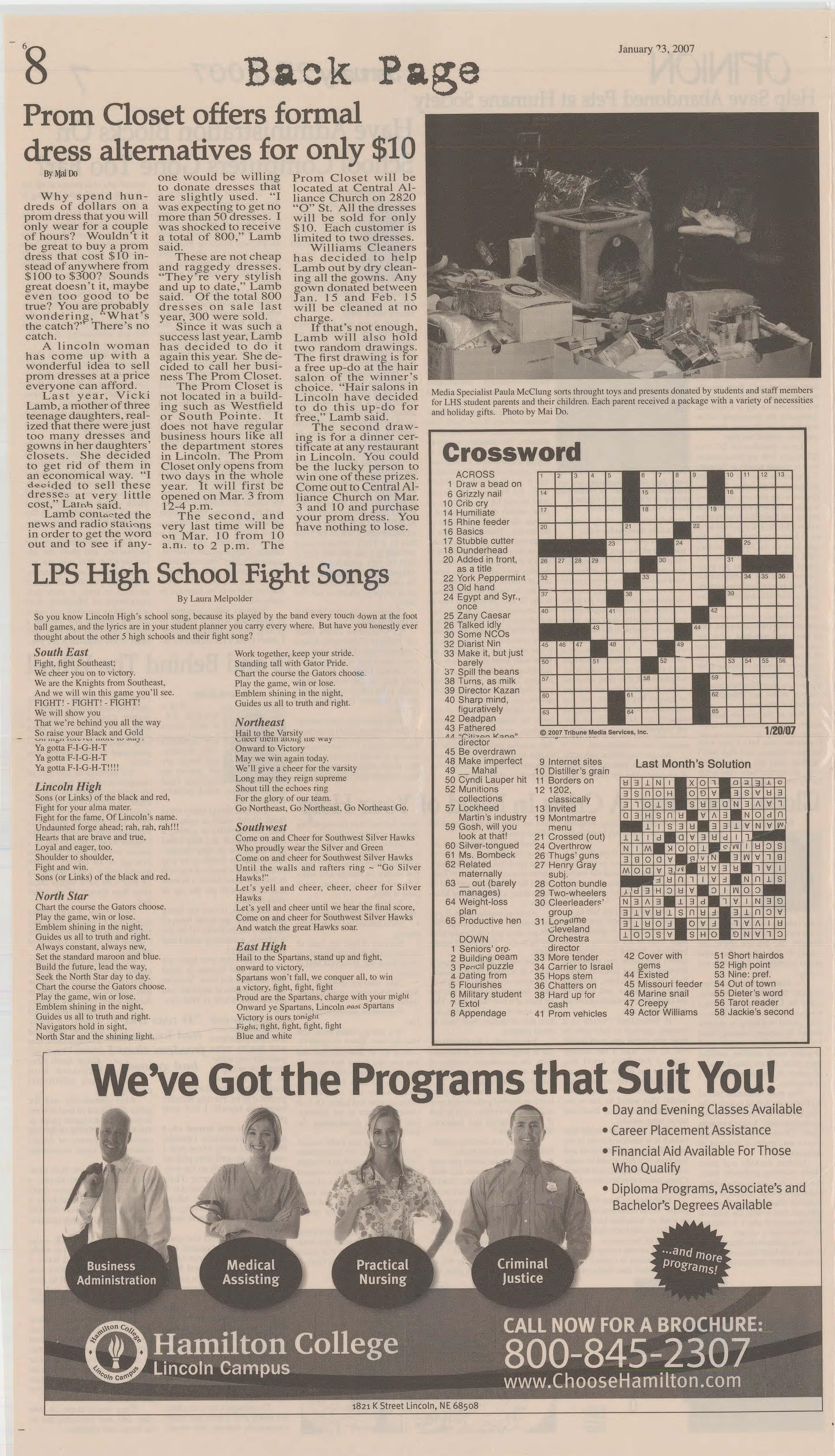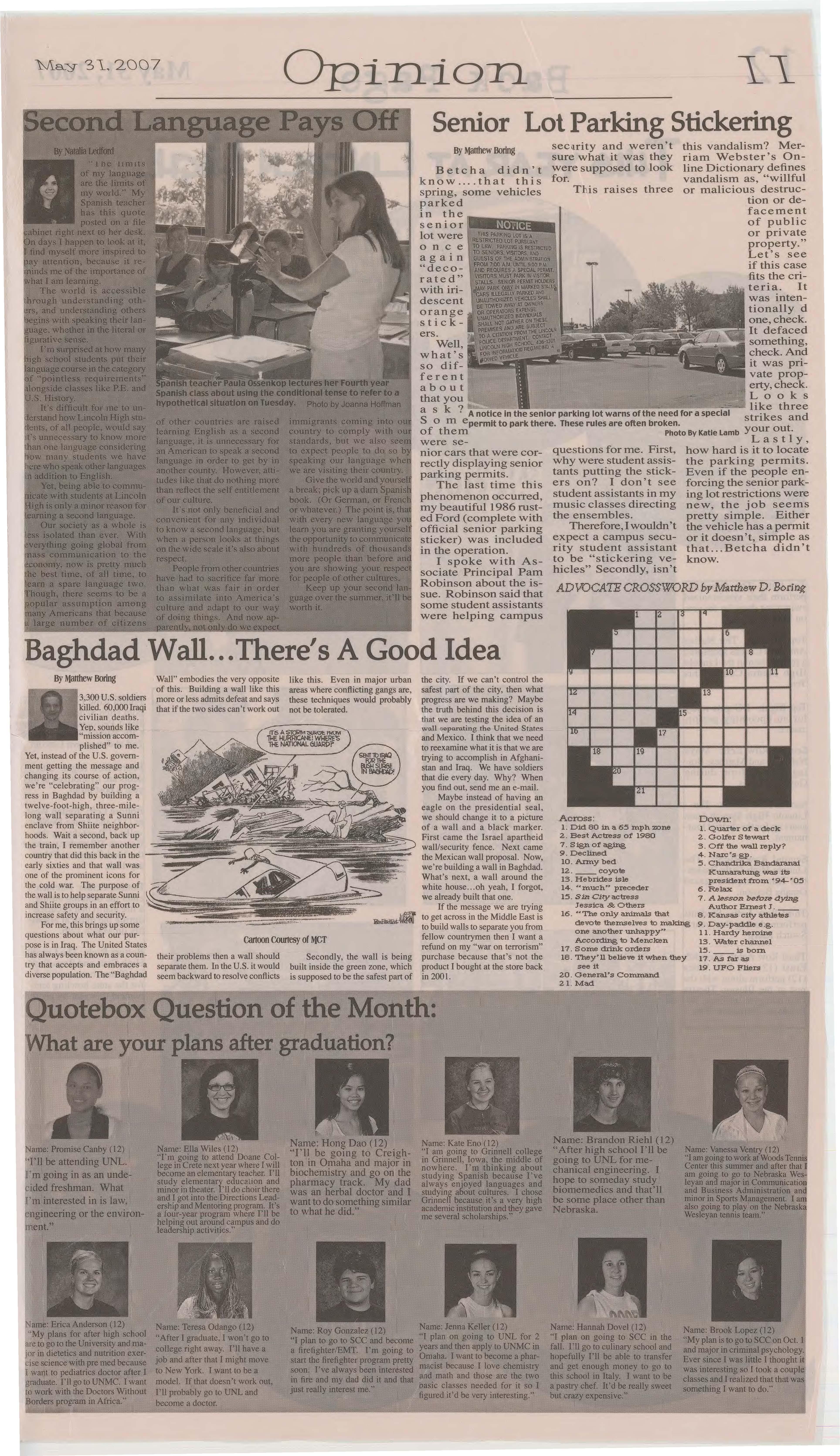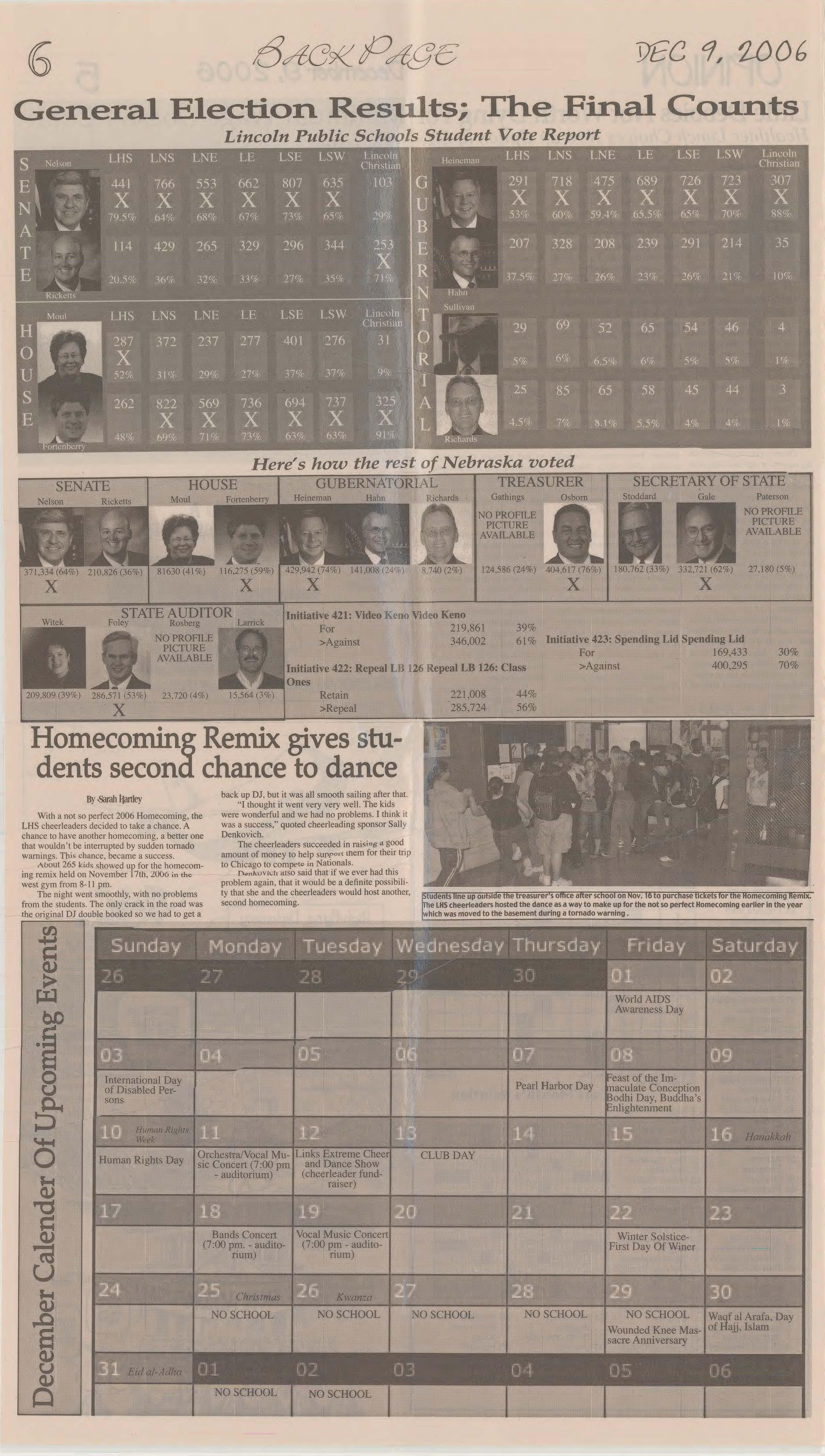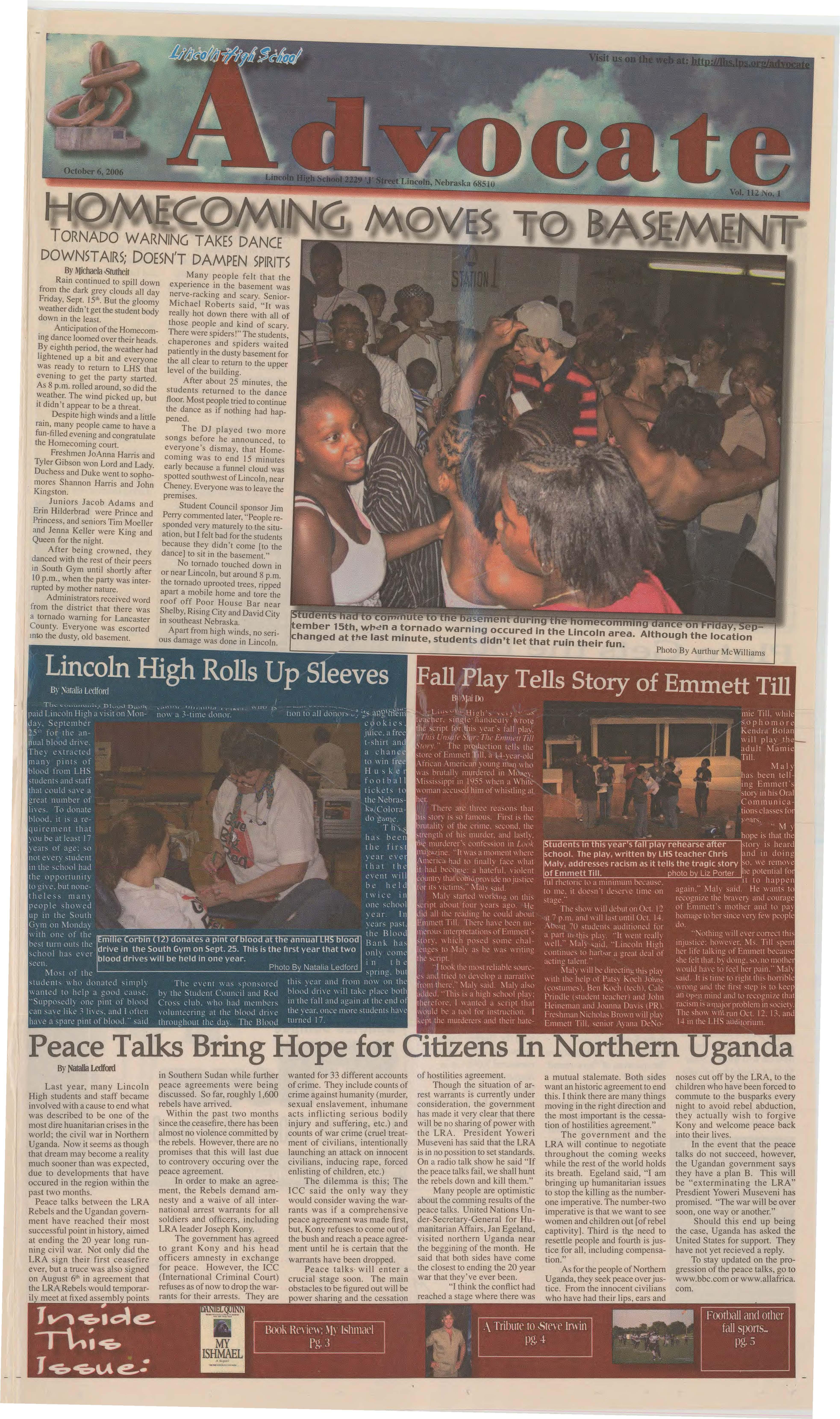 Juniors Jacob Adams and Student Council sponsor Jim Er in Hilderbrad were Pri11ceand Perry COilllnentedlater, "People rePrincess, and se11iorsTim Moeller spondcd very rr1aturely to the situand Jenna Keller were King and atio11,but I felt bad for the students Queen for the night. because they didn't come [to the After being crowned, they dance] to sit in the basement." danced w j th the rest of their peers No tor11adotouched down in in South Gy1n until shortly after or near Lincoln, but around 8 p.m. I 10 p.m., when the party was inter- the tornado uprooted trees, ripped rupted by mother nature. apart a mobile home and tore the Administrators received word roof off Poor House Bar near from the district that there was Shelby, Rising City and David City a tornado warning for Lancaster in southeast Nebraska. County. Everyone was escorted Apart from high winds, no seri1nto the dusty, old basement. ous damage was done in Lincoln.