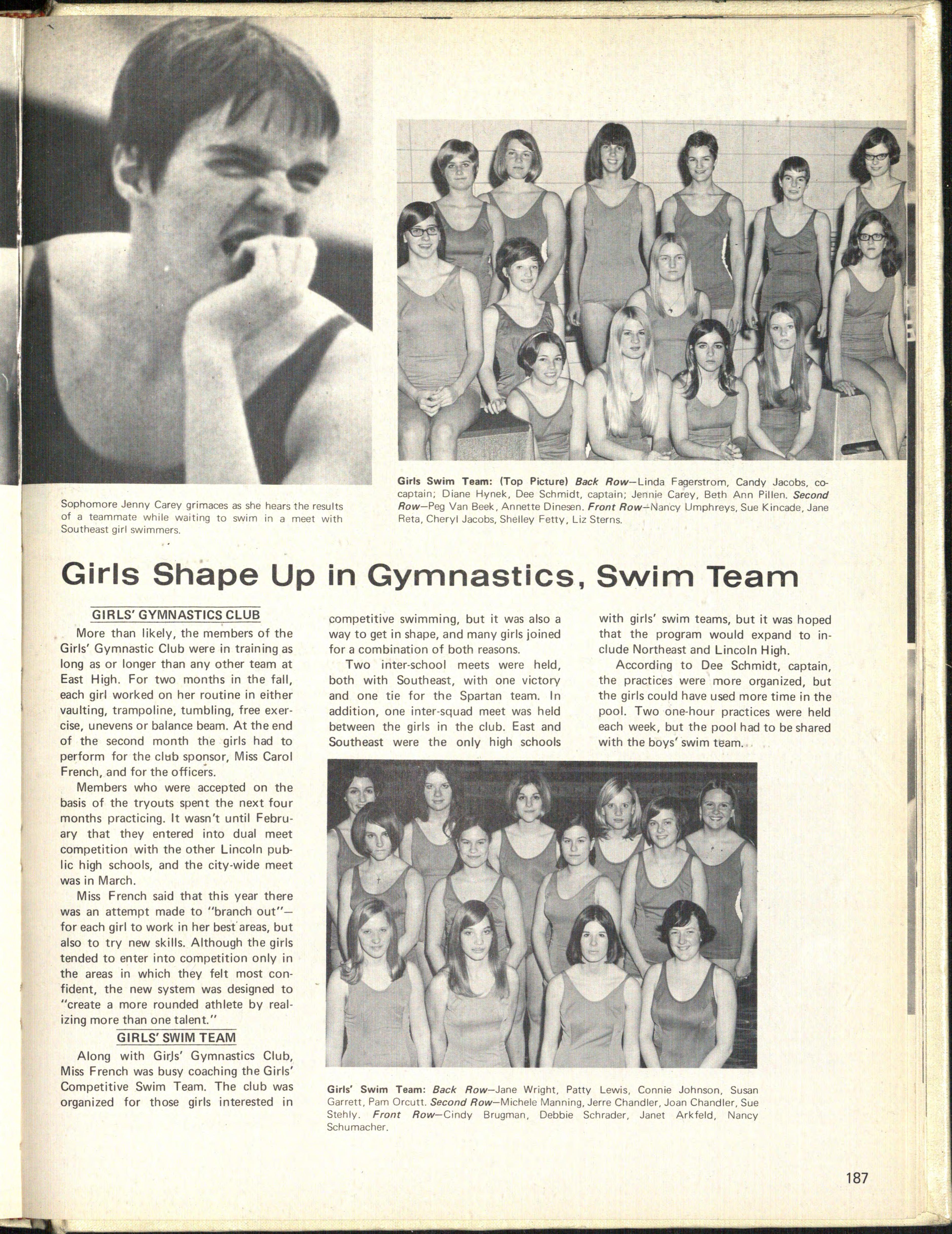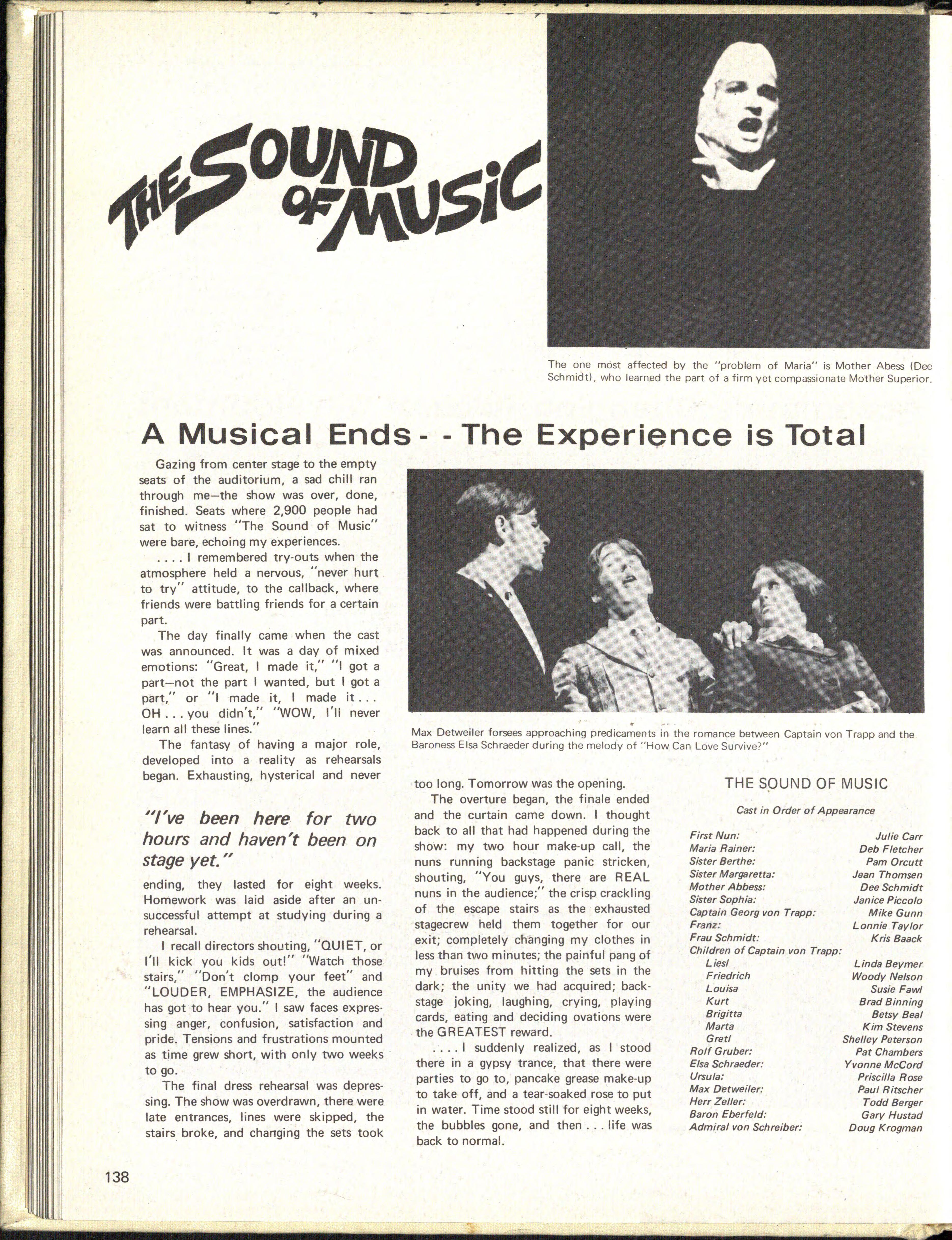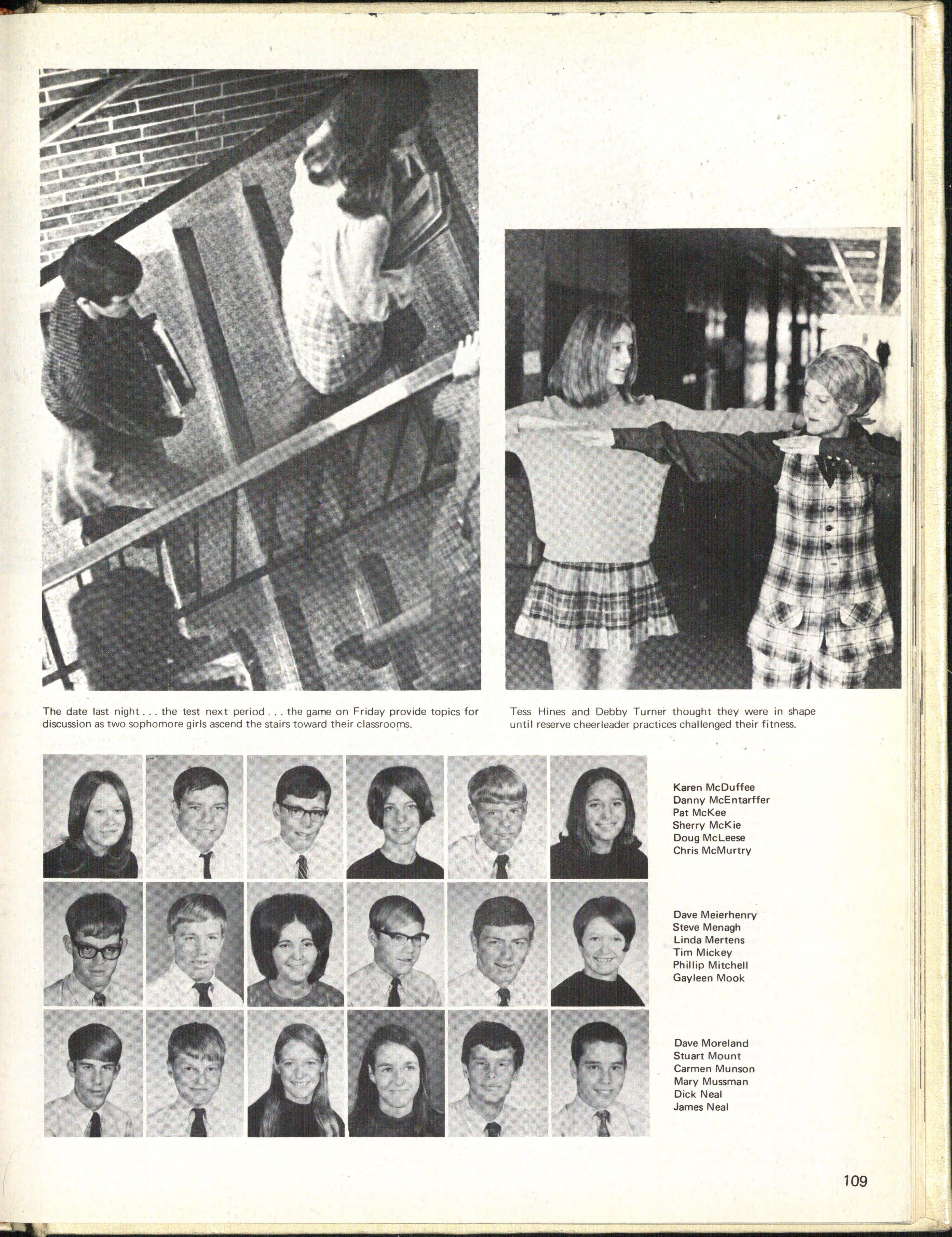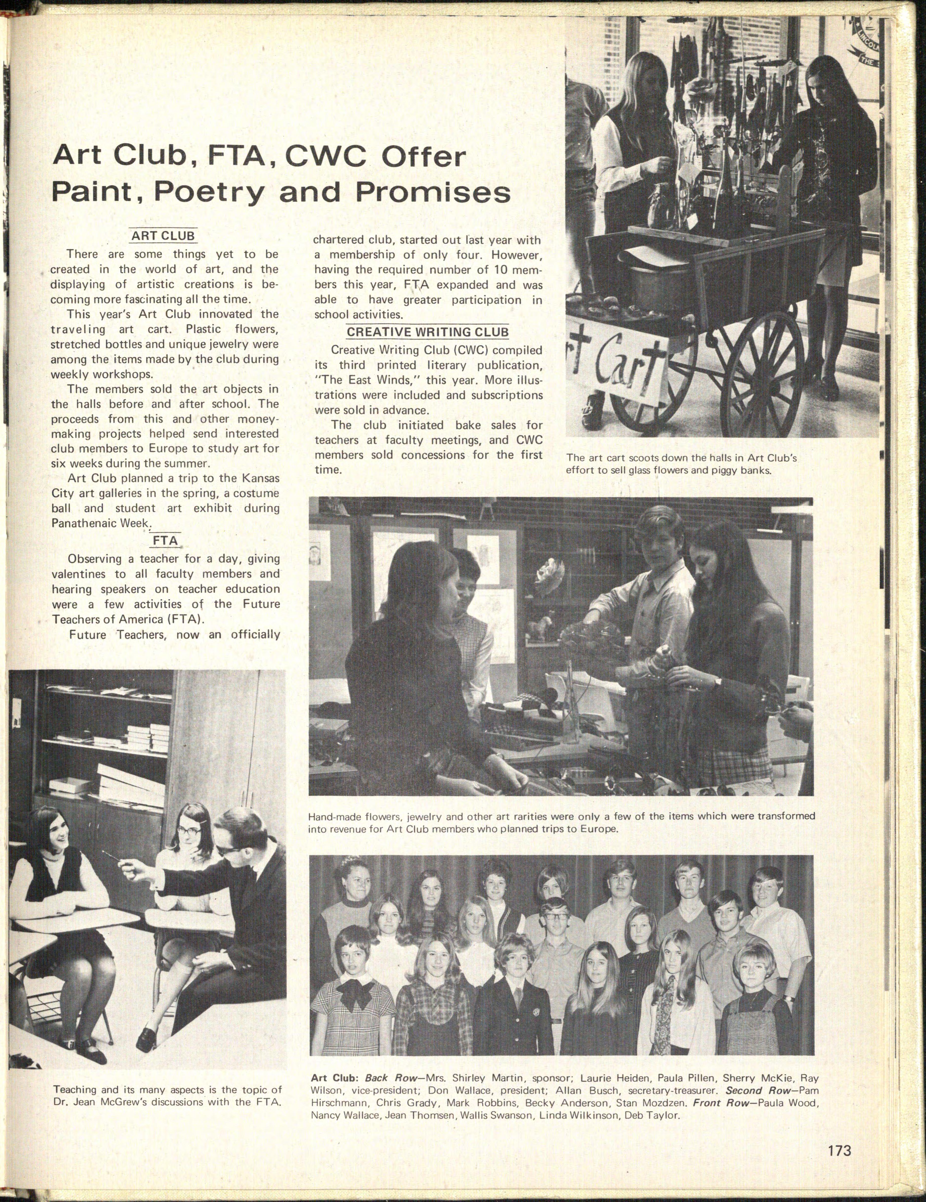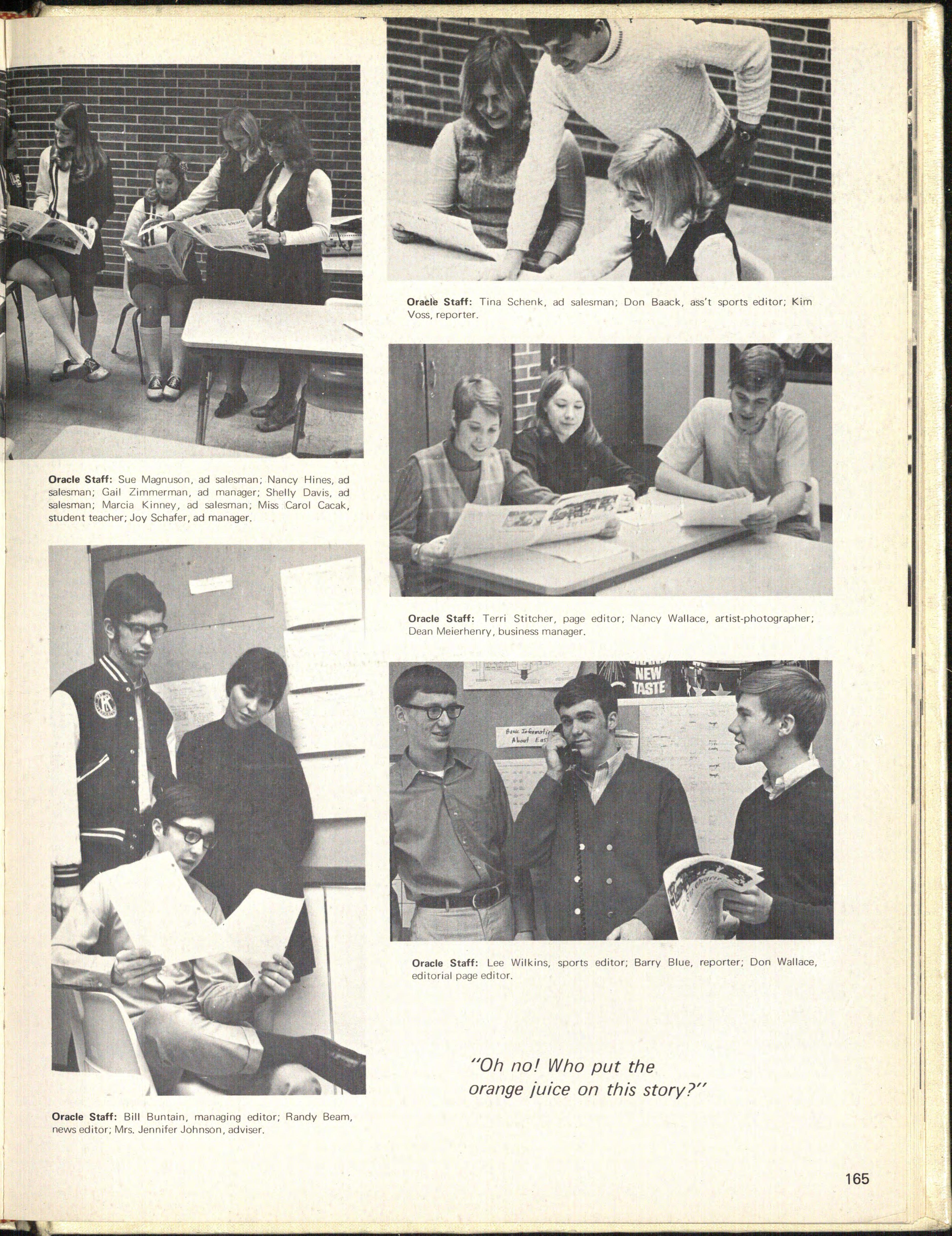 end of the day, others looked forward to a class. "In Philosophy-you talk about problems relevant to us right now; the teacher is well-read, humorous, talks on our level, understands our problems and keeps the class' attention," a senior said. Class discussions replaced lectures more and more. Performance classes and other methods were put into effect to create "a change of pace."
