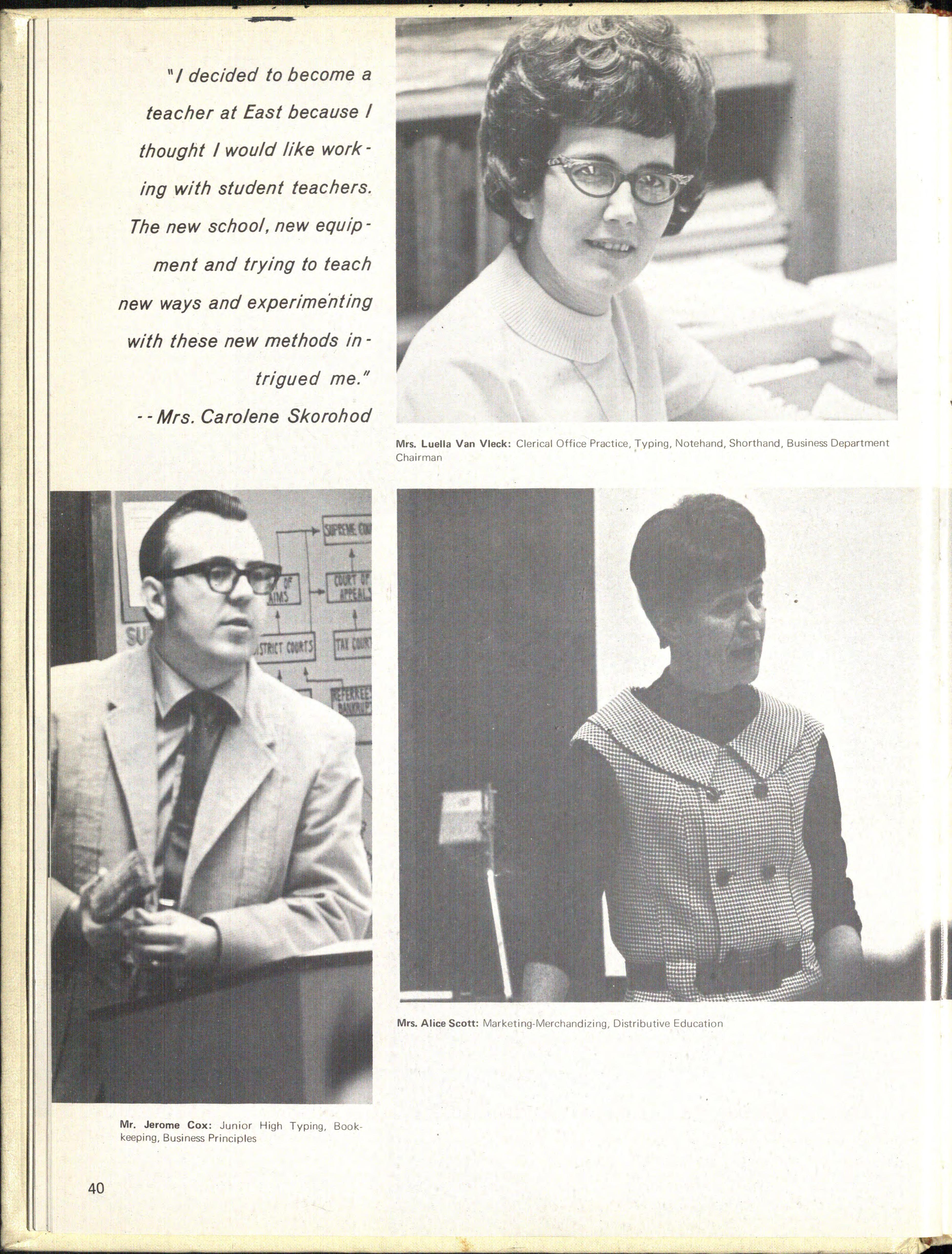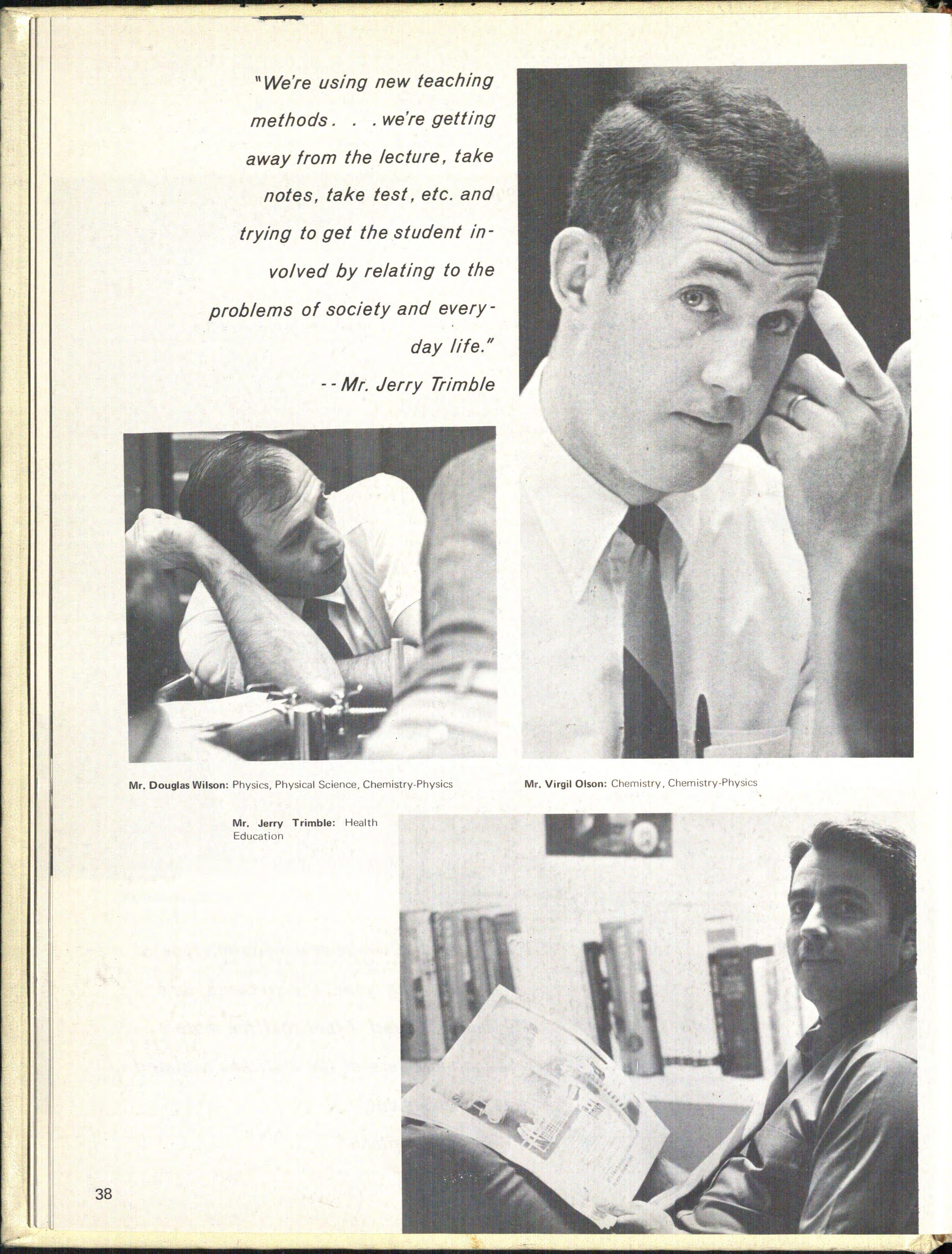 Most teachers tried to make the students feel like individuals and many adopted philosophies similar to that of Mr. Bill North, American studies teacher, "I prefer class discussion where I can take my turn with a student as chairman or teacher. I am in the audience."