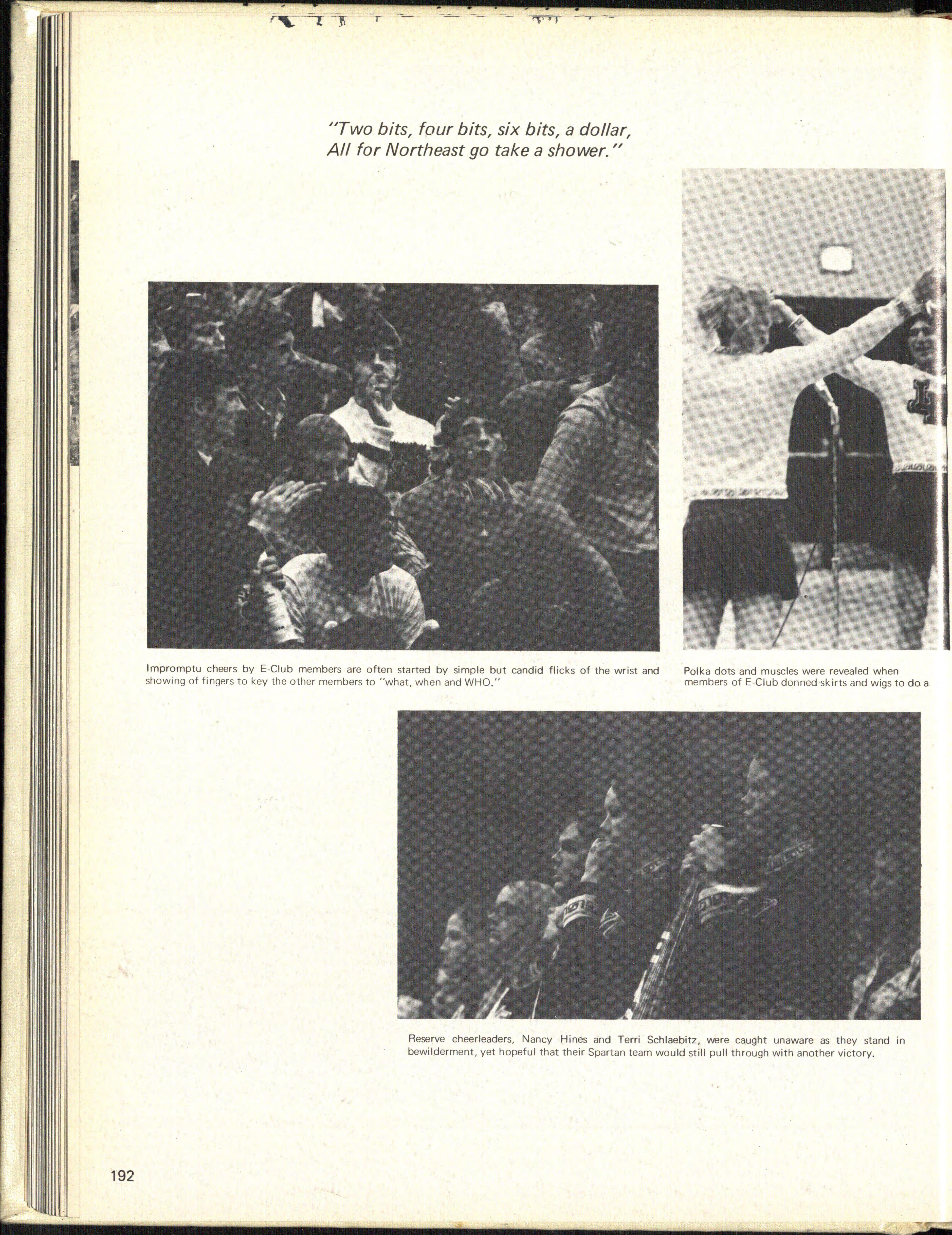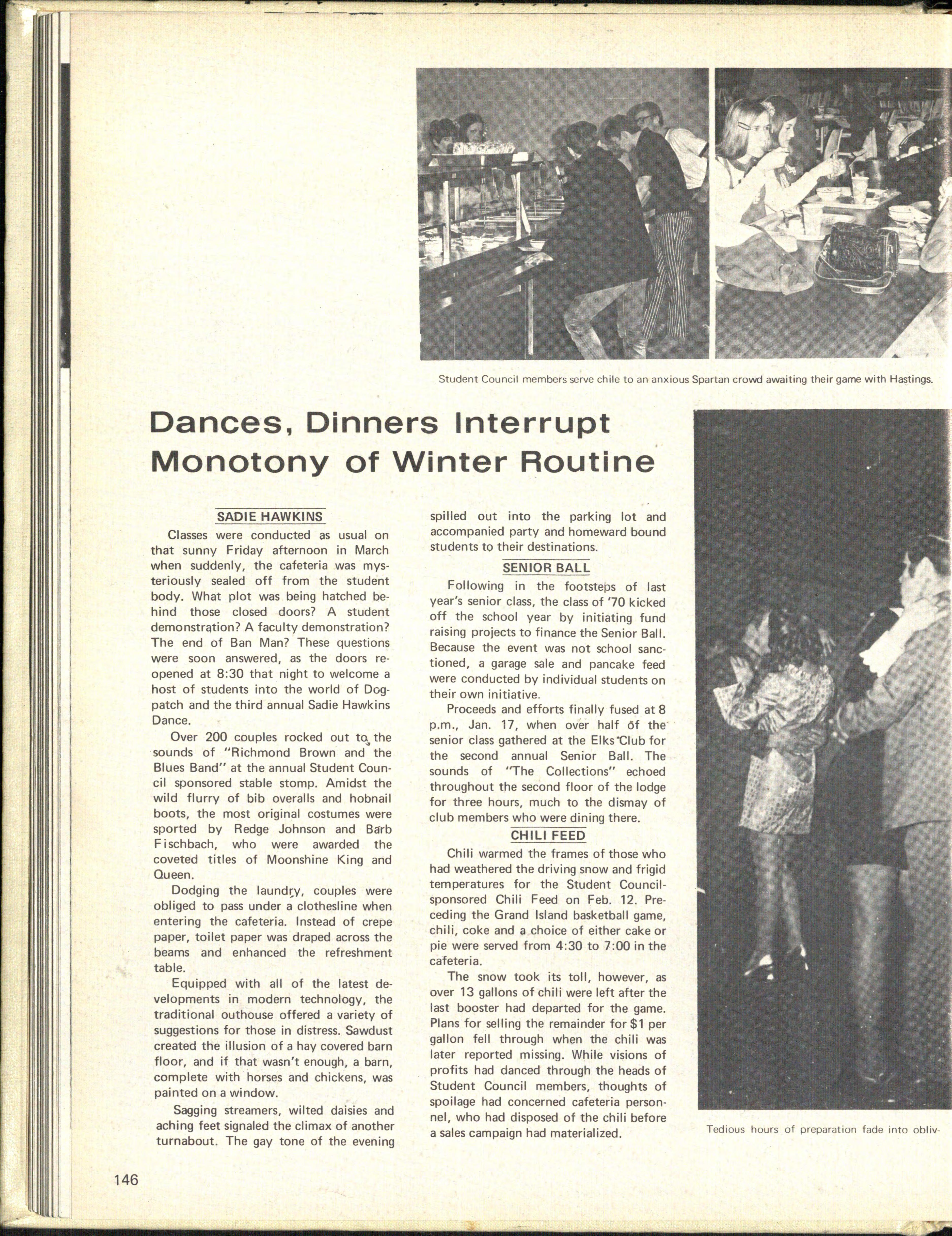 After we earned the city football crown last November a policeman on hand noted: 'They ·sure don't seem too excited about it. I expected a whole lot of yelling and cheering and they're just going home." Posters stood for weeks unnoticed. Student Council grew frustrated at an apparent lack of concern. Dances failed. Bake sales and donut sales flourished. The only effective appeal must be to the stomach.