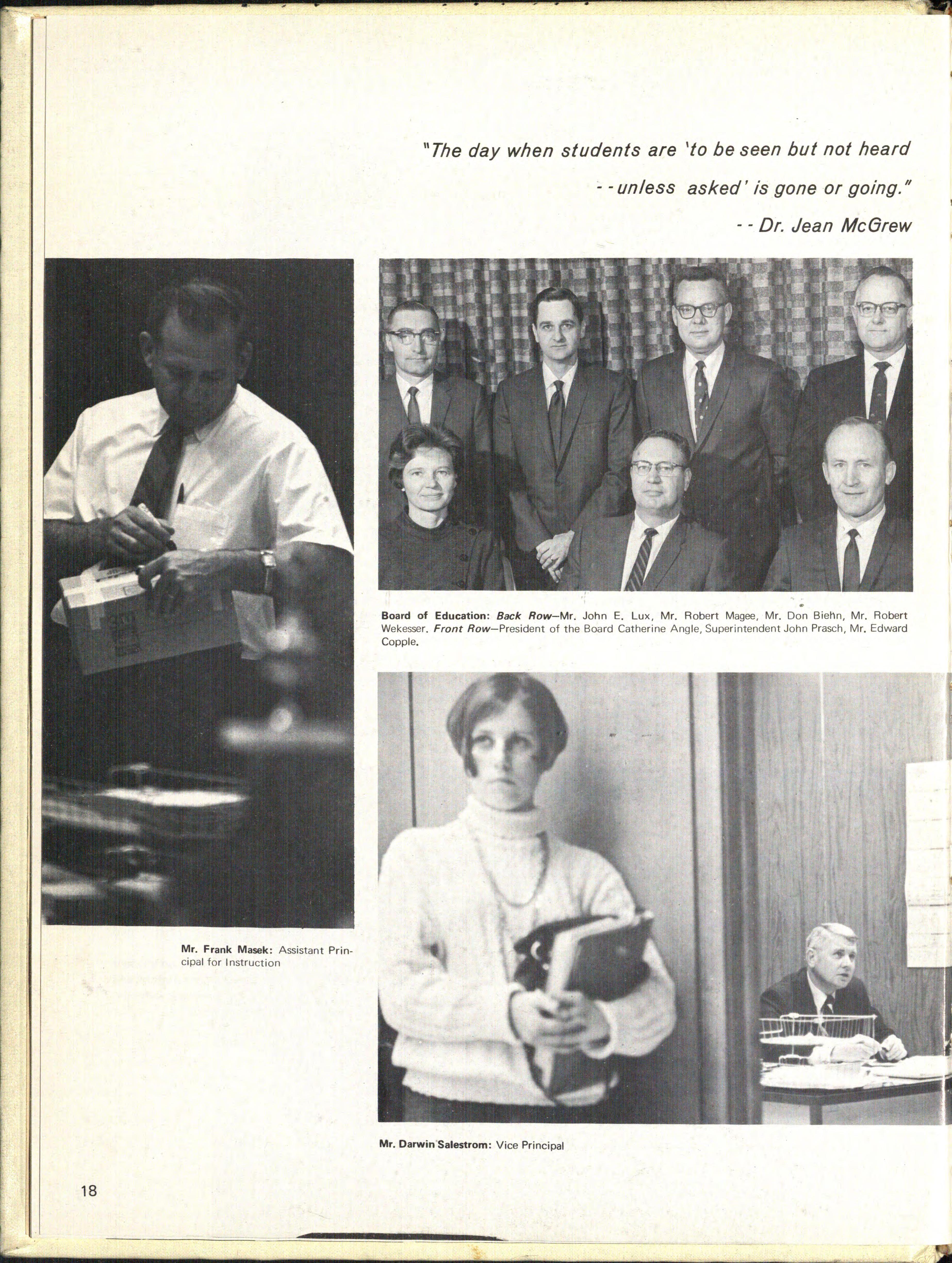 Just as the entire educational approach has shifted now from what it was in the fifties, likewise for the future. Mr. Darwin Salestrom, vice principal, recognizes that one of the obligations of the adminis-trator is to take a panoramic view of the trends and modes being taken by · education and to creatively combine the most valuable innovations with the most valuable traditions.