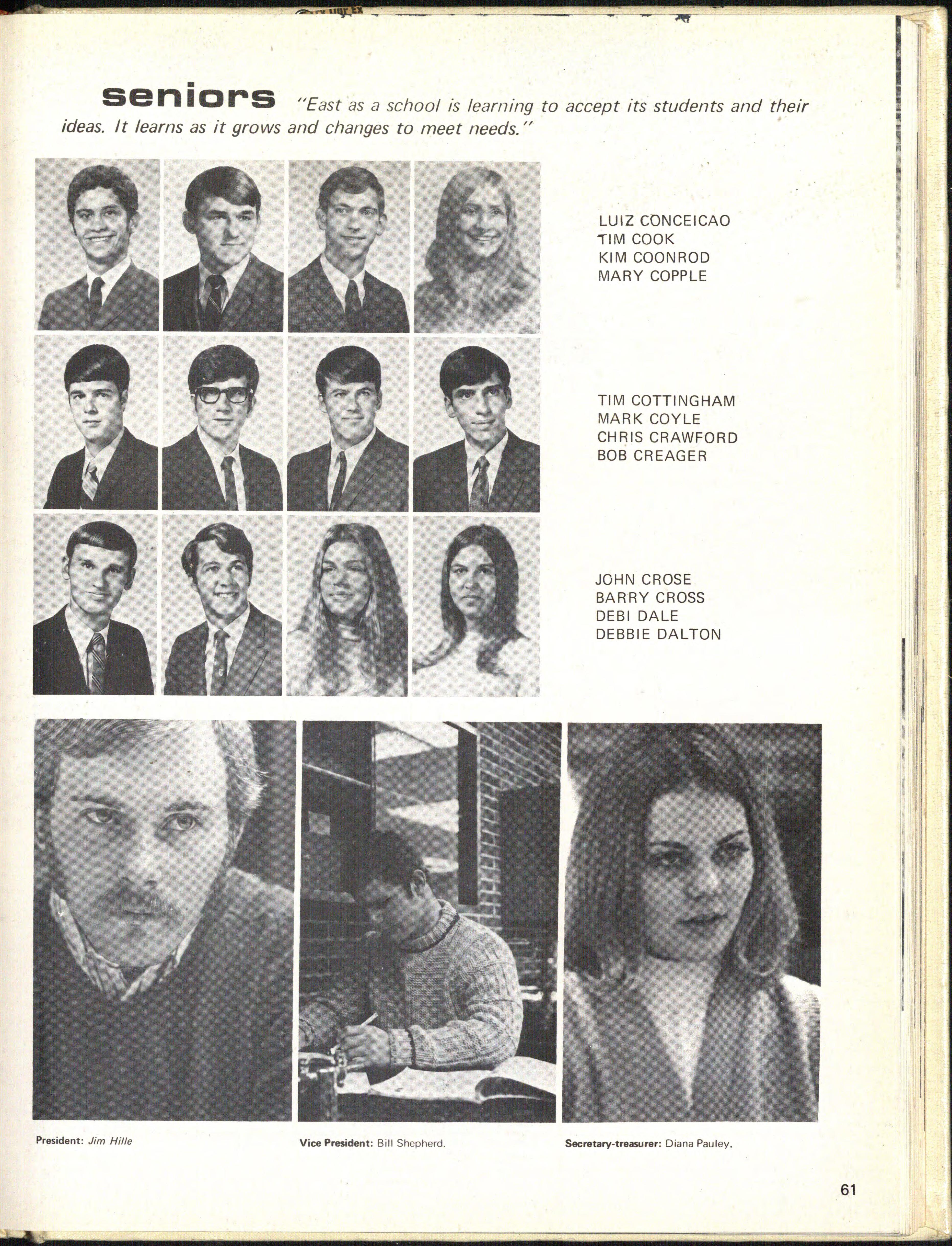 Students have a wide rnnge '.)f interests at East. When asked what meant the most to him, one student answered, "finding myself," while another commented, "People-to get socially ready for the world."