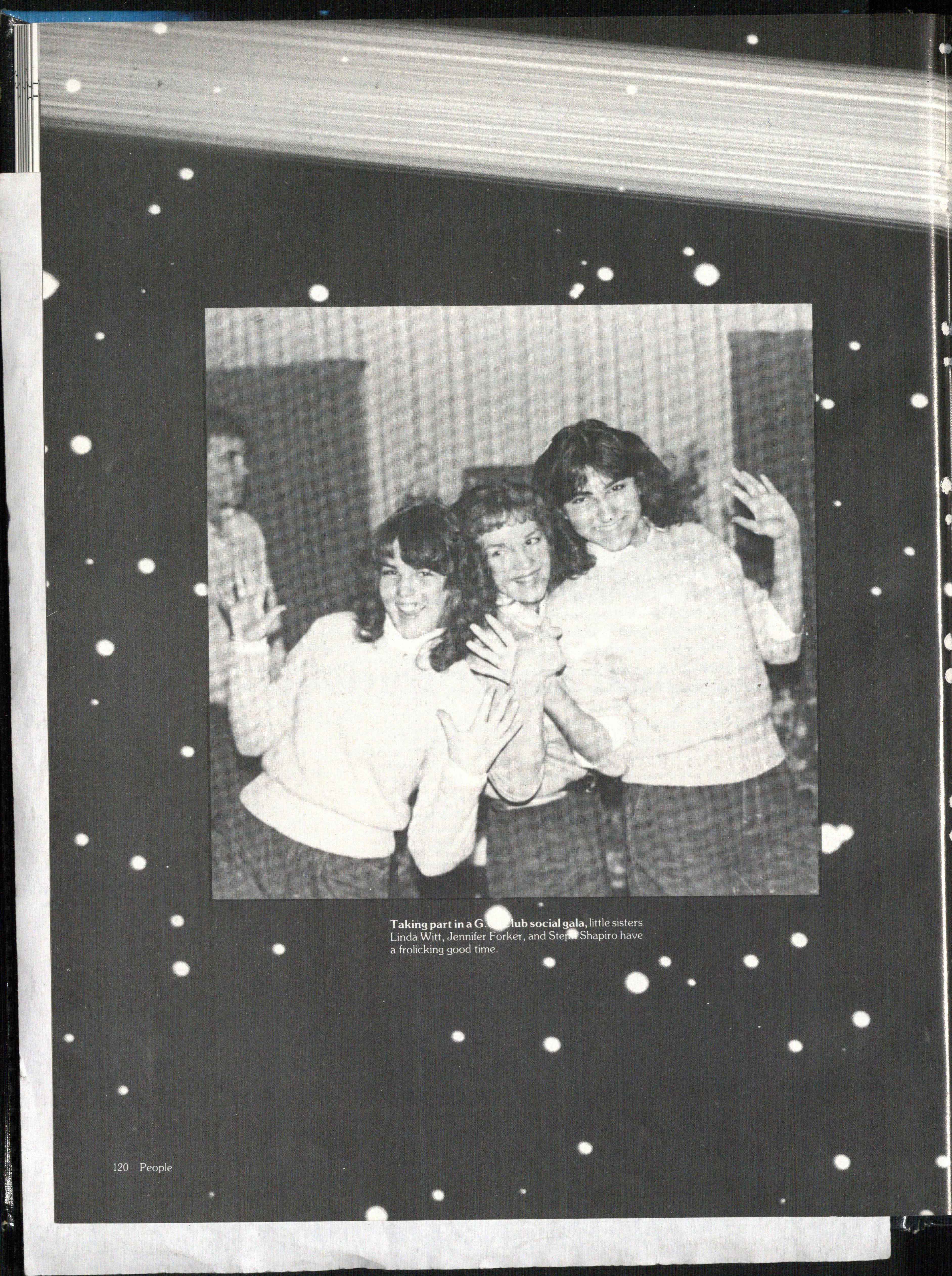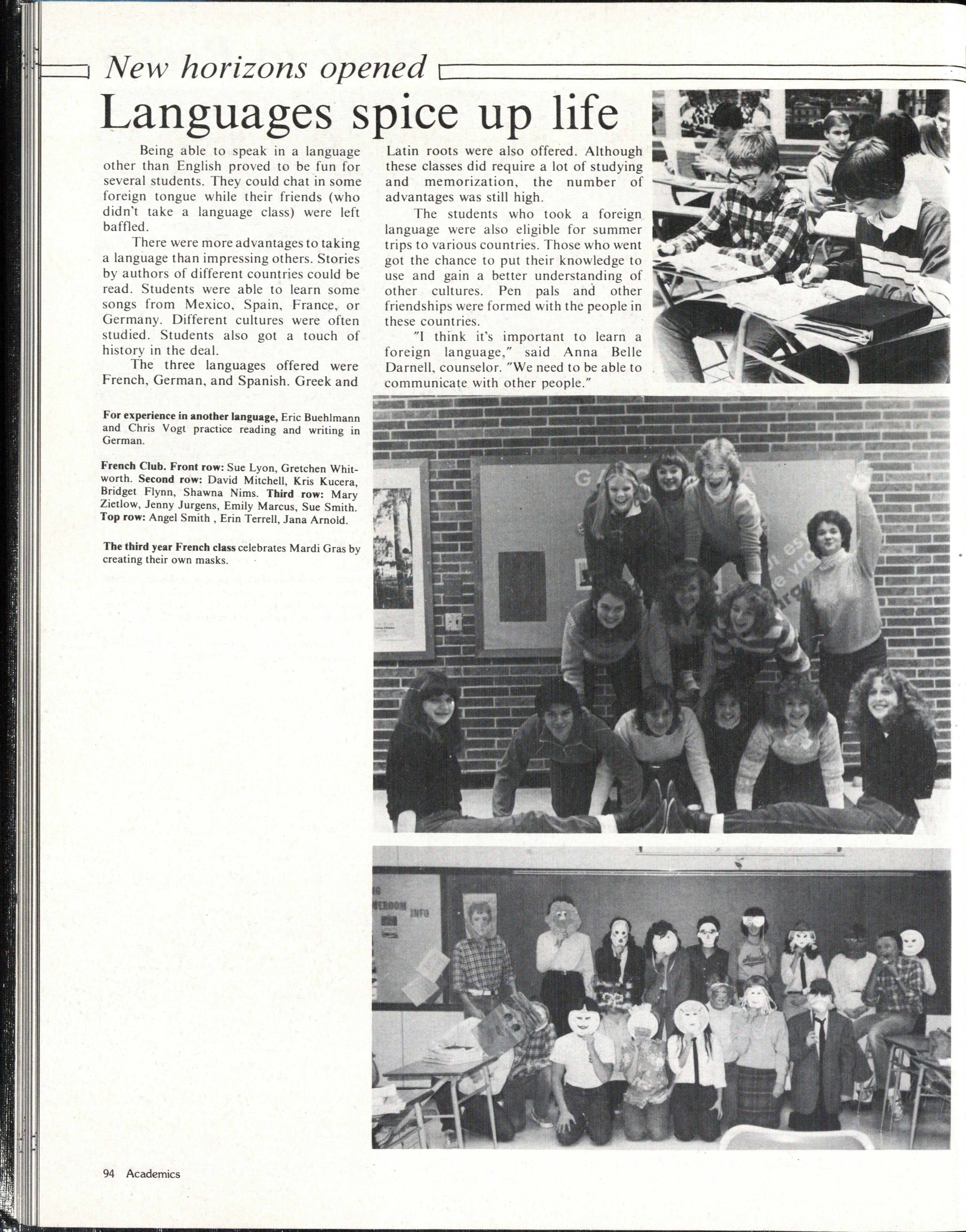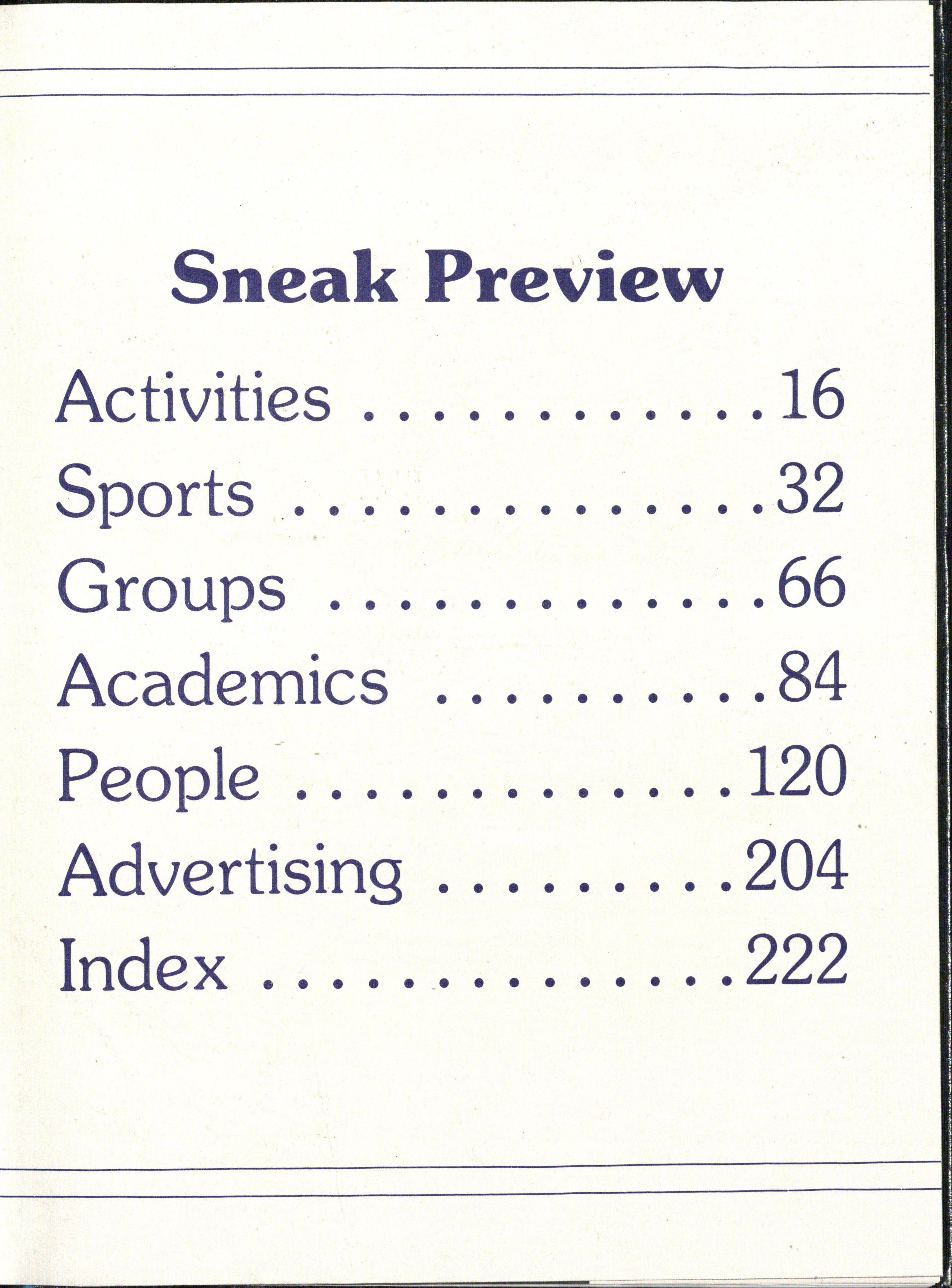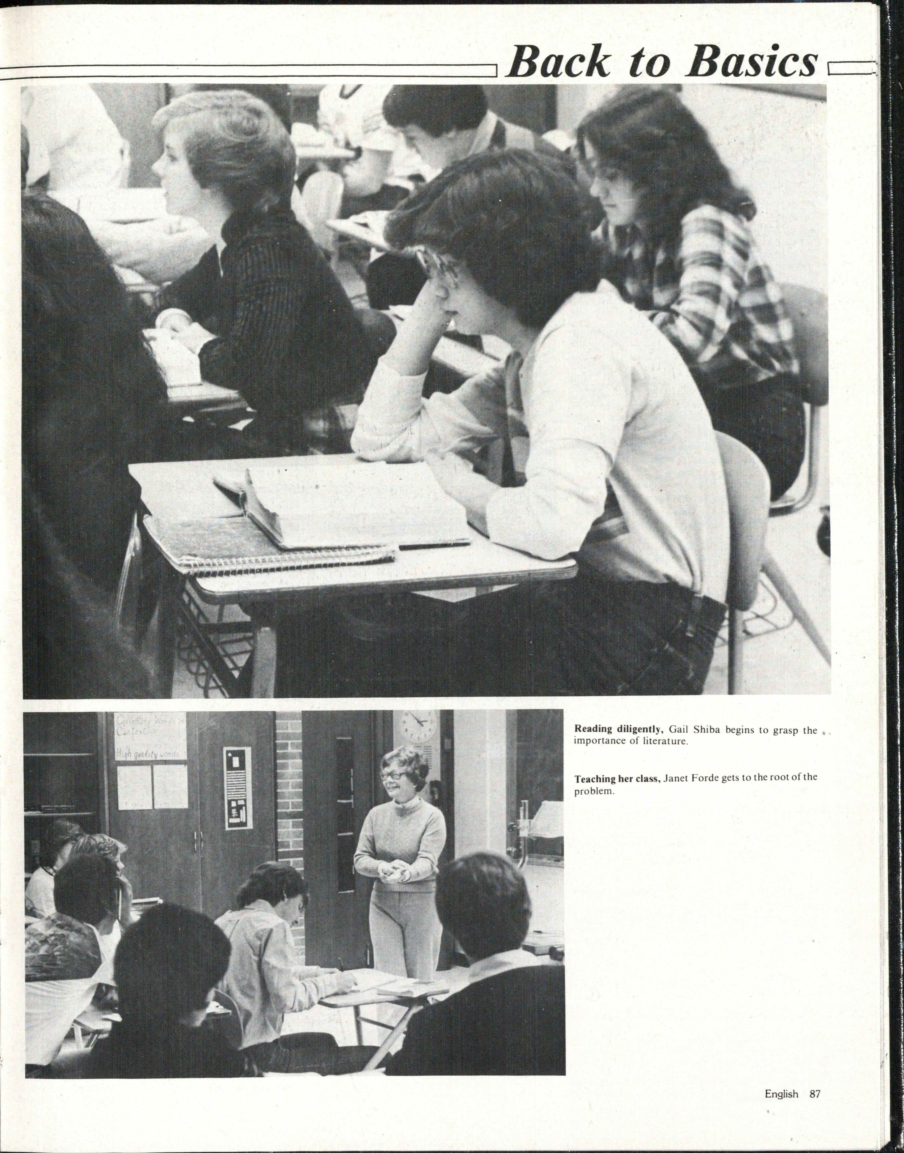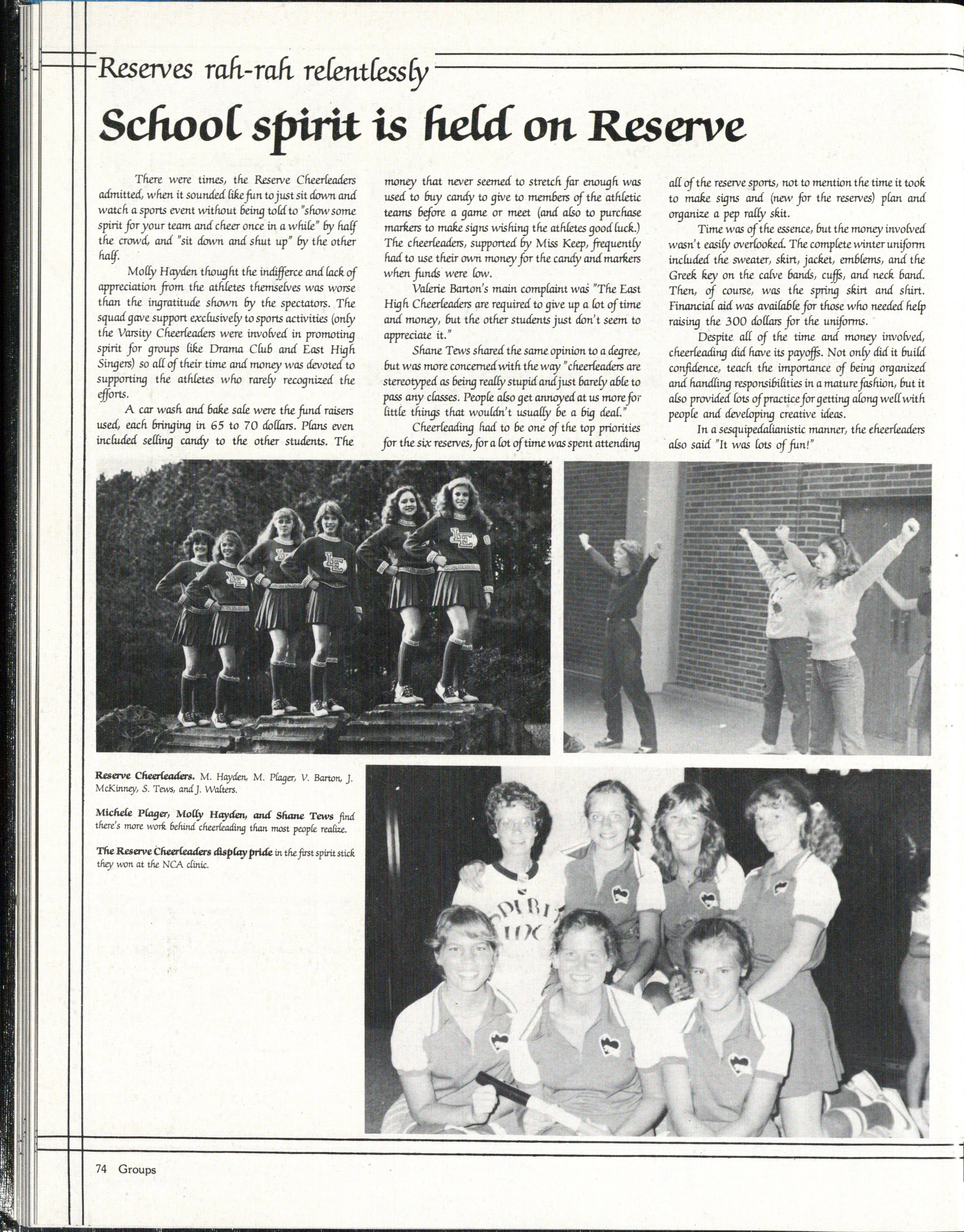 The clippings and reviews of '82-'83 reflected a successful booking. The season brought numerous state championships in sports as well as other activities. Highlights of the year included a "snow day" when school was cancelled, record highs in February which encouraged shorts, a football game played in a thunderstorm, the Punk-Funk Dance, classes held during a blackout, Johnny's Lounge (a new hang-