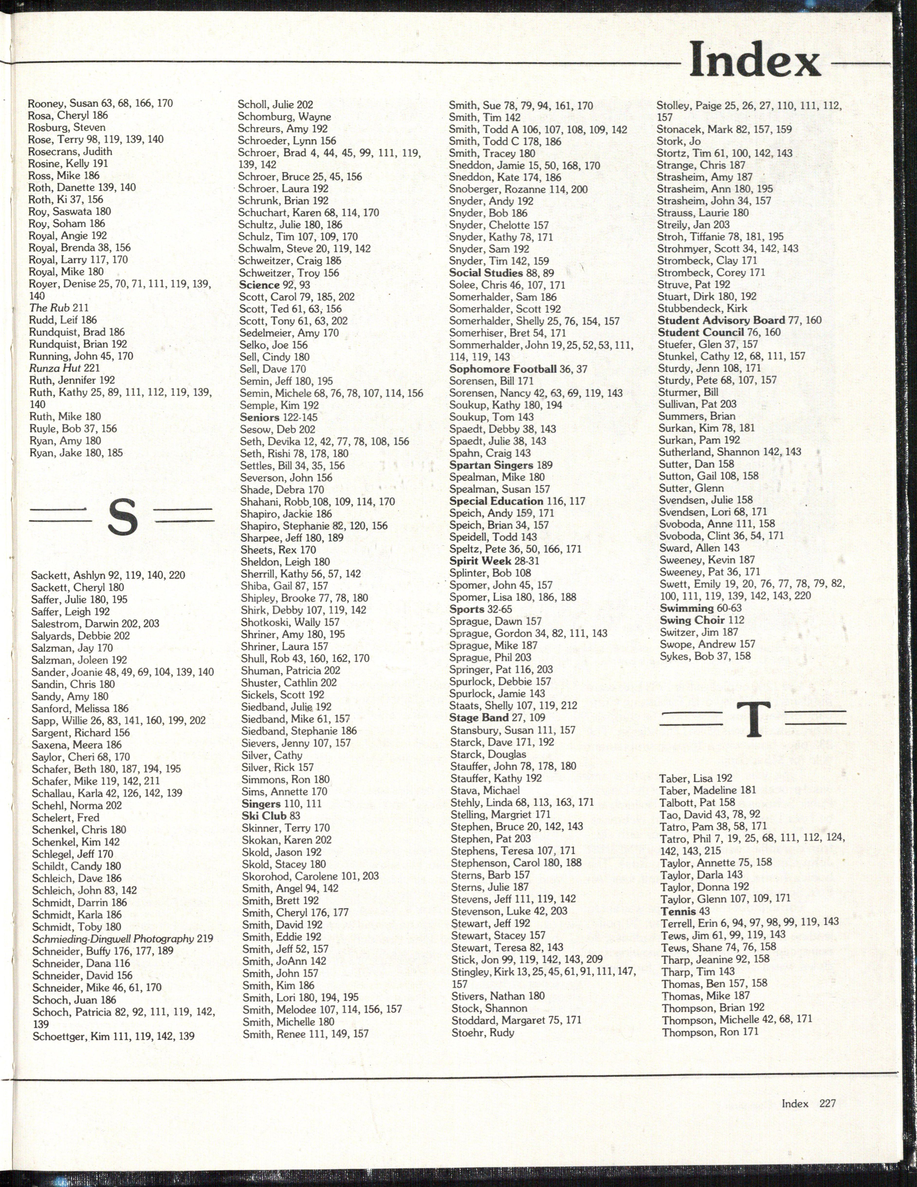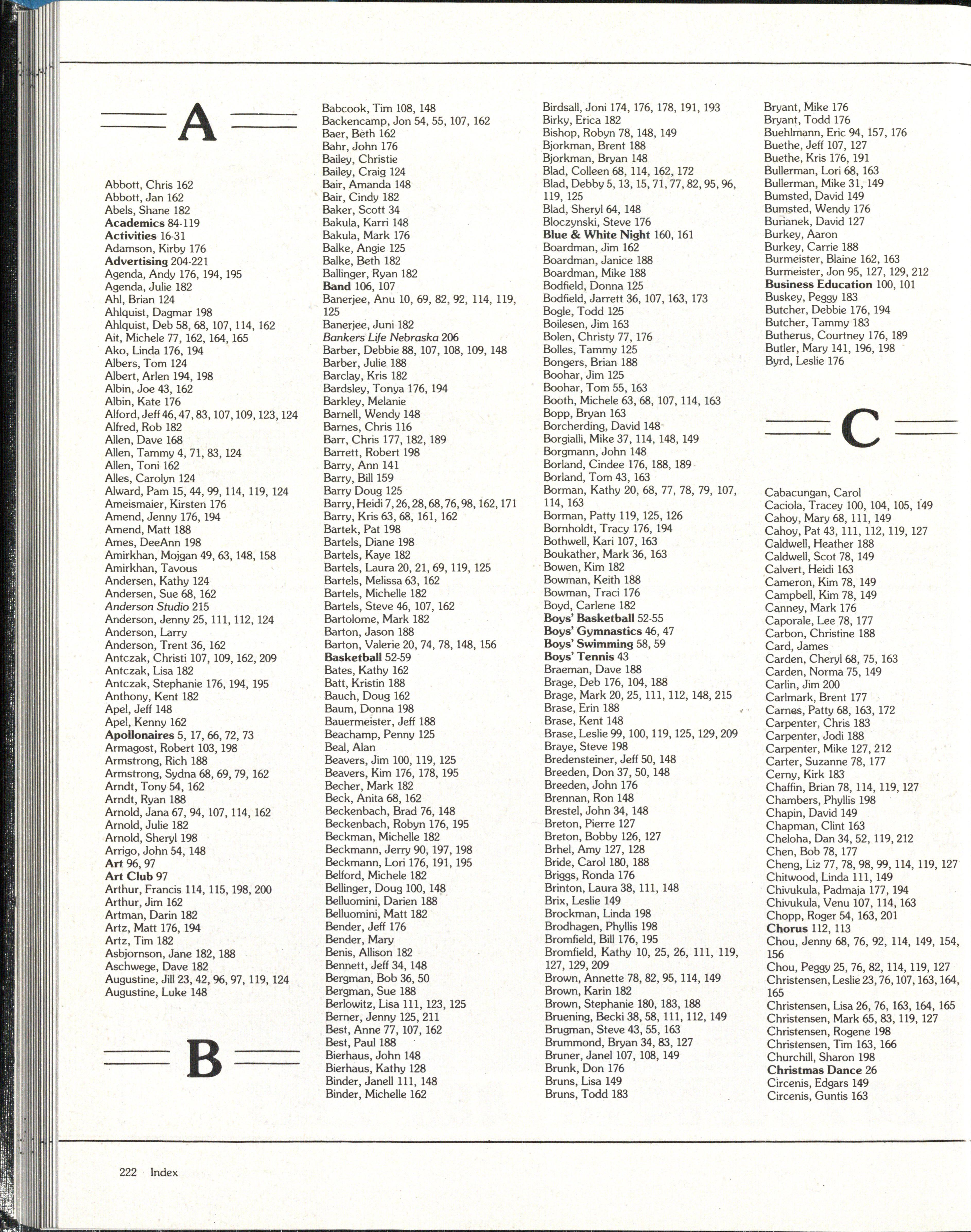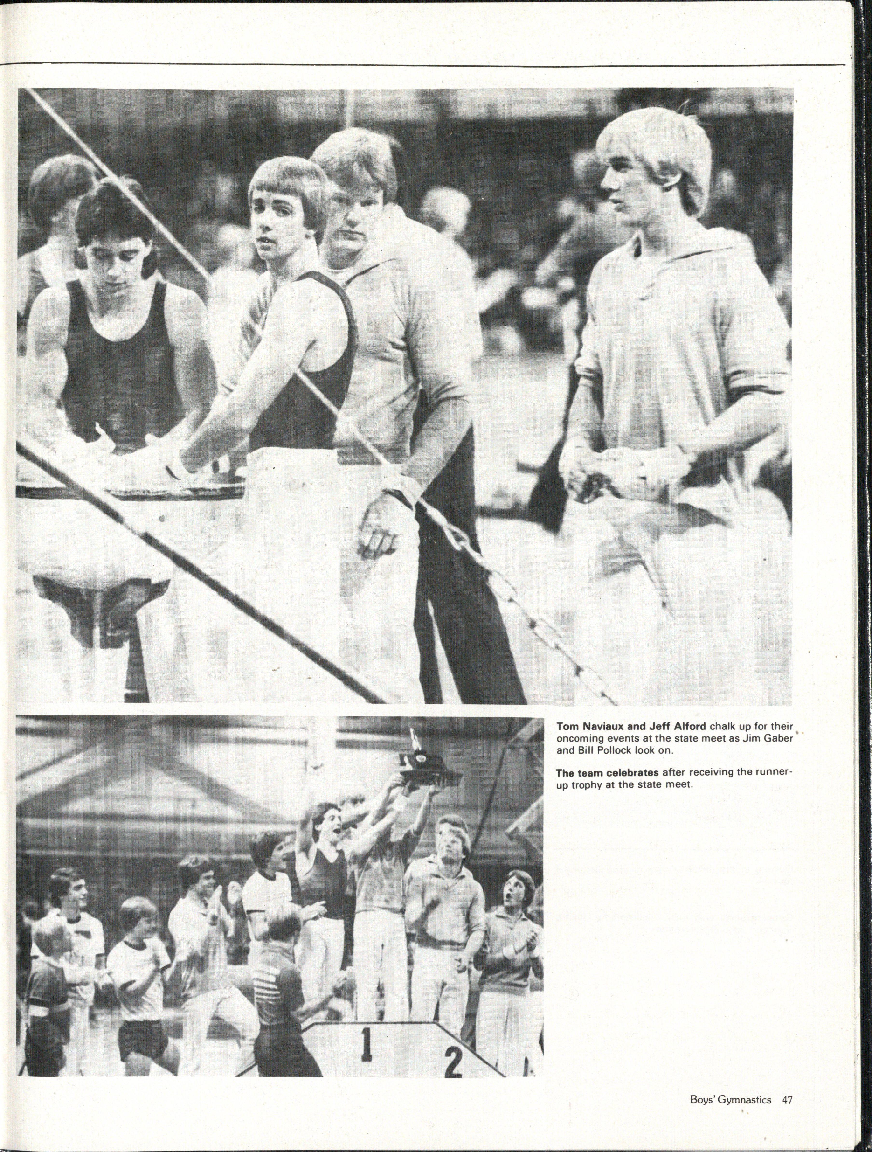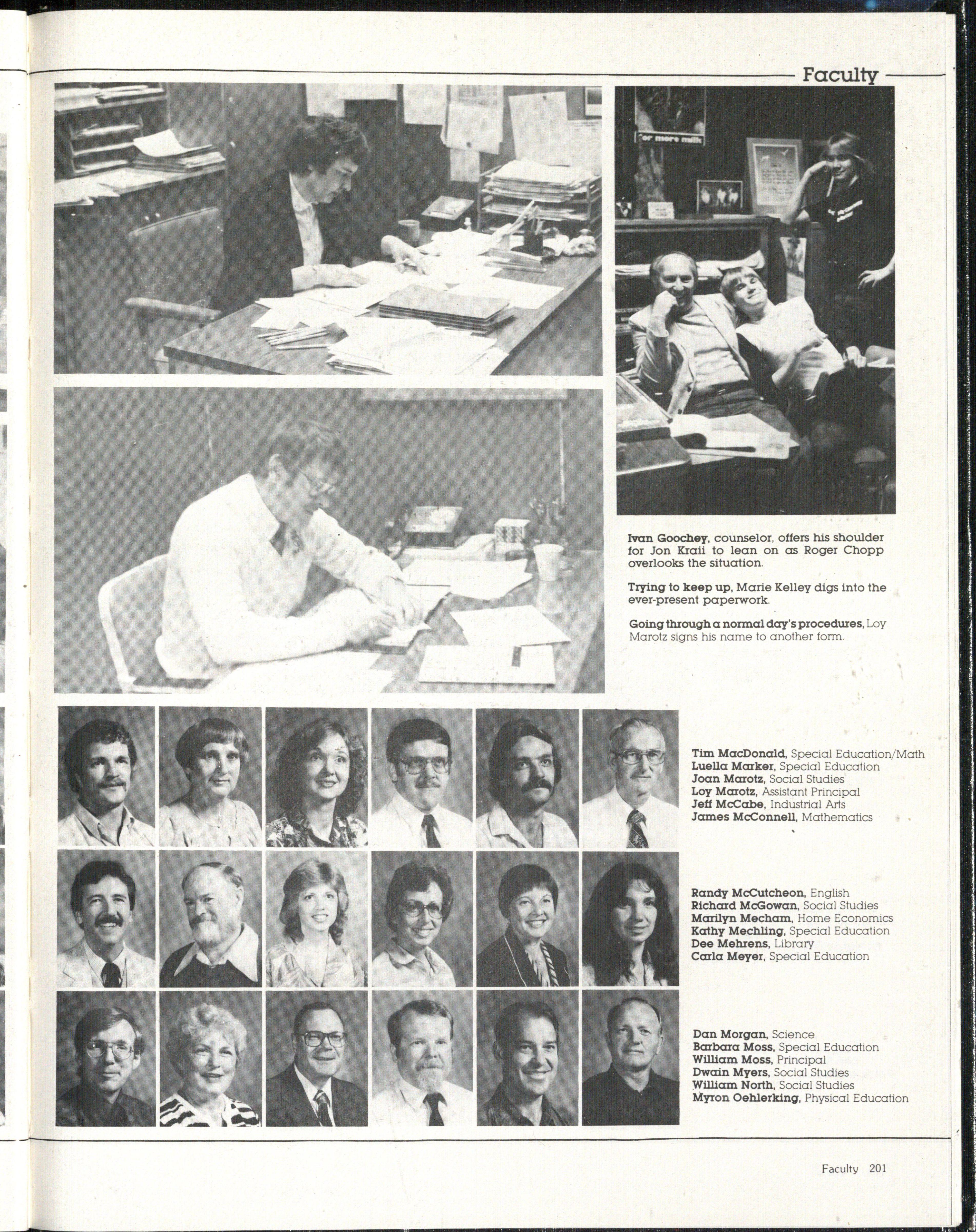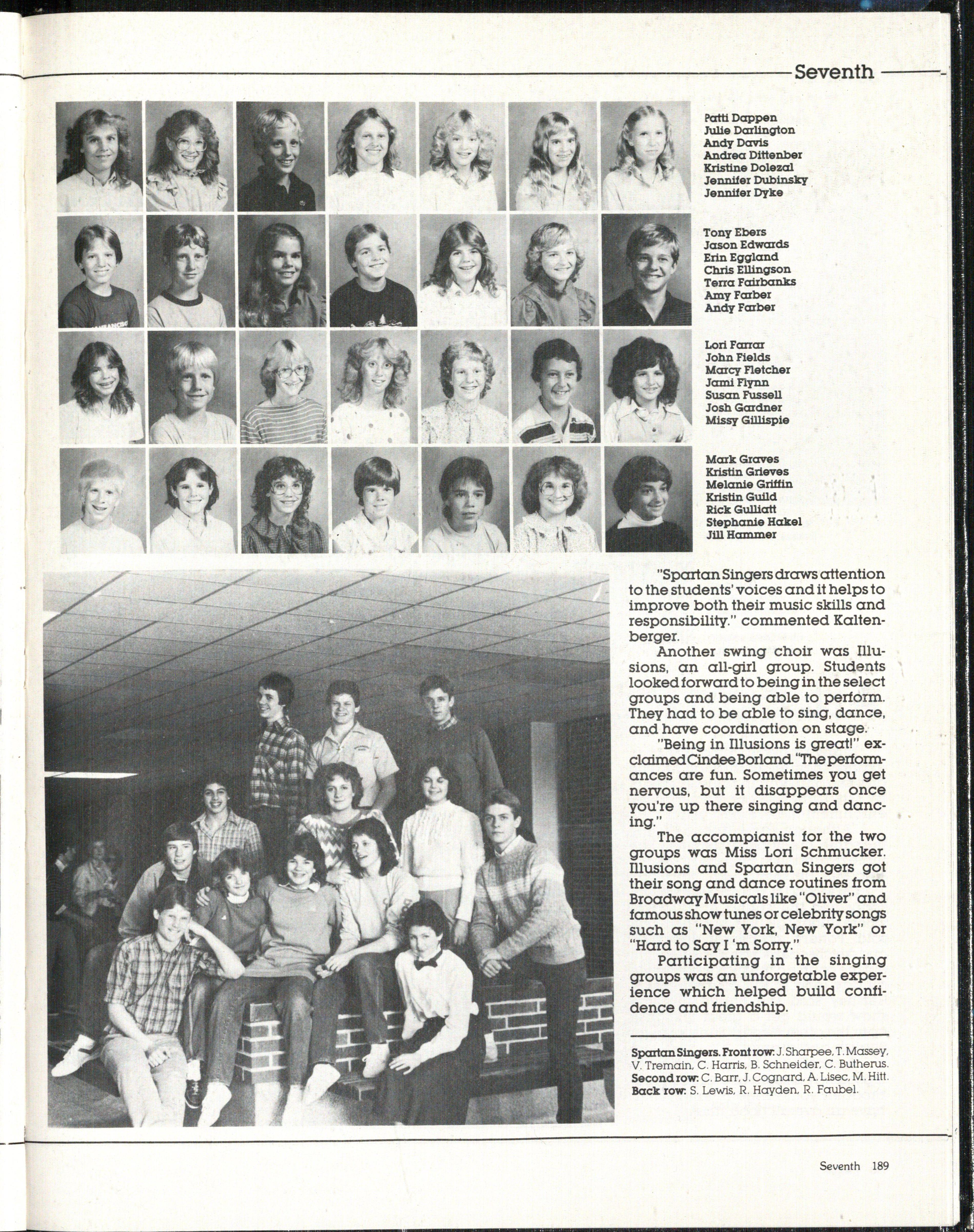The clippings and reviews of '82-'83 reflected a successful booking. The season brought numerous state championships in sports as well as other activities. Highlights of the year included a "snow day" when school was cancelled, record highs in February which encouraged shorts, a football game played in a thunderstorm, the Punk-Funk Dance, classes held during a blackout, Johnny's Lounge (a new hang-