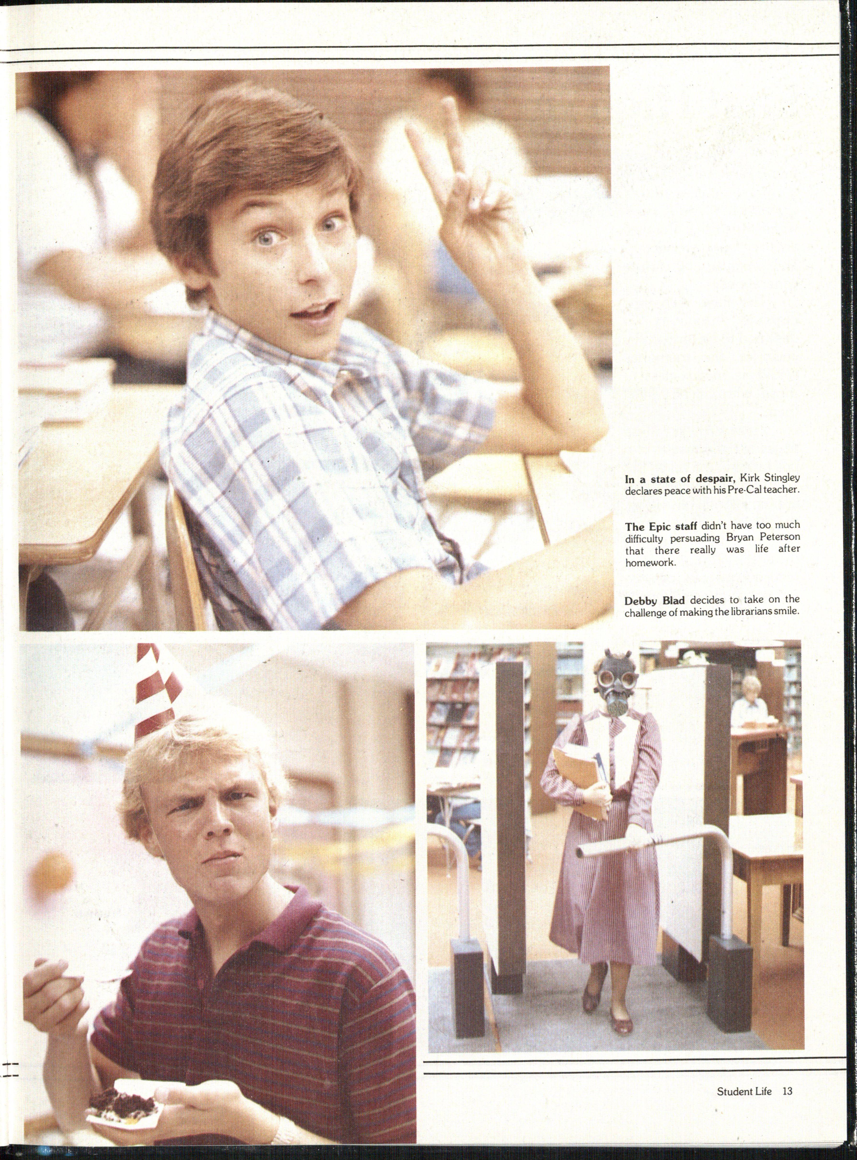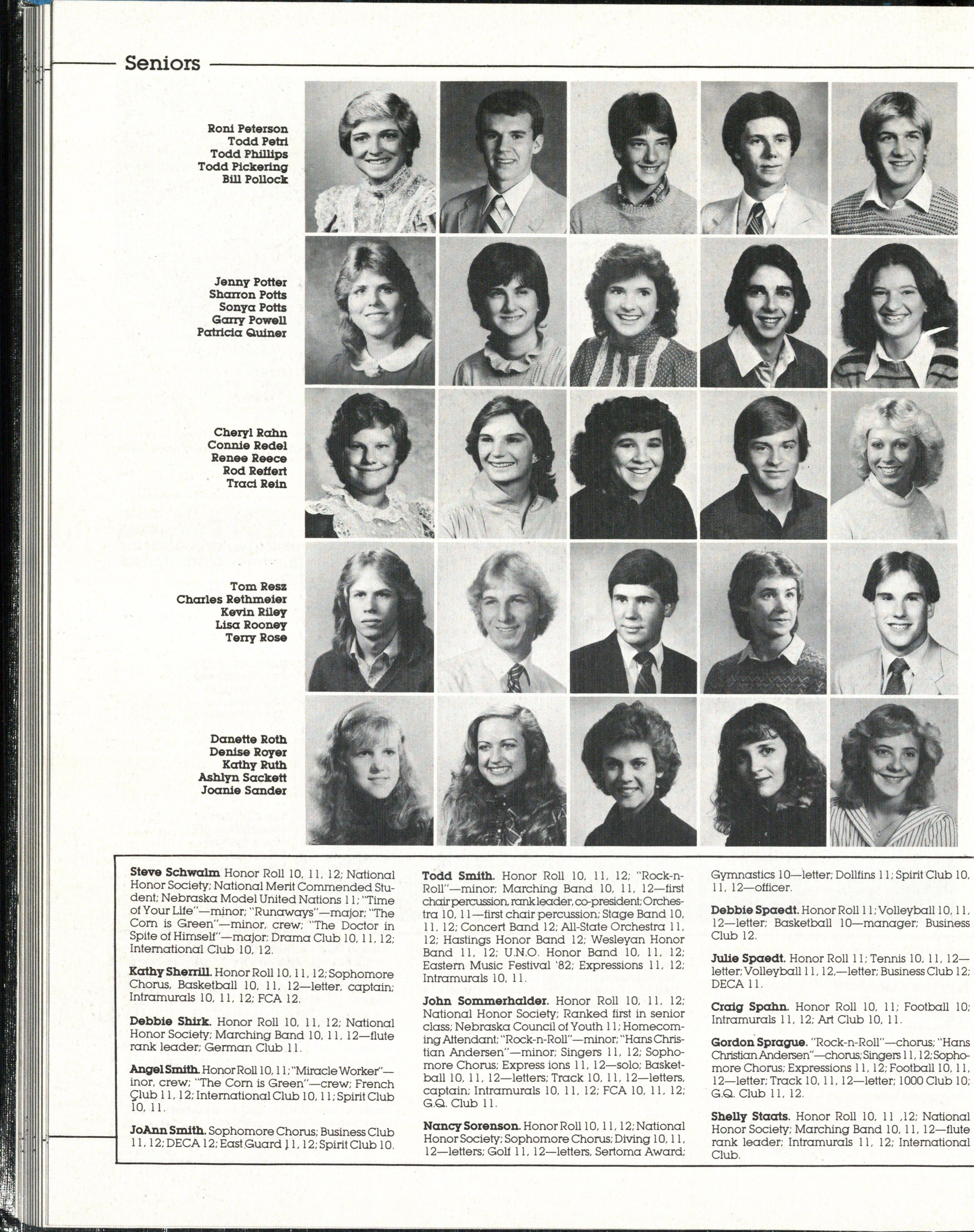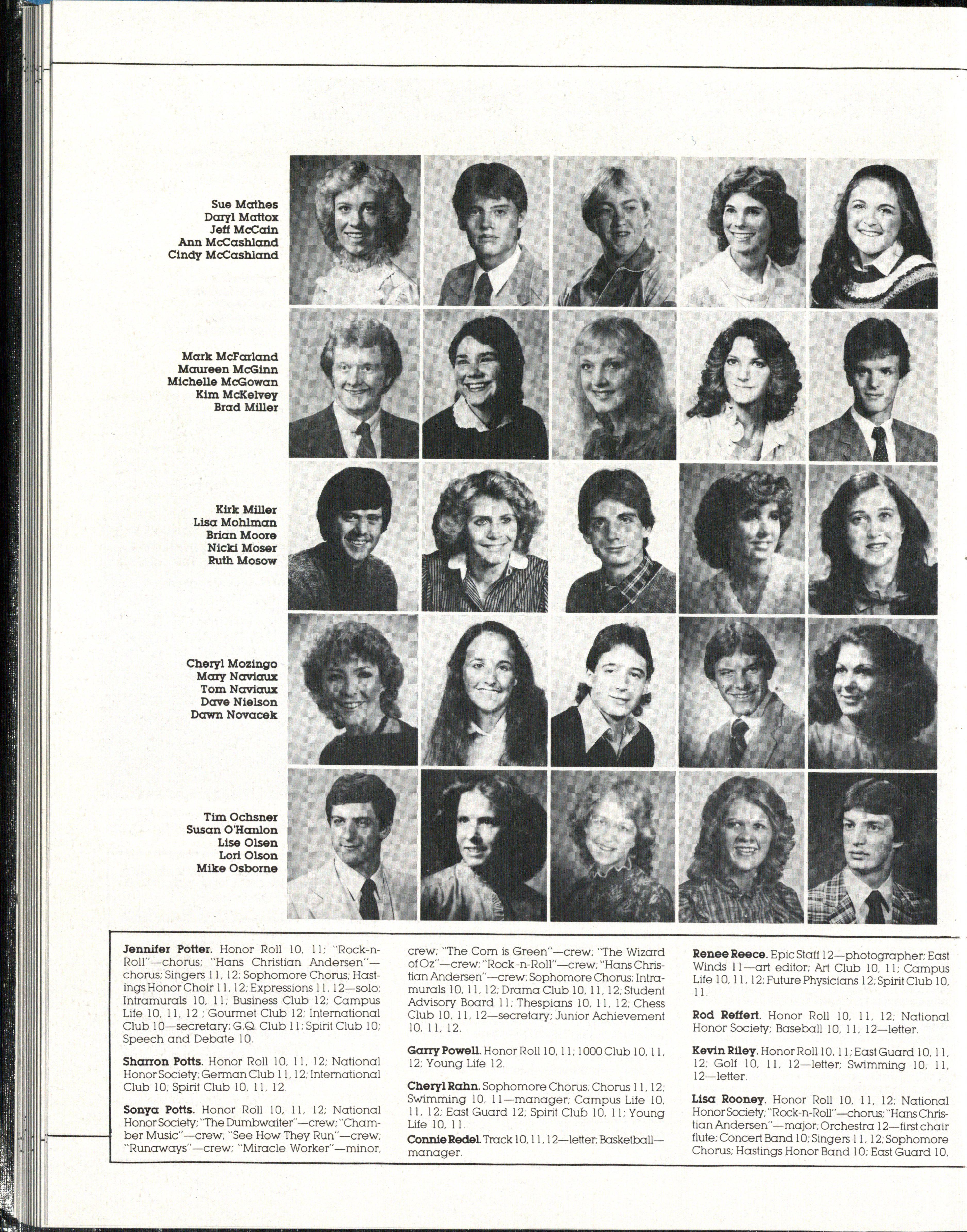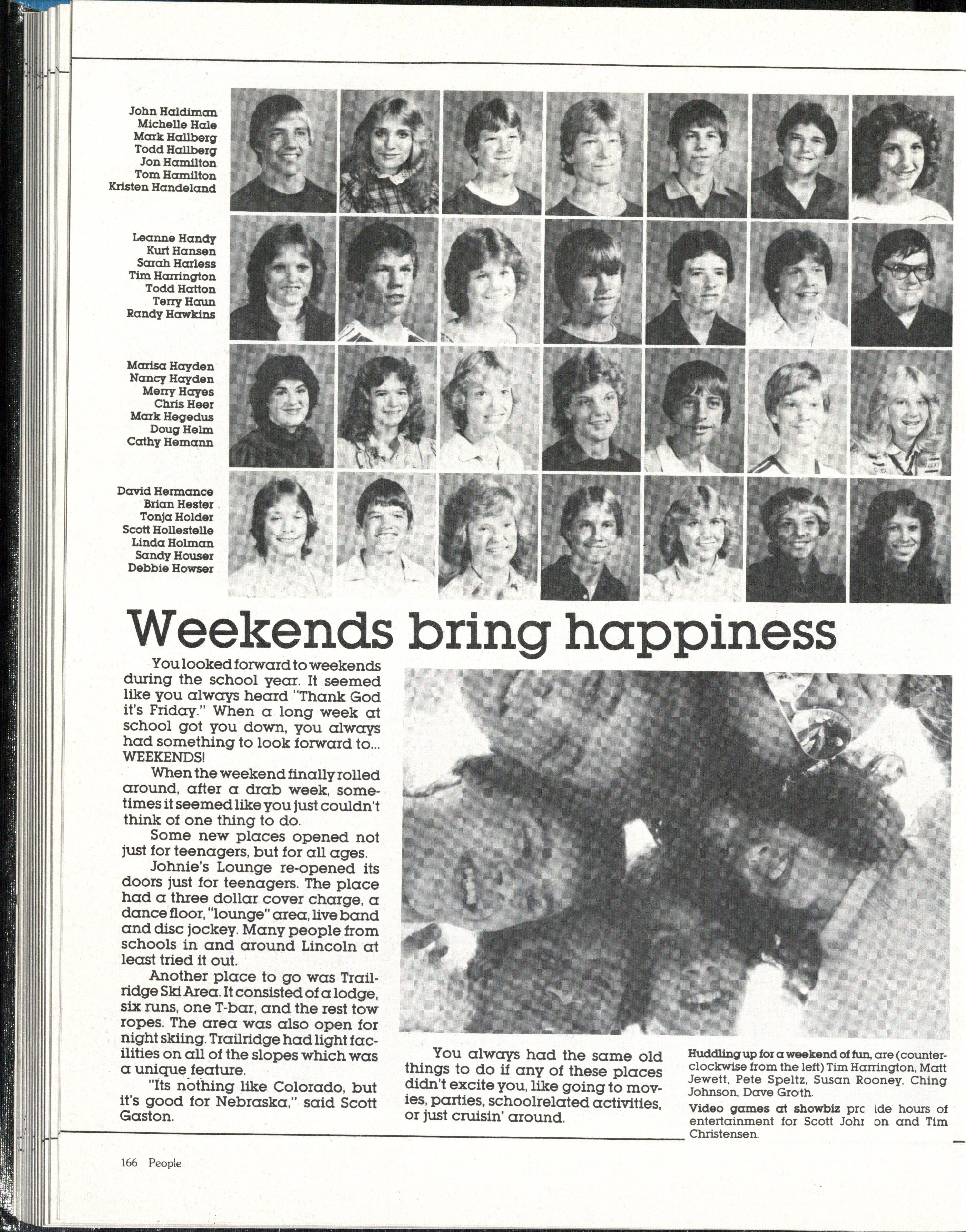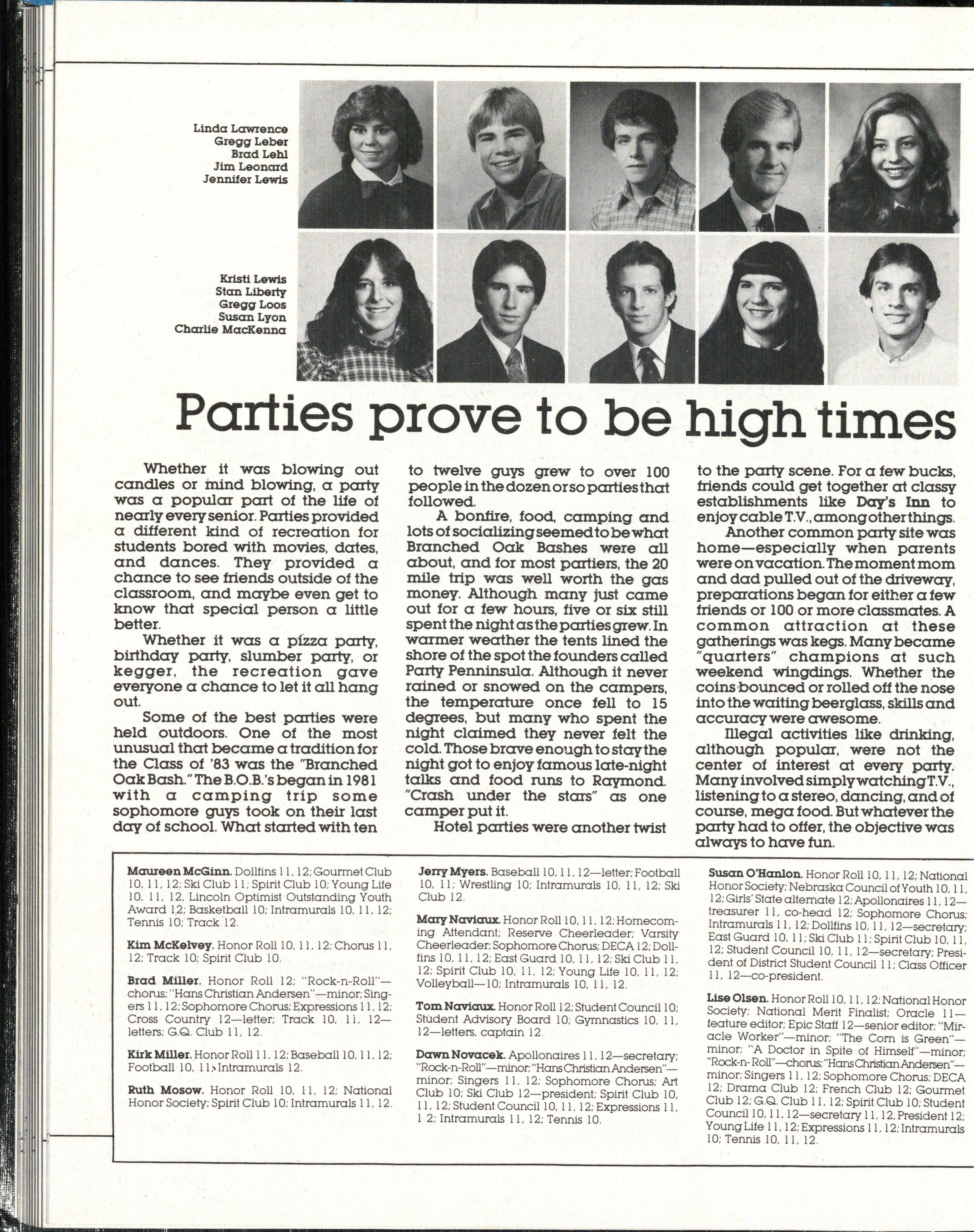 That's when it was time to forget bombing a pop quiz in Pre-Cal, handing in a German project two days late, and even catching a rubber hose on fire in the chemistry lab. You remembered instead your first date, going to Valentino's for pizza after the football game, that big hoUub party, or getting to see John Cougar in concert at Pershing auditorium.