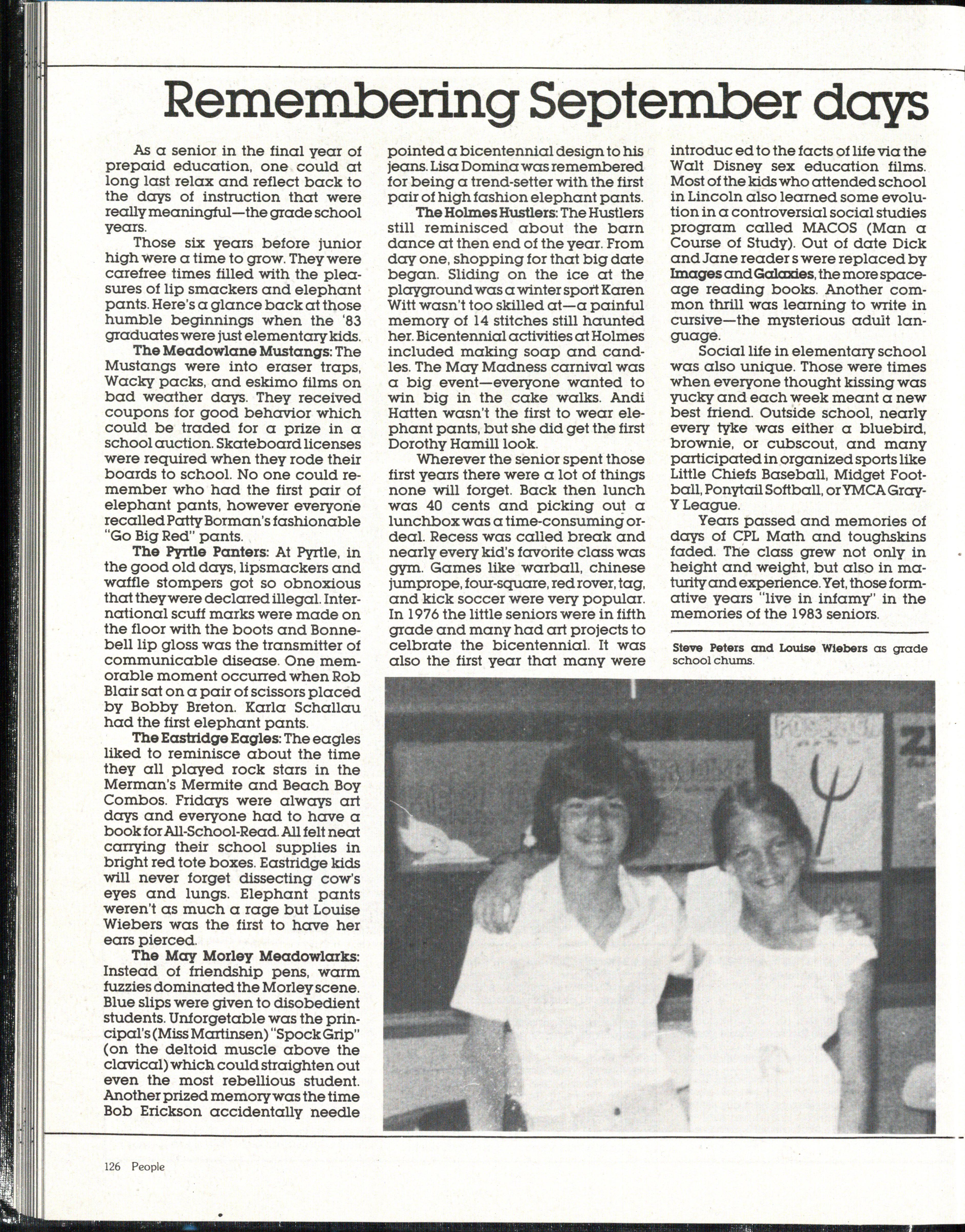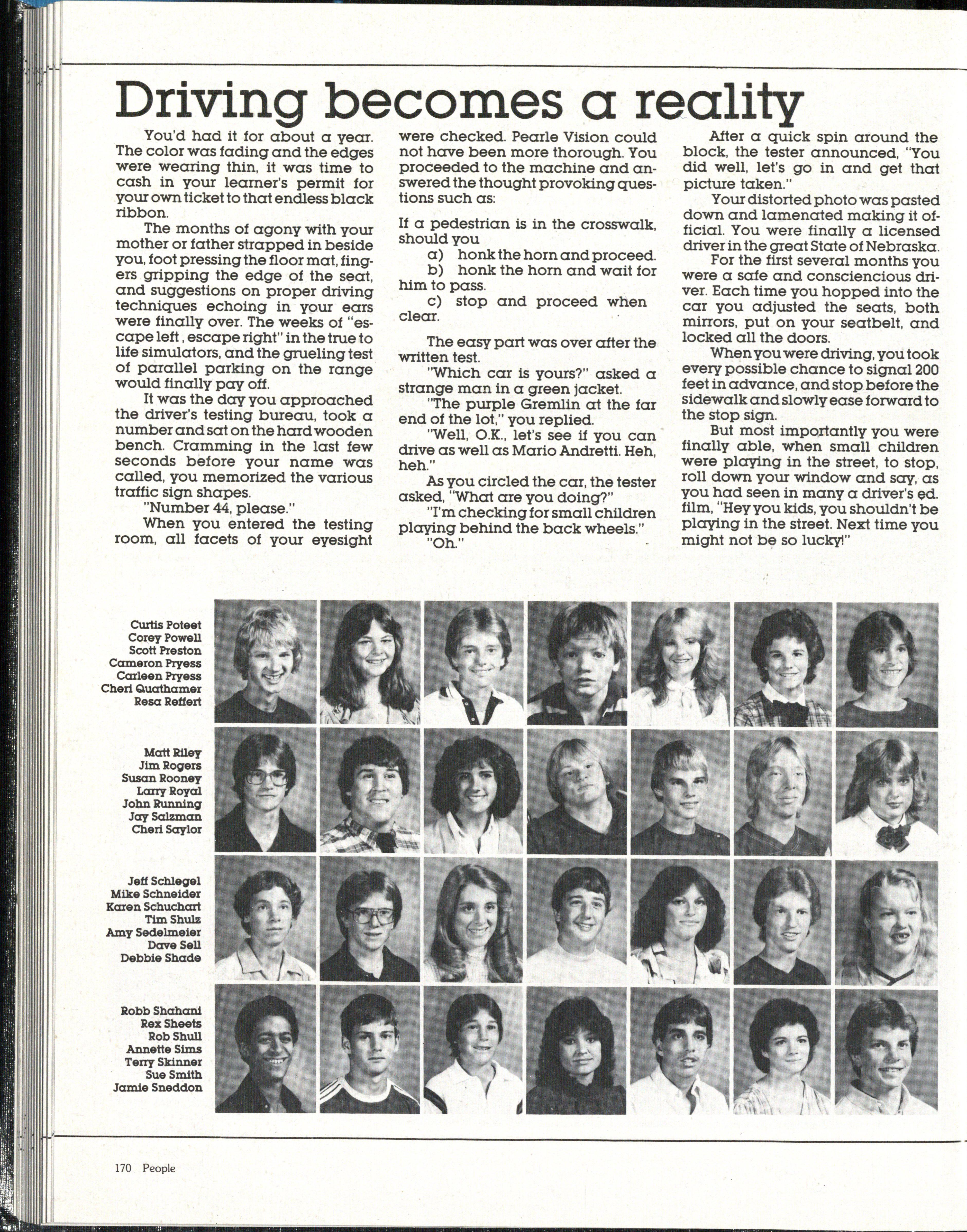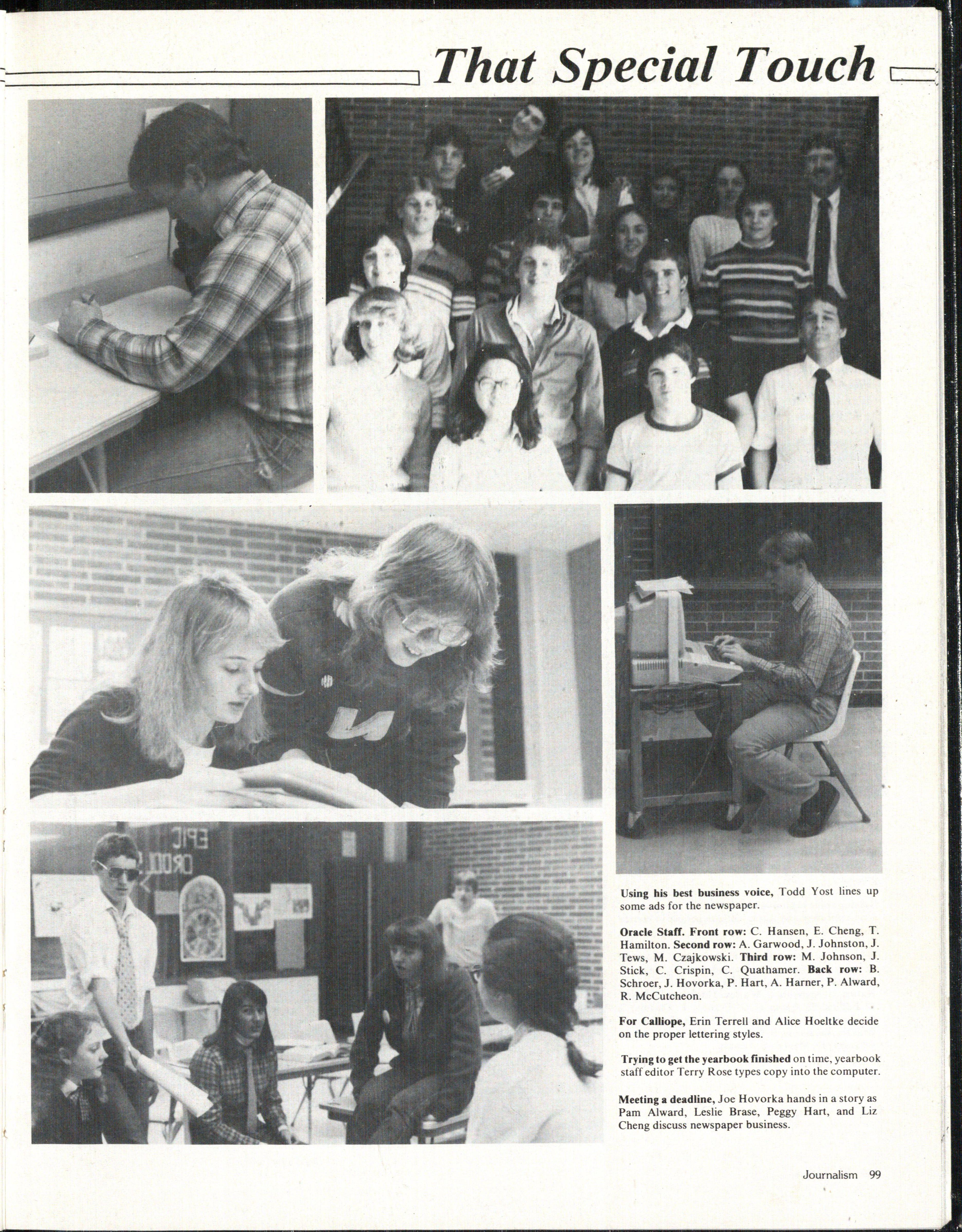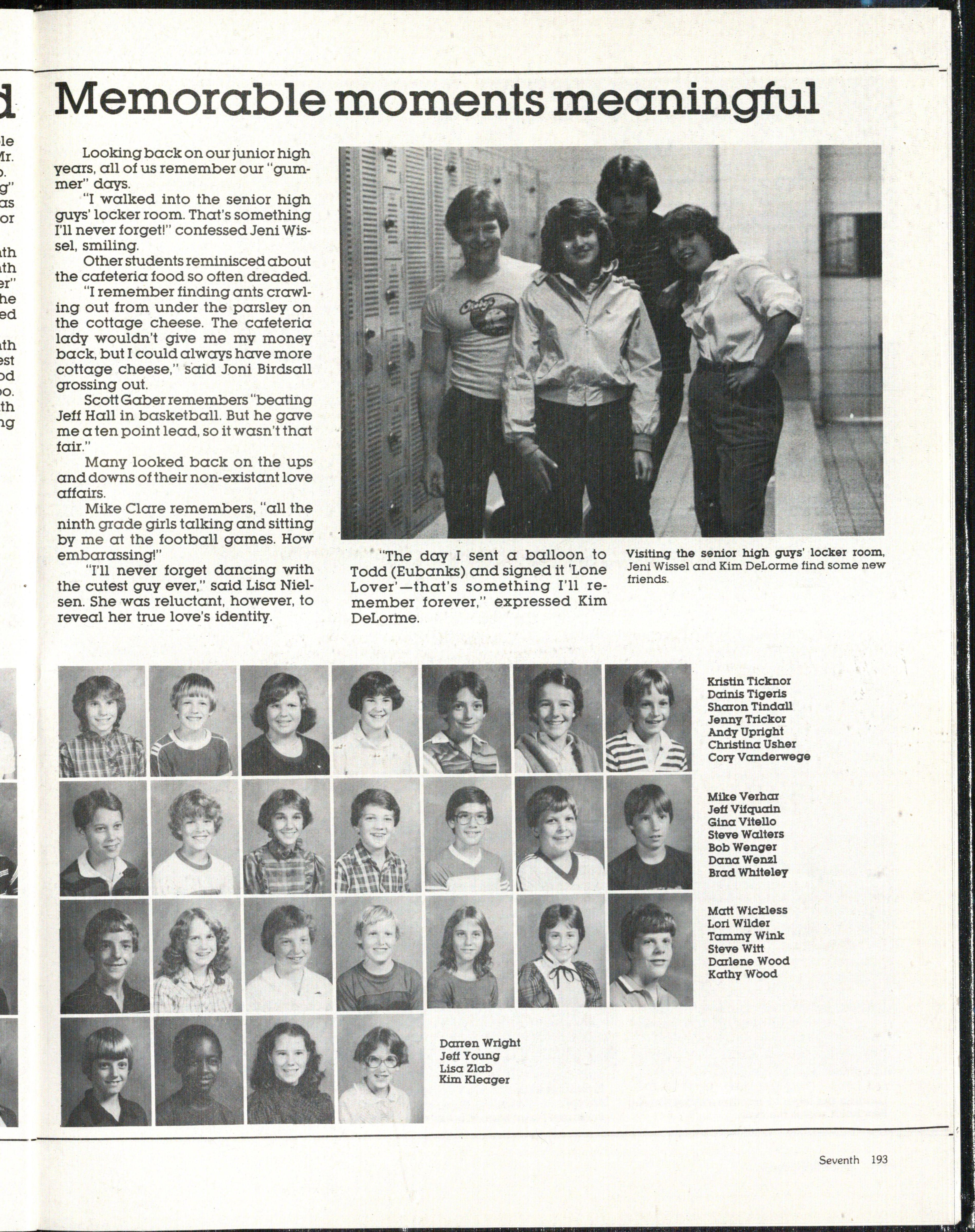 That's when it was time to forget bombing a pop quiz in Pre-Cal, handing in a German project two days late, and even catching a rubber hose on fire in the chemistry lab. You remembered instead your first date, going to Valentino's for pizza after the football game, that big hoUub party, or getting to see John Cougar in concert at Pershing auditorium.
