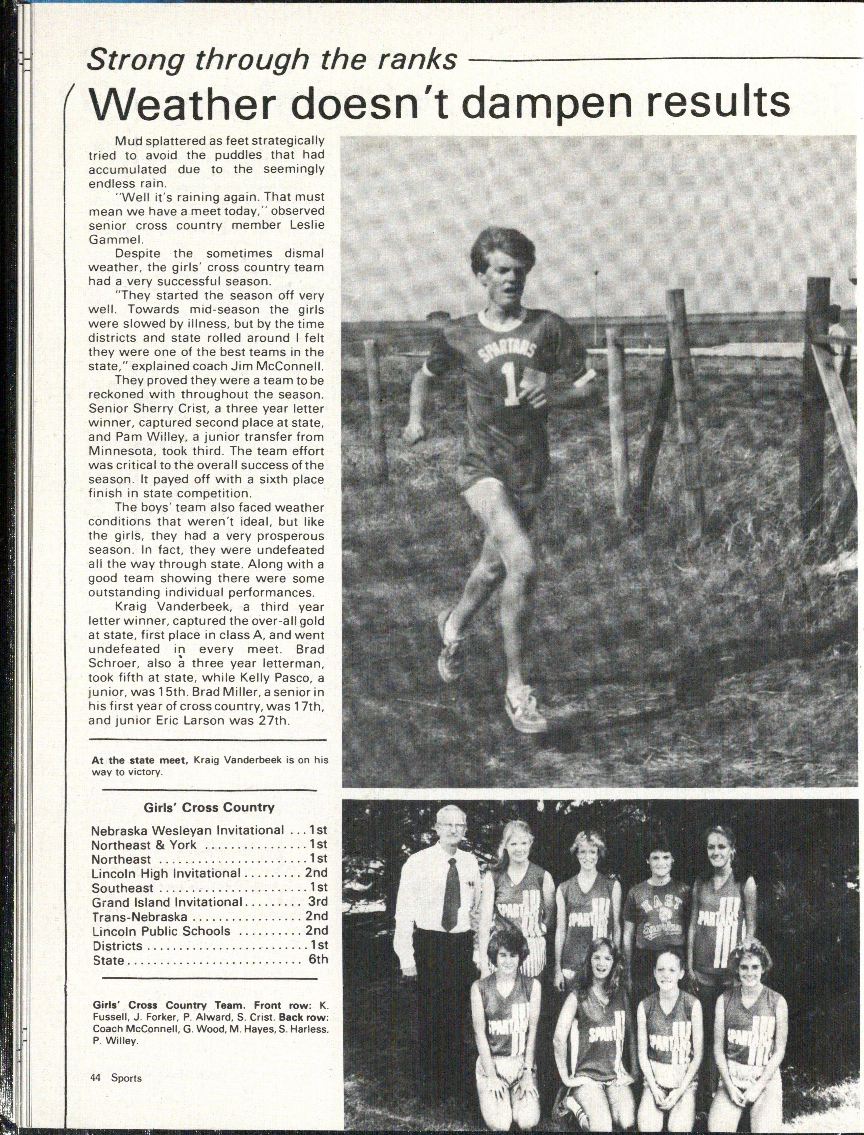 After finishing first in the Nebraska Wesleyan cross country meet, Kraig Vanderbeek receives his medal. Teammates Brad Schoer (9), Brad Miller (8), and Kelly Pasco (2) finished second, third and fifth respectively.