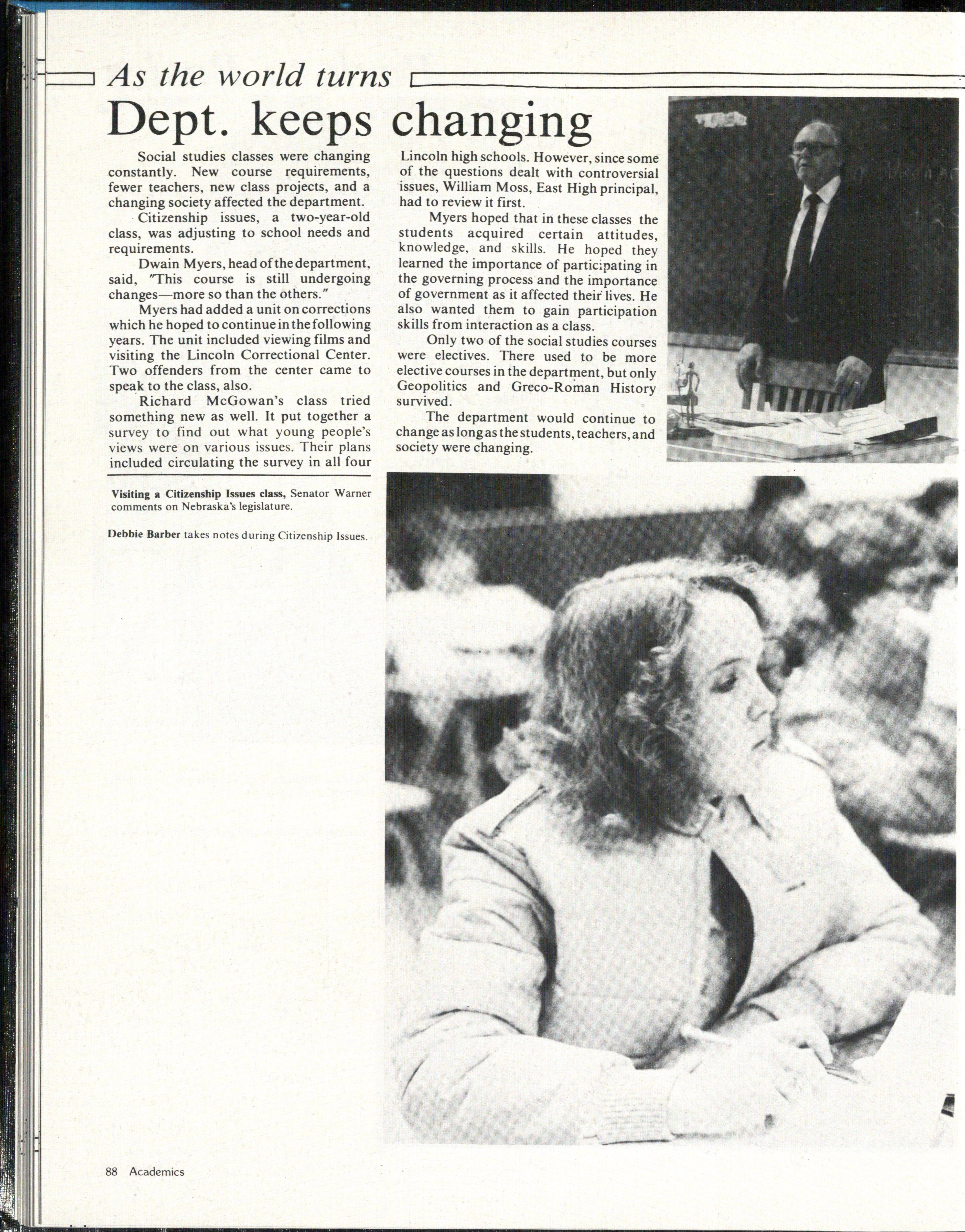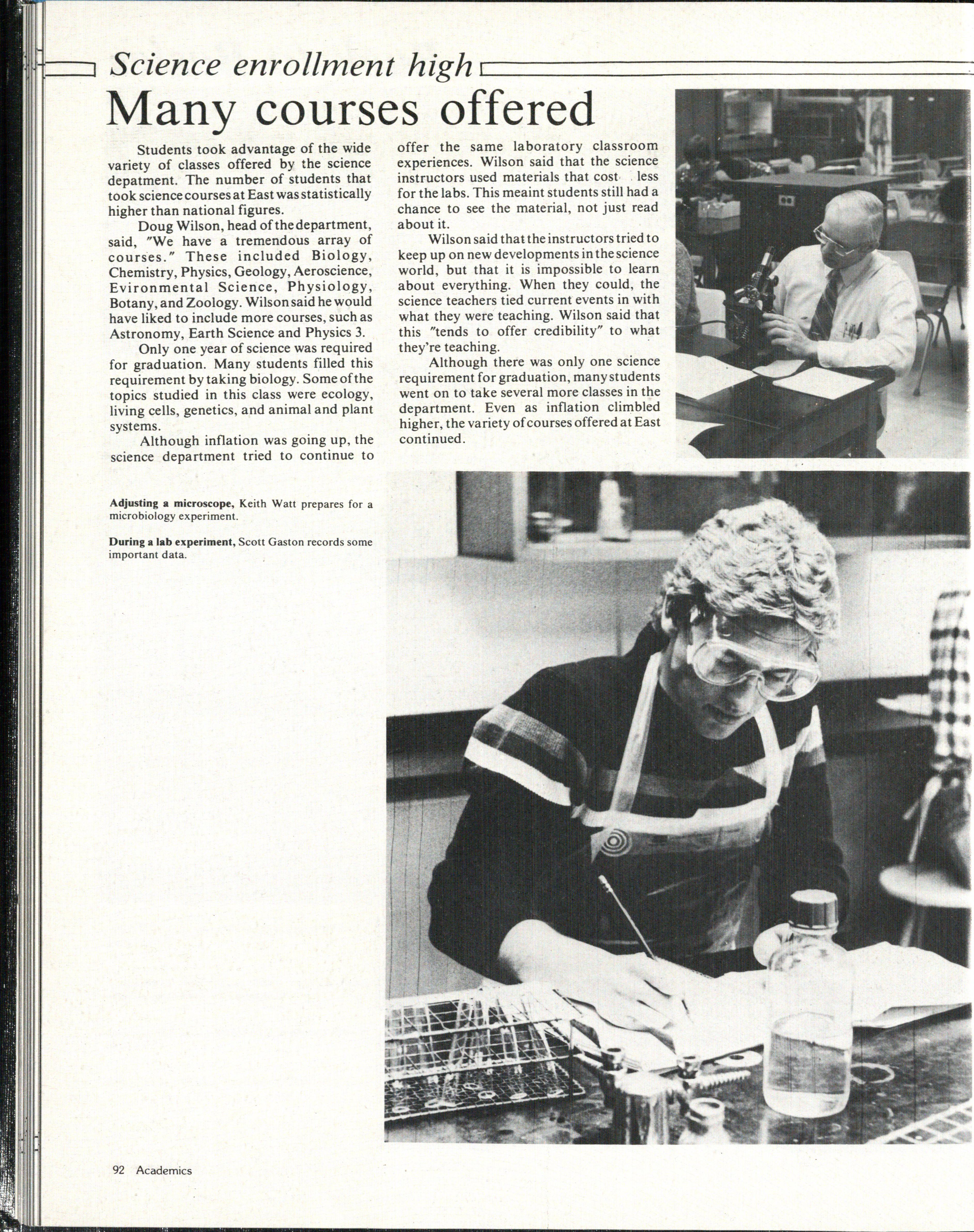 And then there were the classes. Award-winning performances in many academic areas were attributed to the Spartans. But for now the classroom seats were empty, the auditorium silent and the gym devoid of its usual scent of physical activity. The doors had closed after another fine appearance of the East High players. And closed they would remain until once again in August it would be time to put up the lights , dust off the stage, and let the show begin.