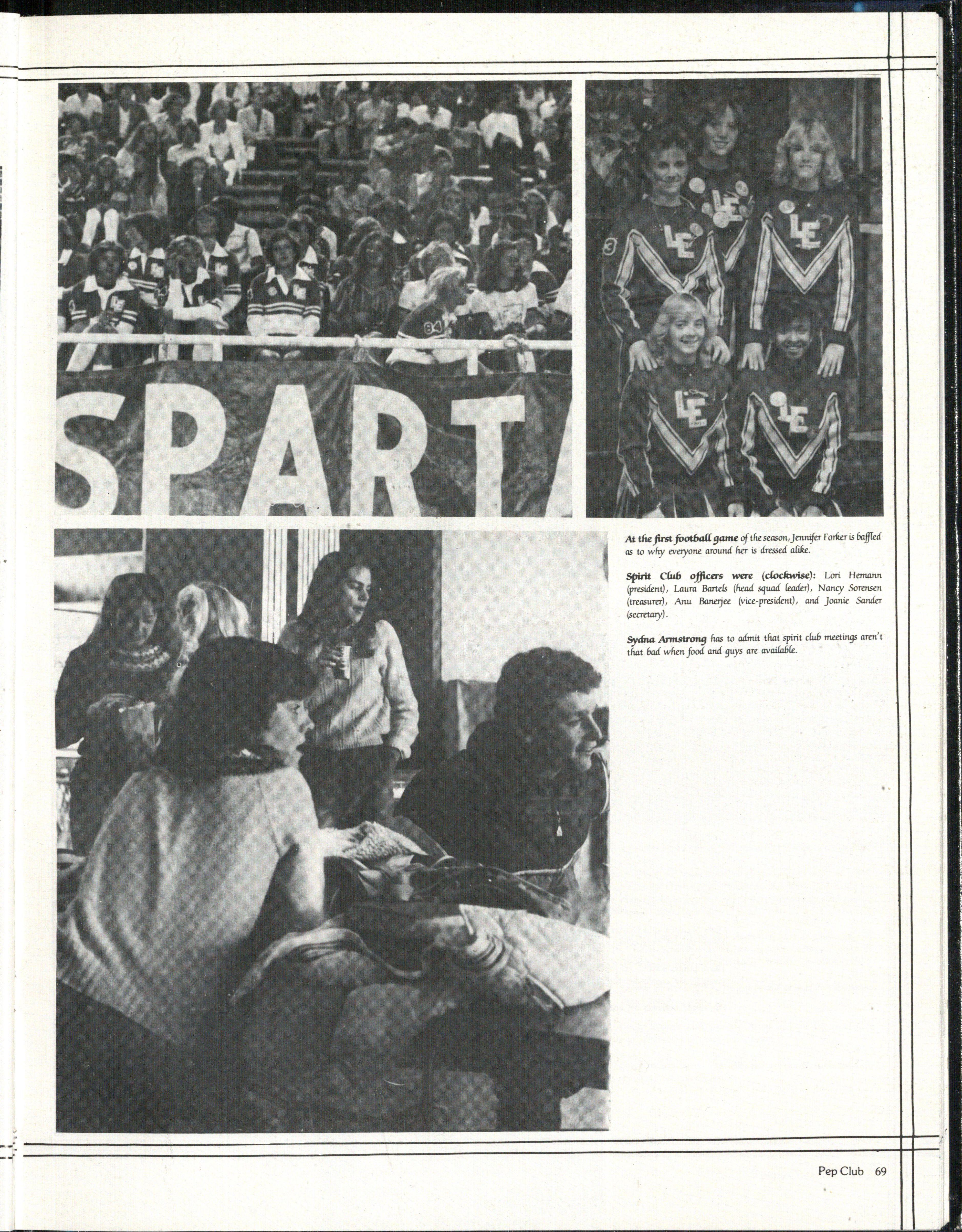 Showing their support for the varsity football squad, the cheerleaders and pep club prove Spartan spirit can 't be beat.
