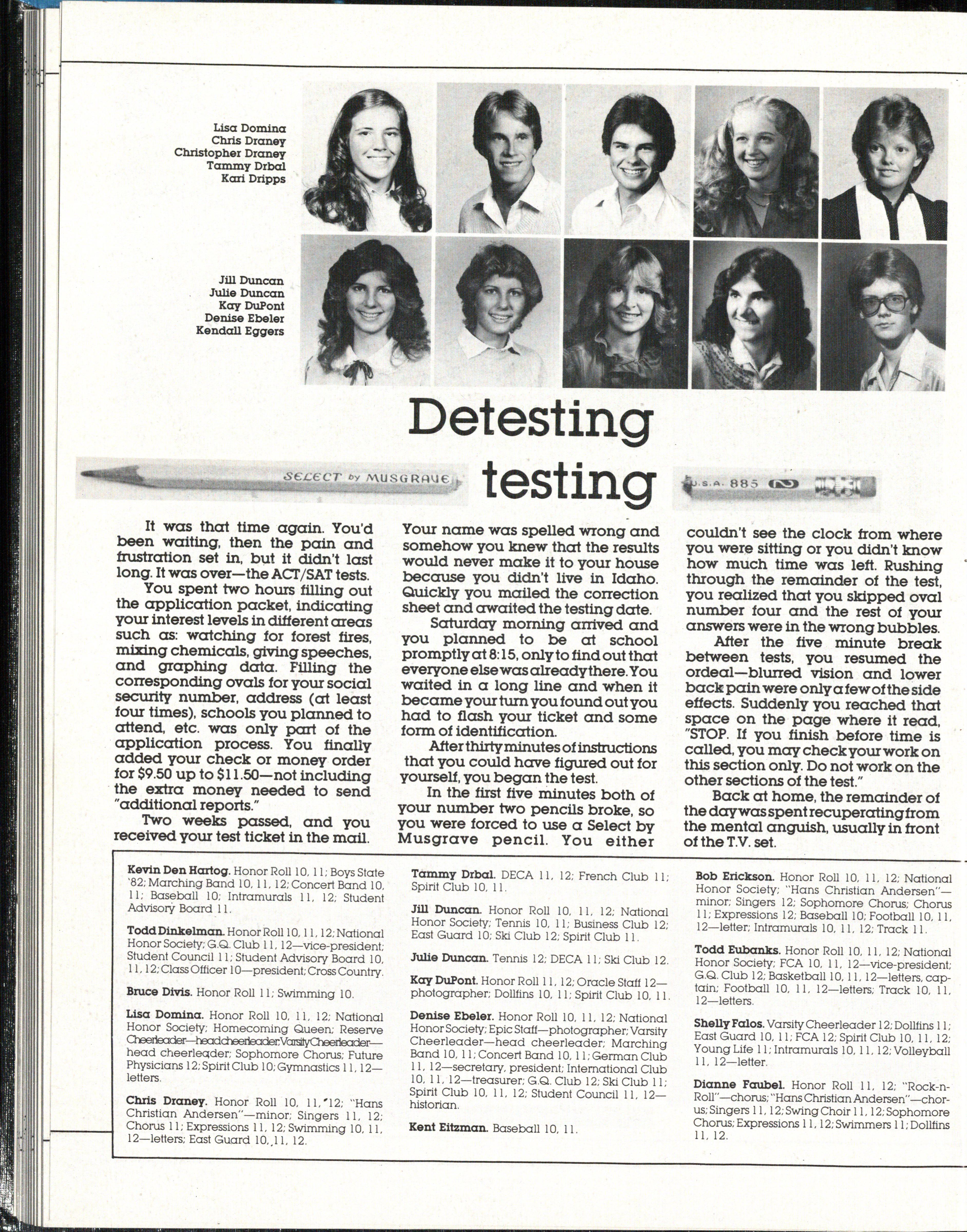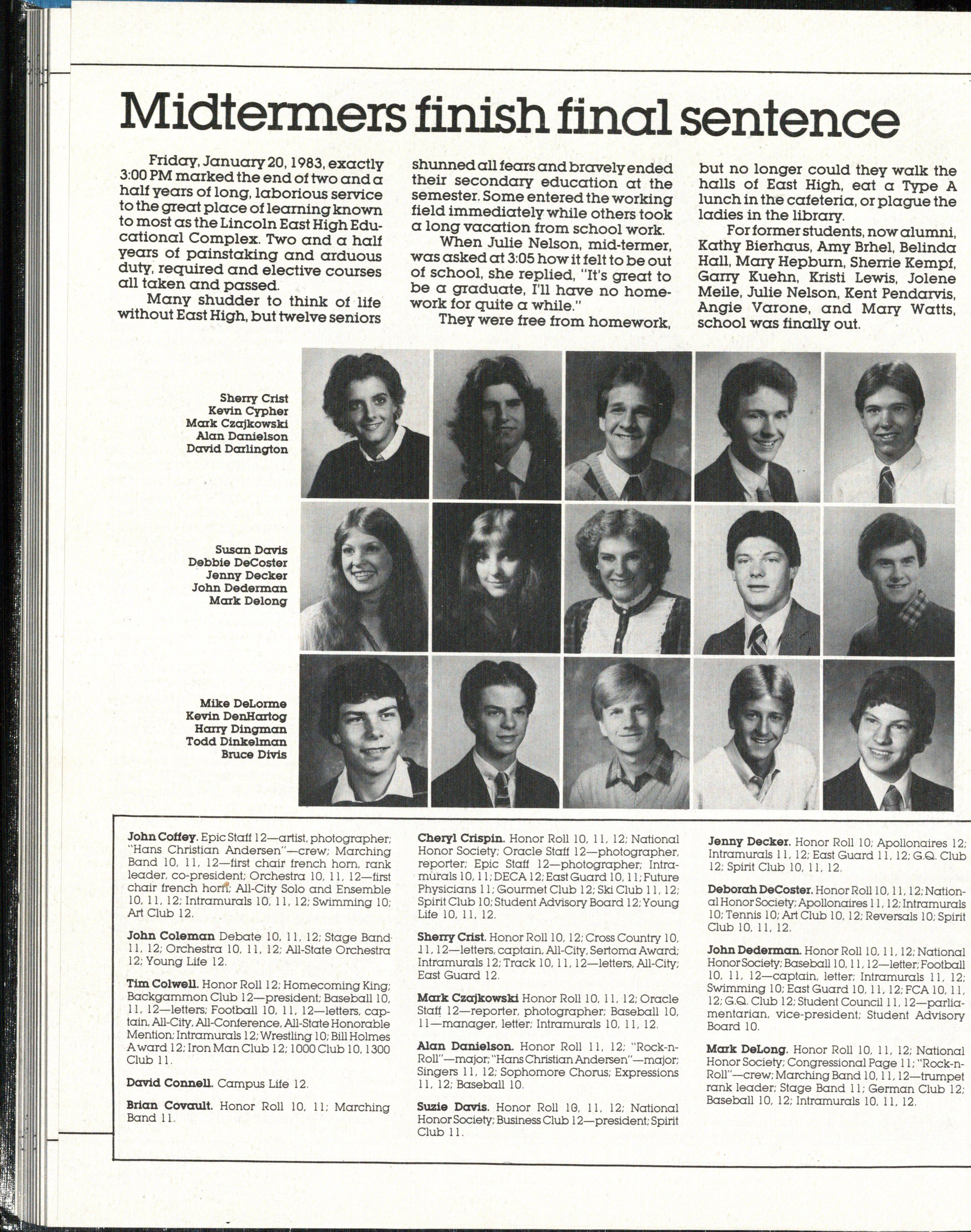 The East High time capsule, however, is designed to be enjoyed by you, for the memories would be meaningless to those who haven't lived them.