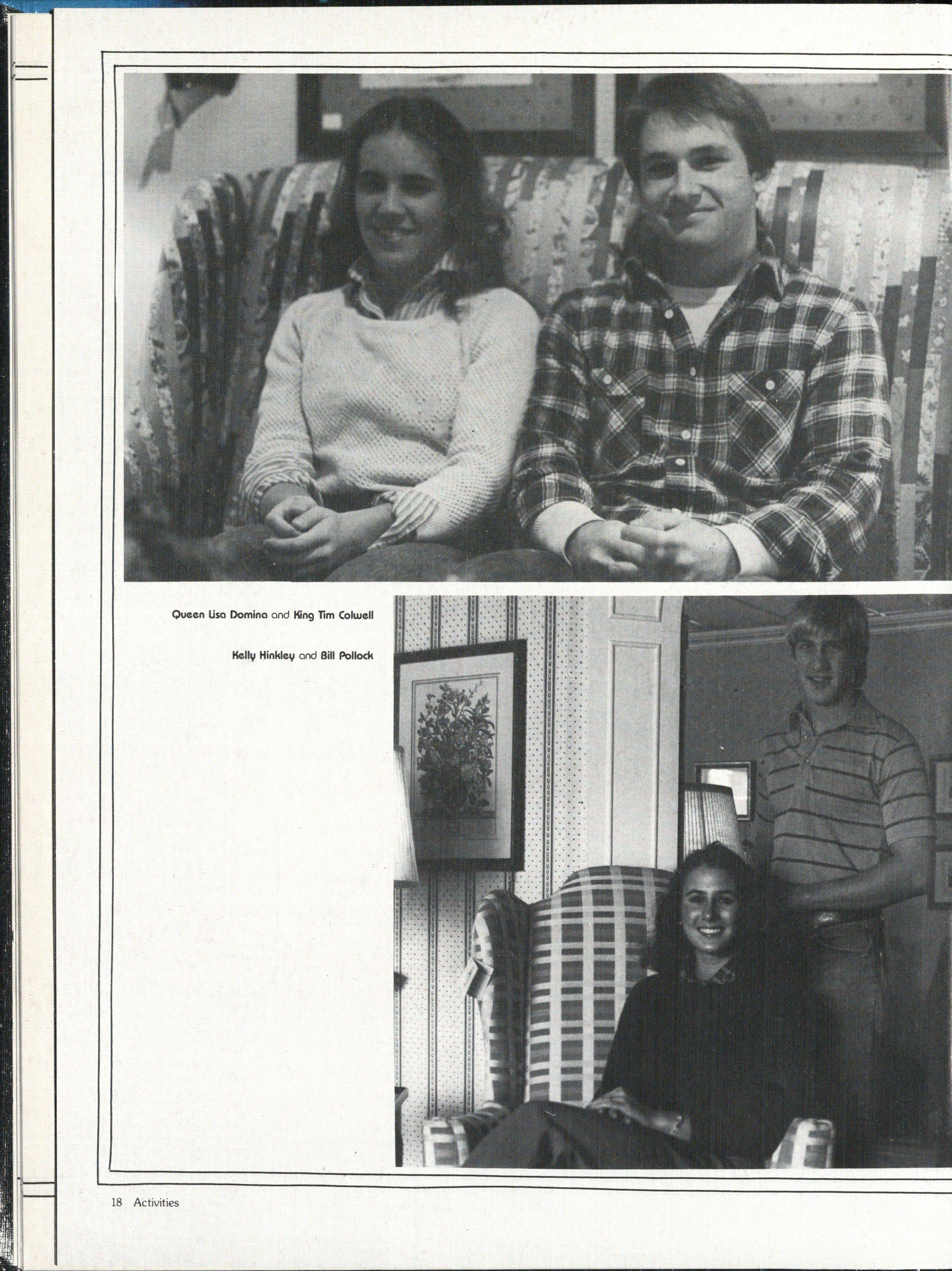 The week began with the initial royalty voting Juniors and seniors were allowed 20 votes, ten for boys , and ten for girls. The field was narrowed to 22 finalists A second vote was taken and ten finalists were selected The candidates were as follows: Kelly Hinkley, Lisa Domina , Heidi Hathcock, Emily Swett, Mary Naviaux , Tim Colwell, John Sommerhalder, Phil Tatro , Jamie Kernan, and Bill Pollock.